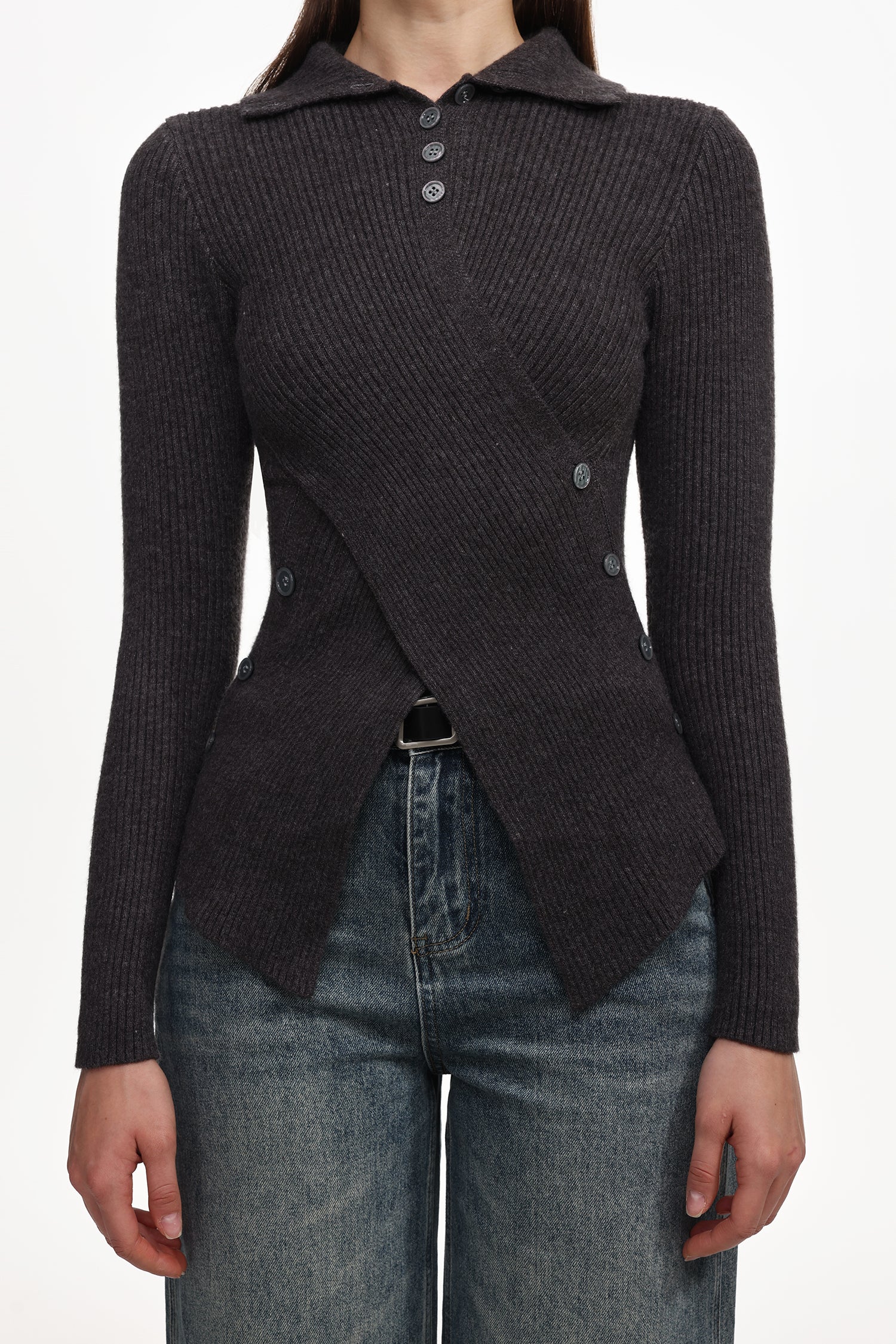 Dotty Chic Long Sleeve Buttoned Knit Top