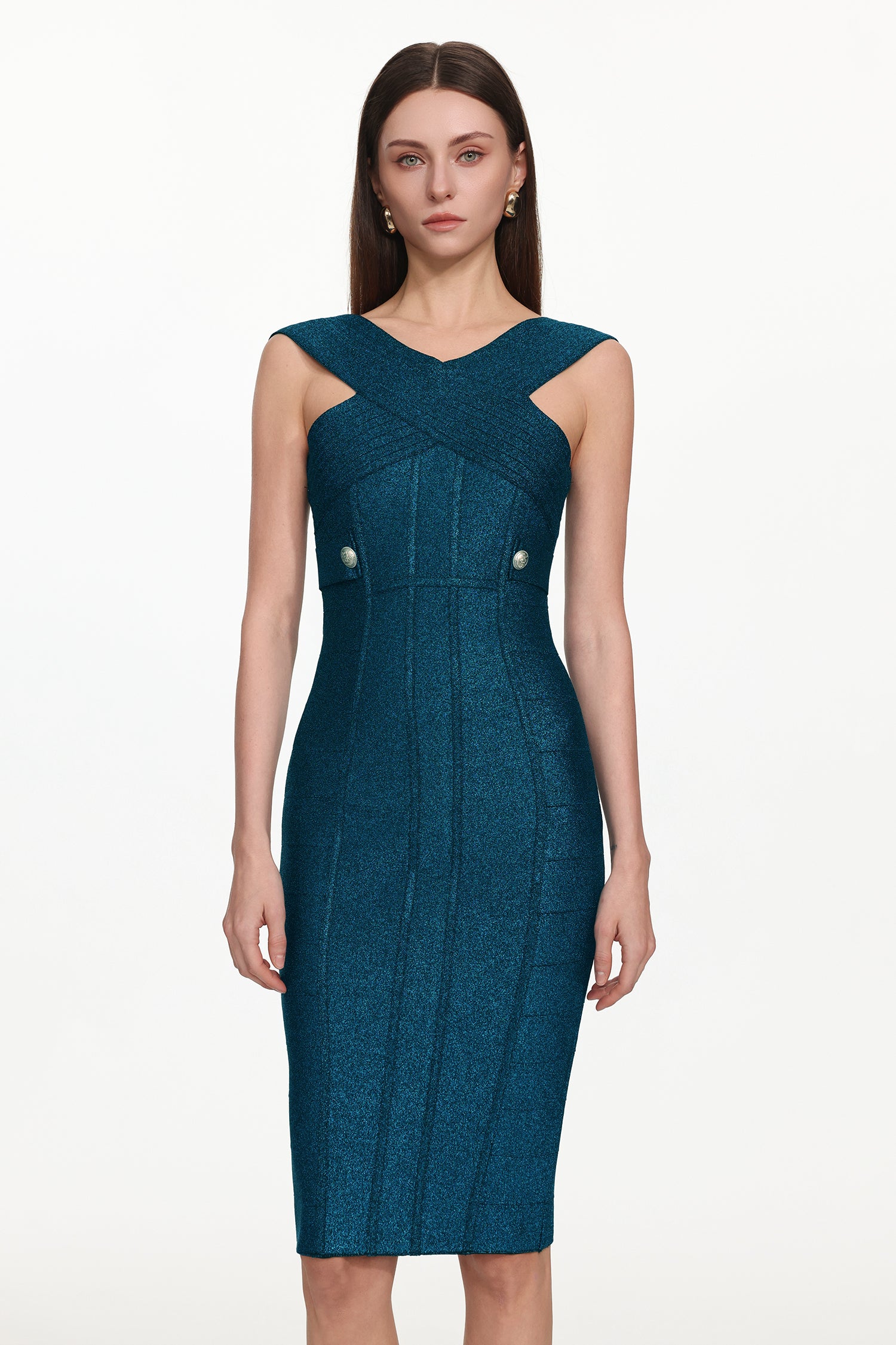 Fresco Sleeveless V-Neck Bandage Midi Dress