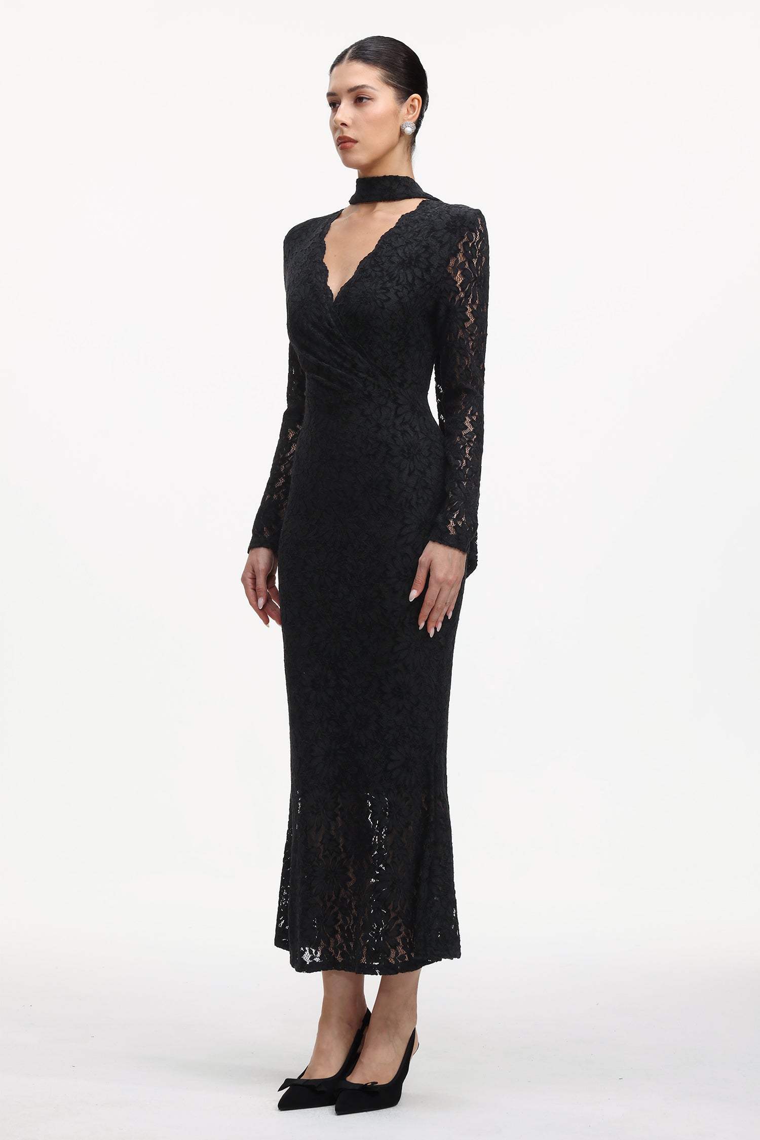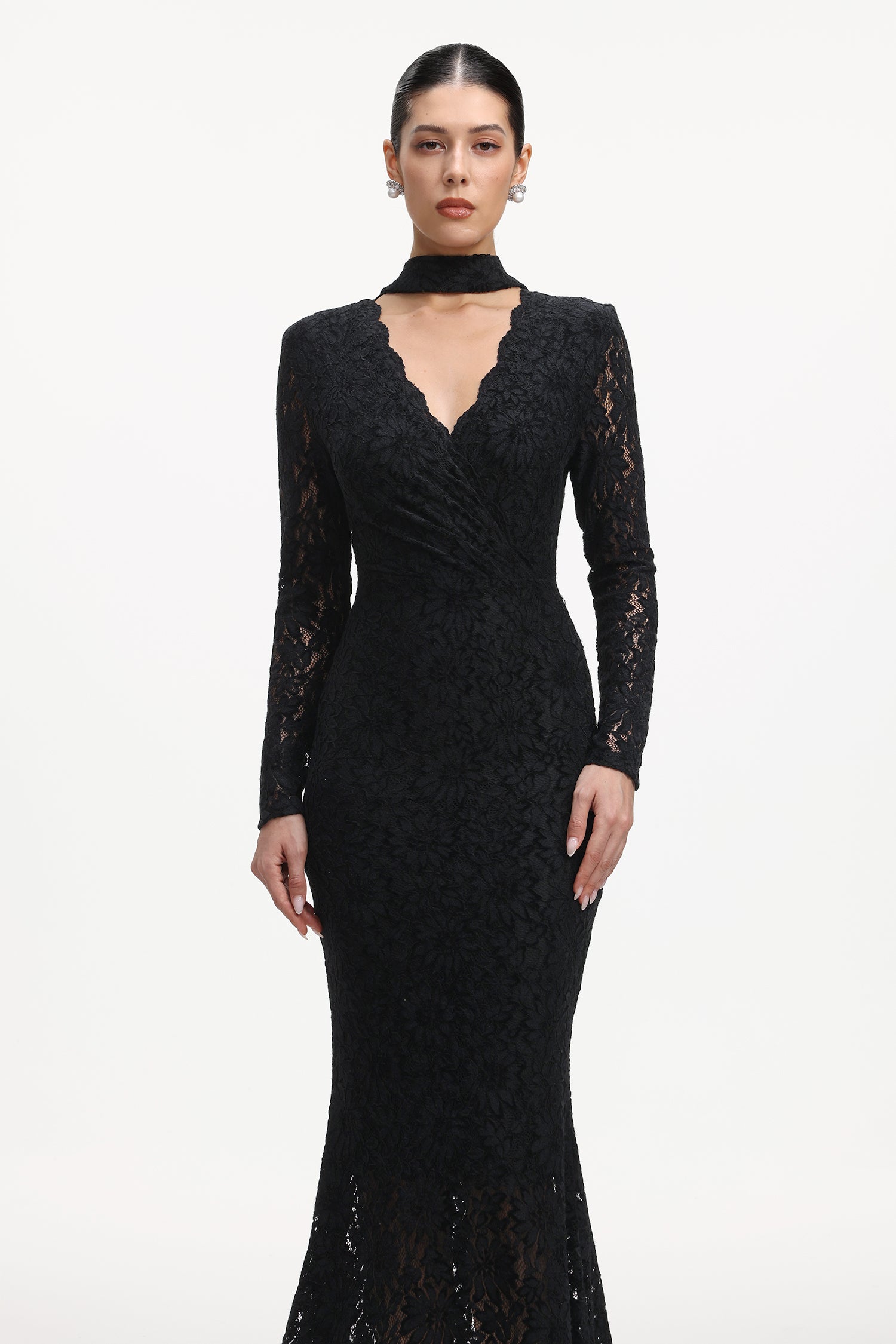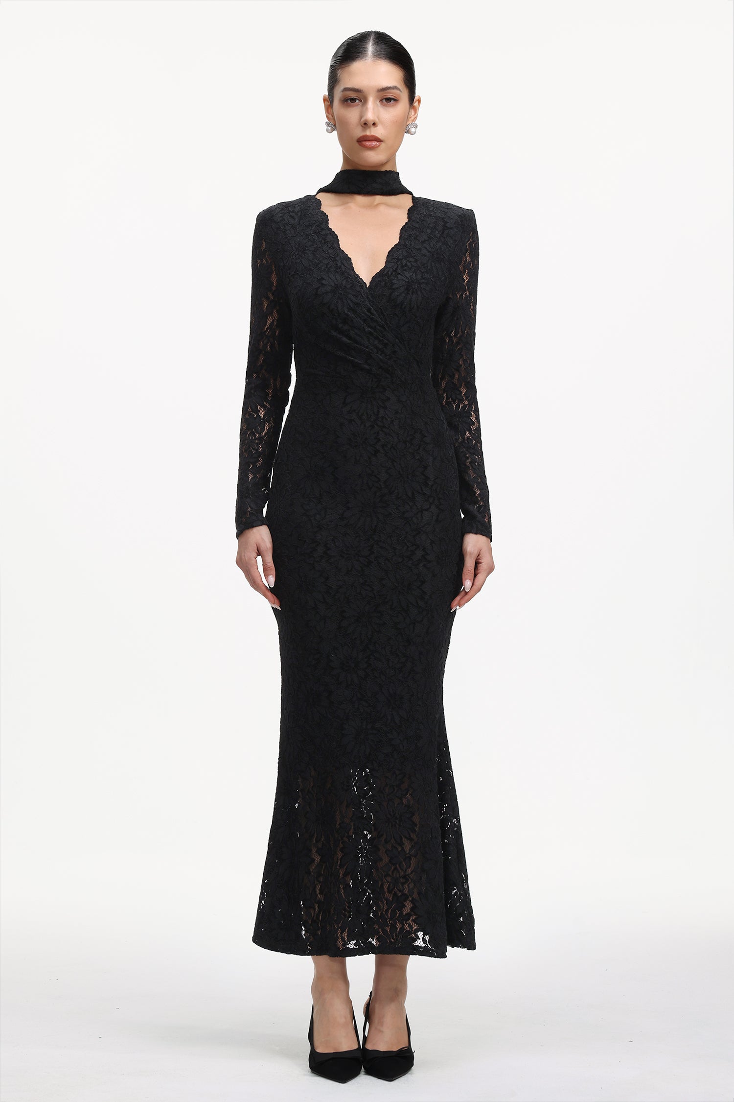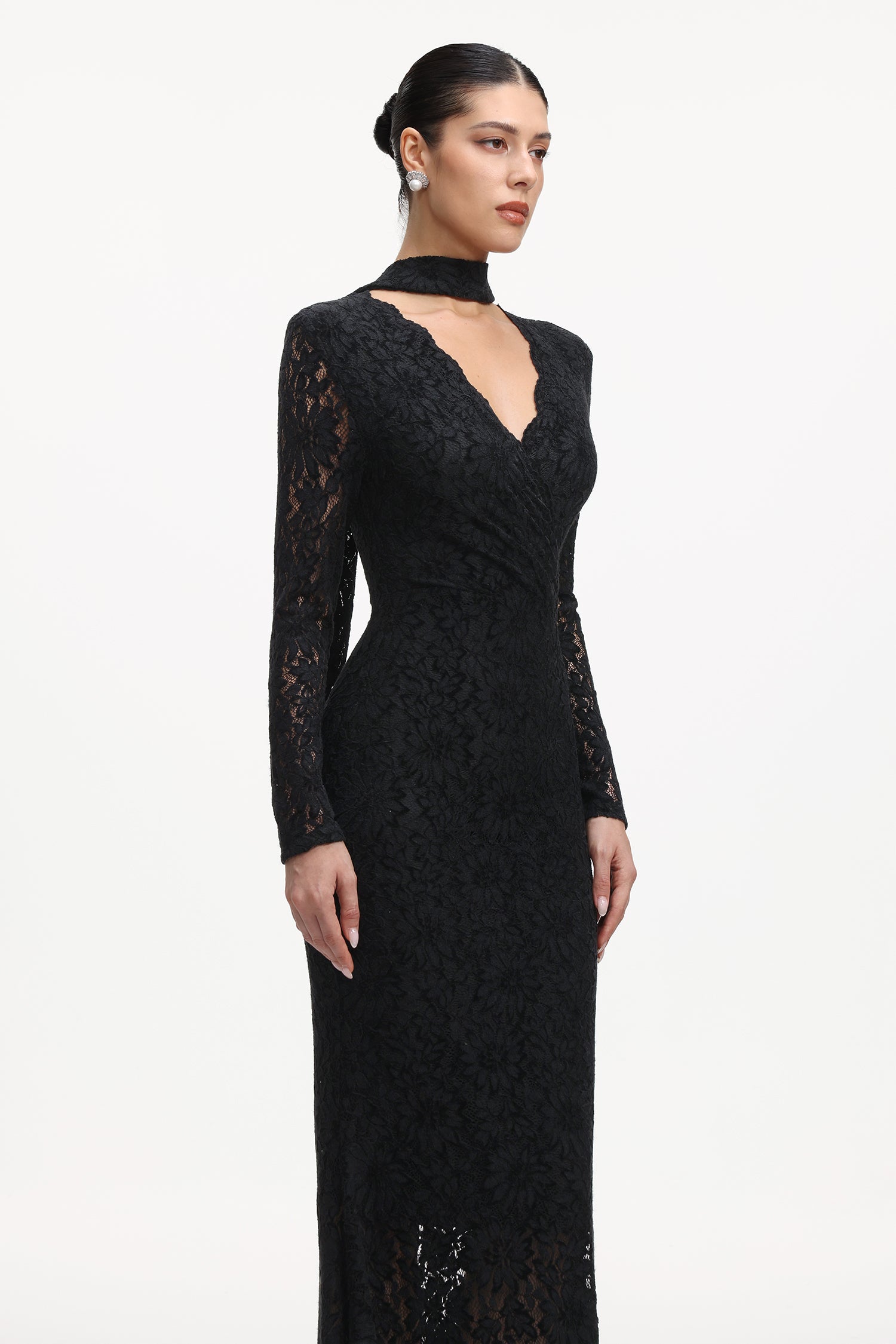 Ziriy Romantic Flowy Long Sleeve Lace Maxi Dress