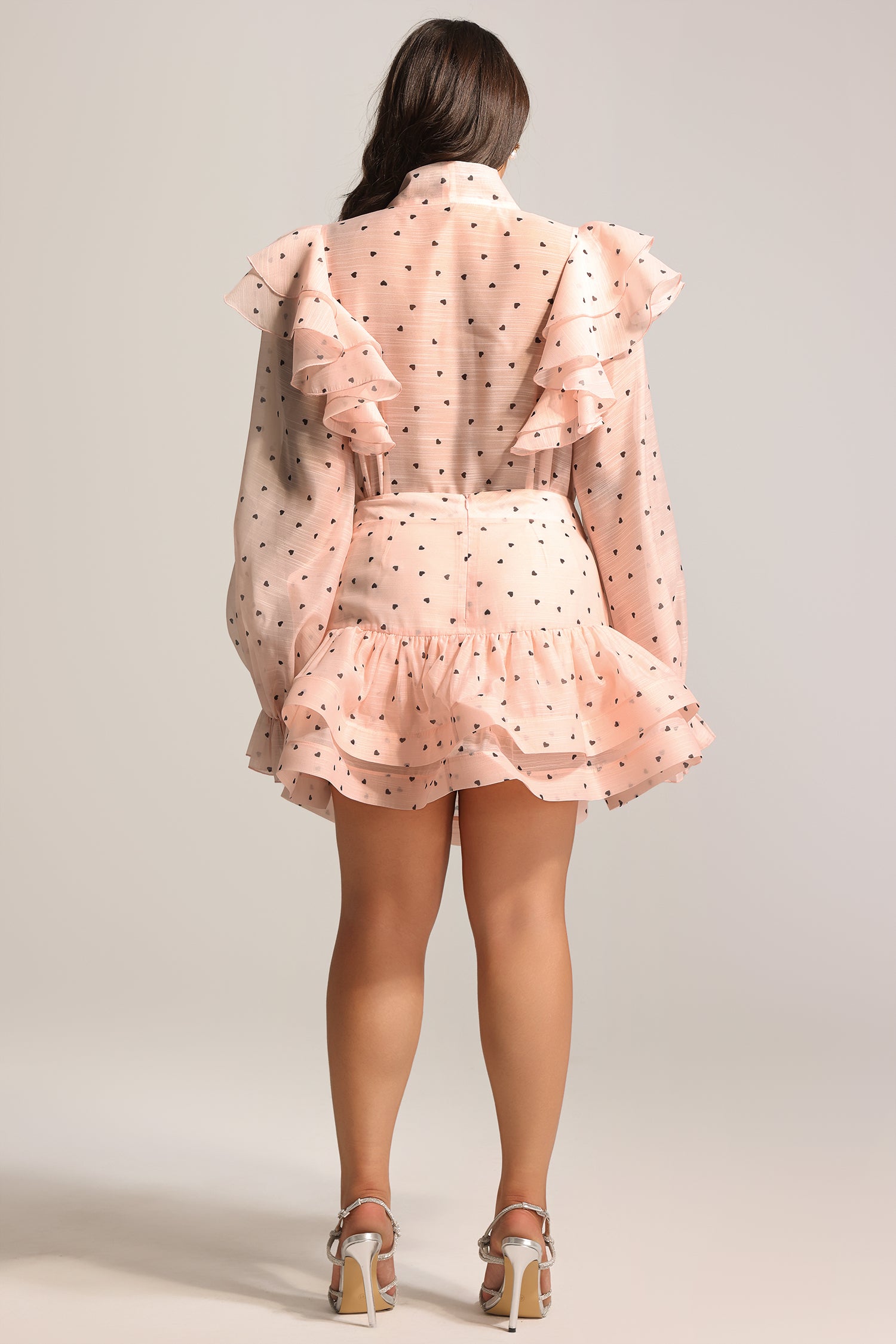 Sahara Rufflede Dot Printed Bowknot Top And Skirt Two-Piece Set