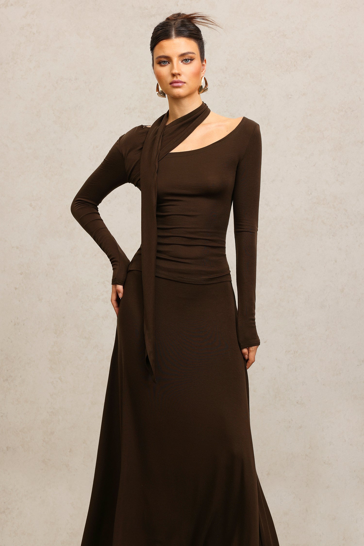 Yuio Long Sleeves Asymmetric Streamer Top And Skirt Two-Piece Set