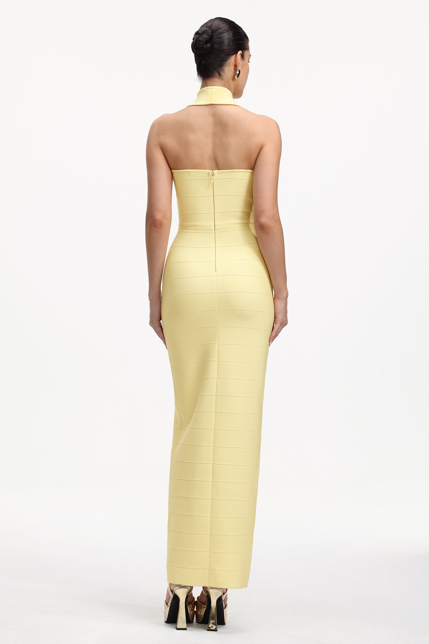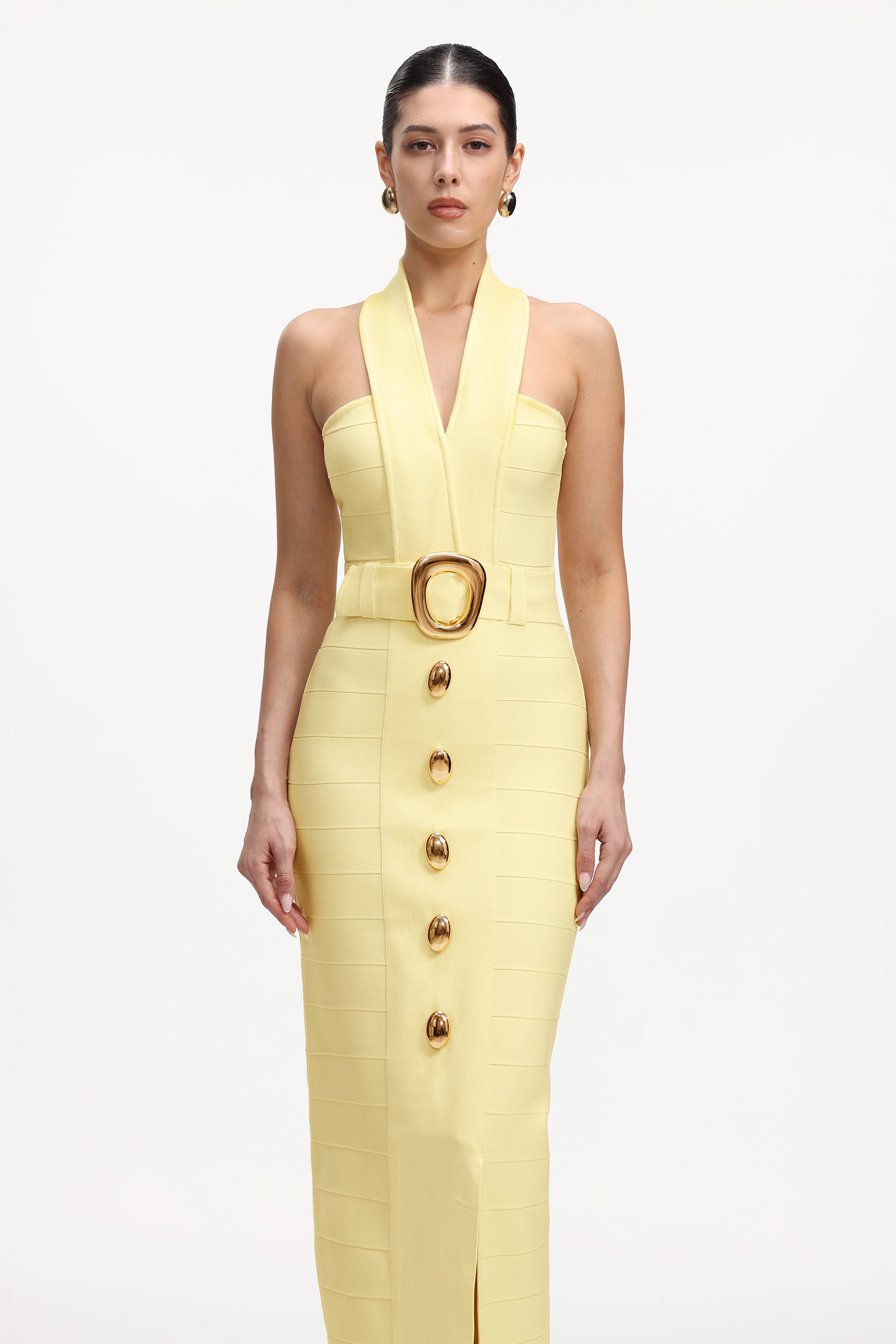 Lanla Chic Contour Halter Metal Buckle Bandage Maxi Dress