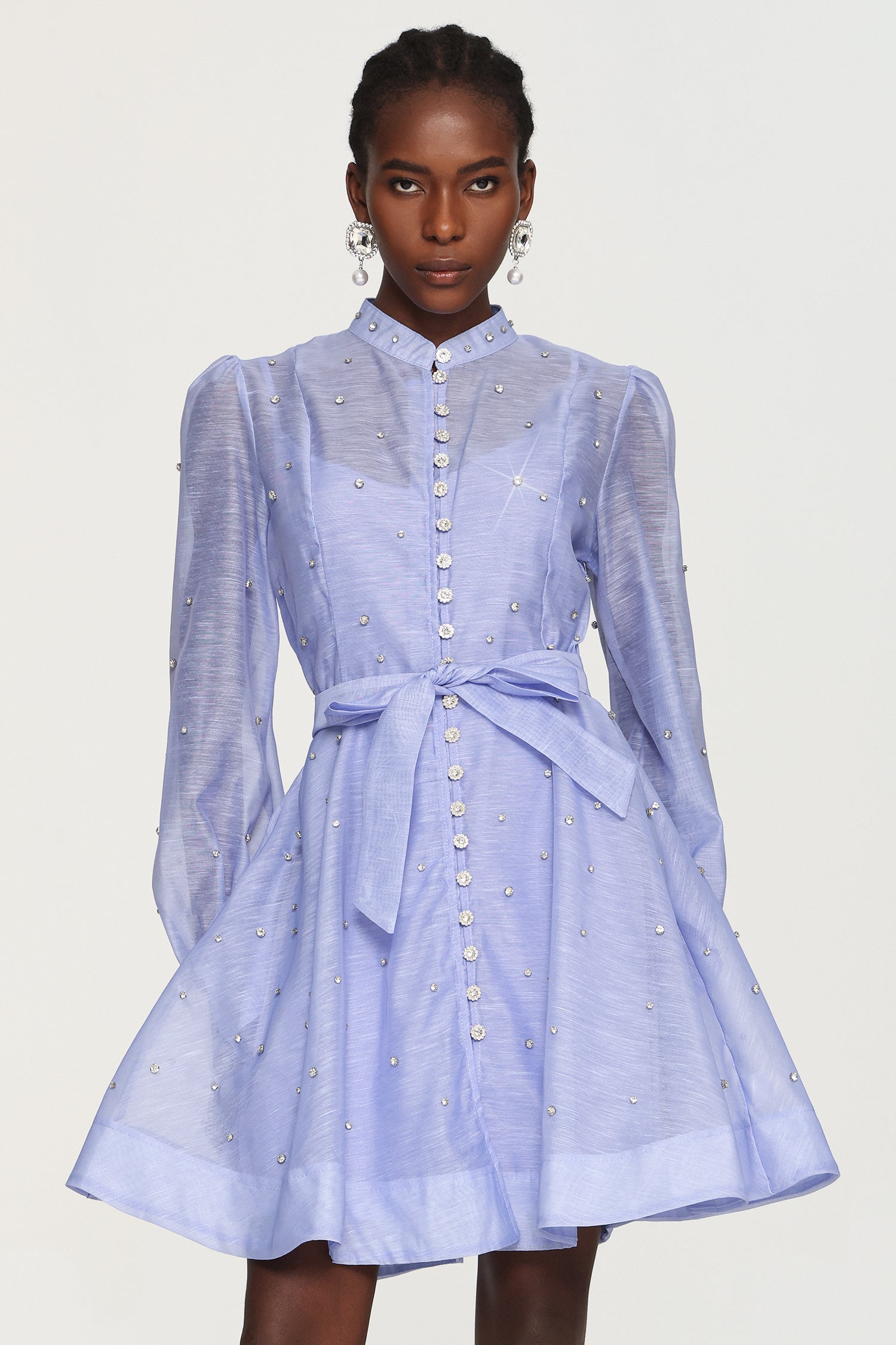 Farrah Long Sleeves Diamond Button Shirt Mini Dress