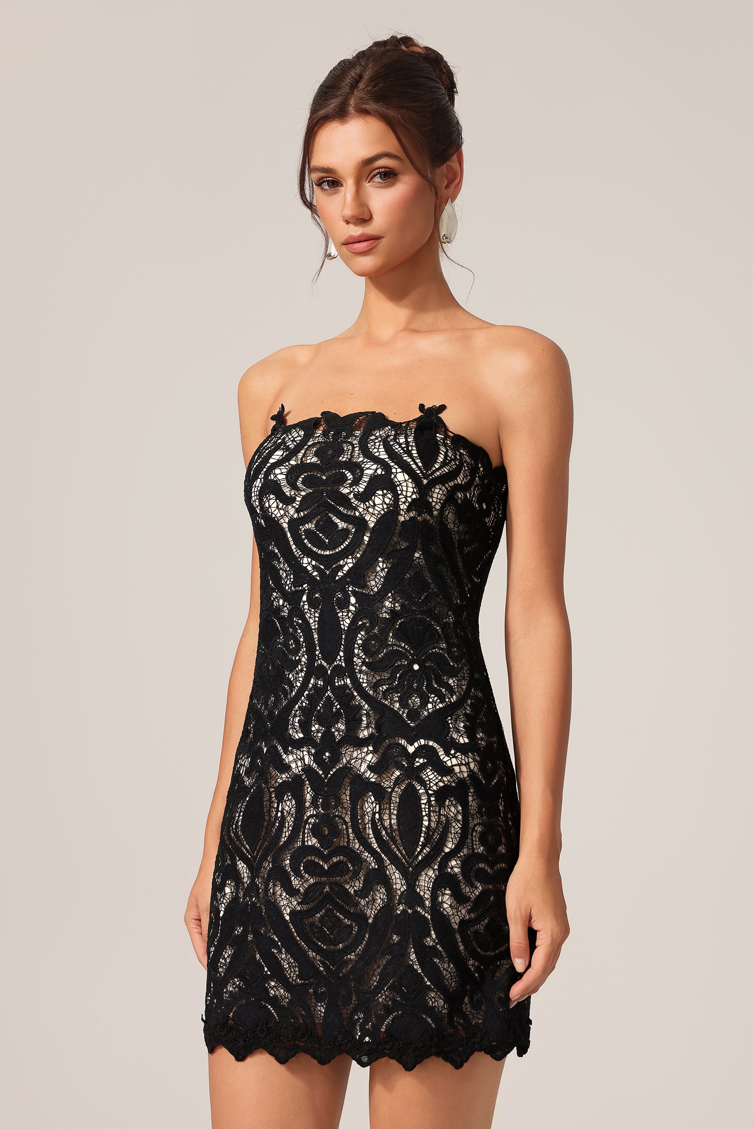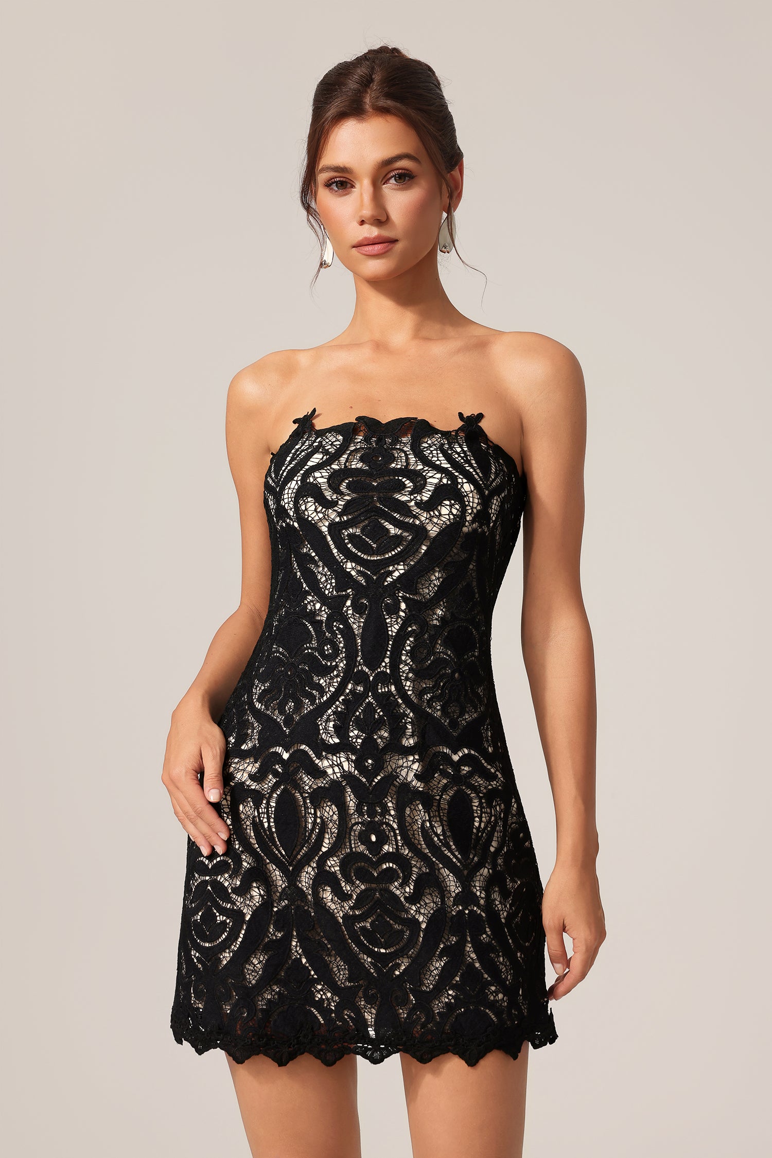 Lorena Sleeveless Flowers Lace Mini Dress