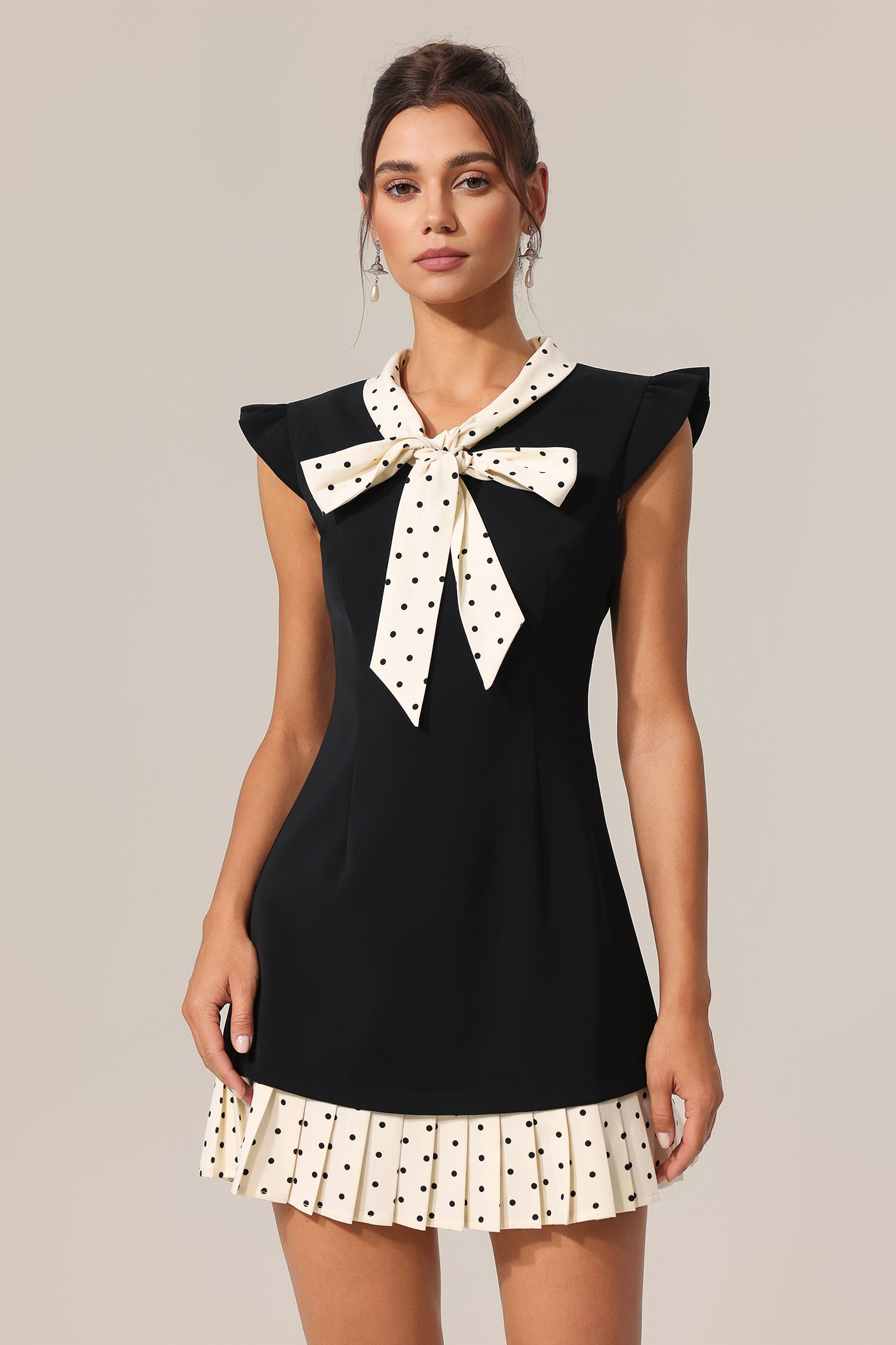 Nettie V-Neck Sleeveless Bowknot Dot Printed Folds Mini Dress
