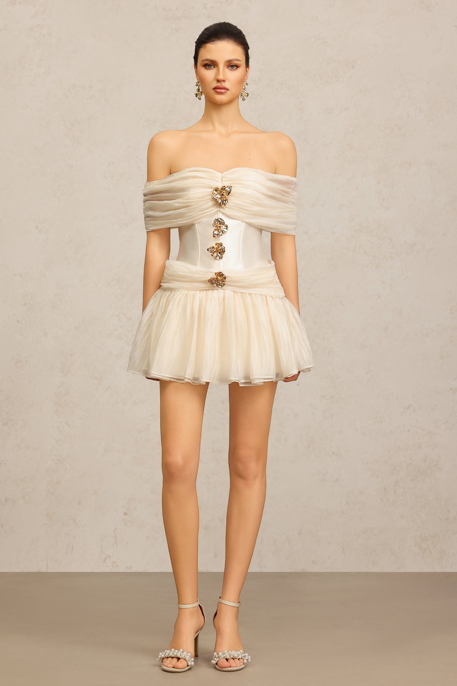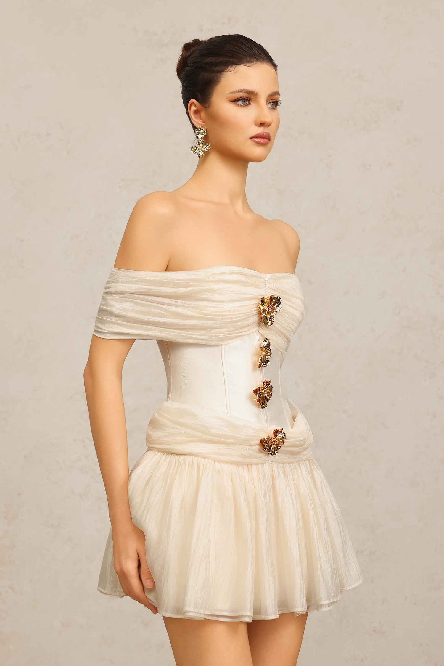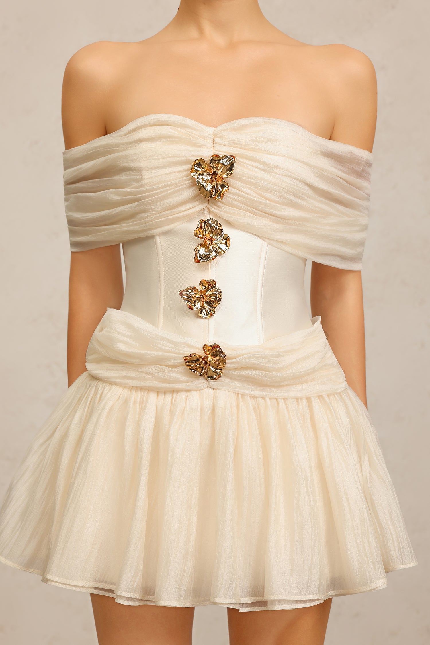 Dye Off-The-Shoulder Flowers Mini Dress