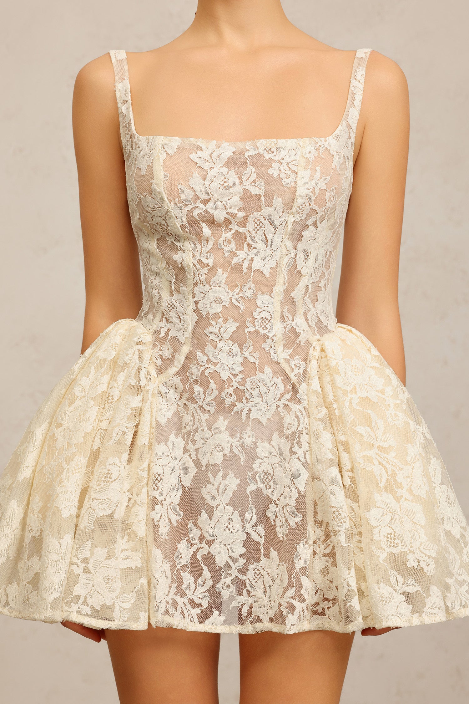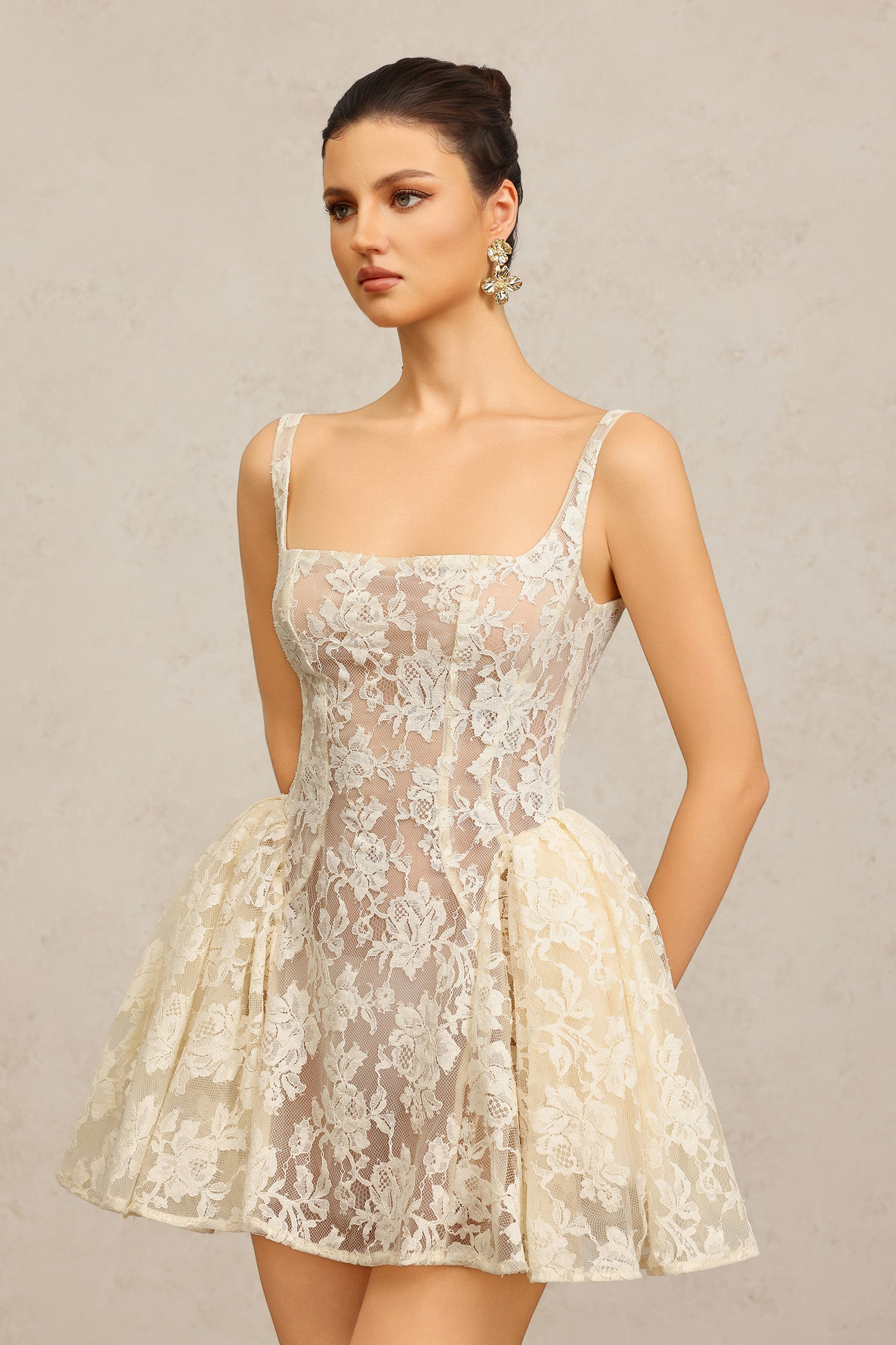 Fahrenheit Halter Lace Flowers Folds Mini Dress