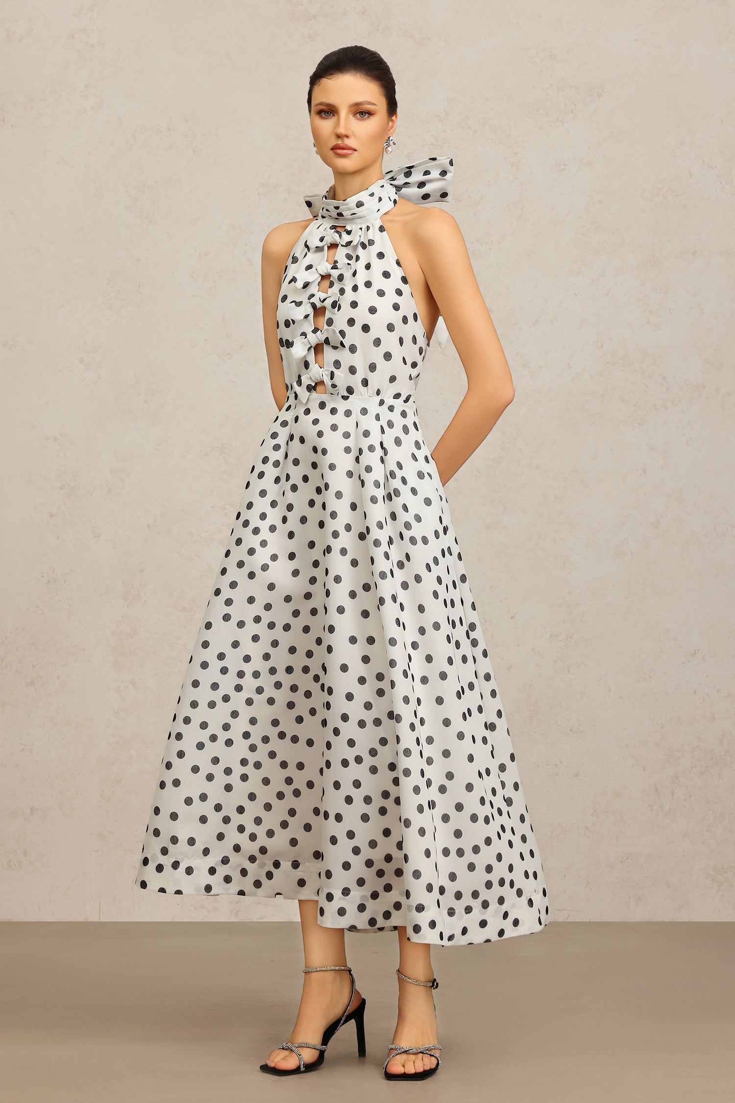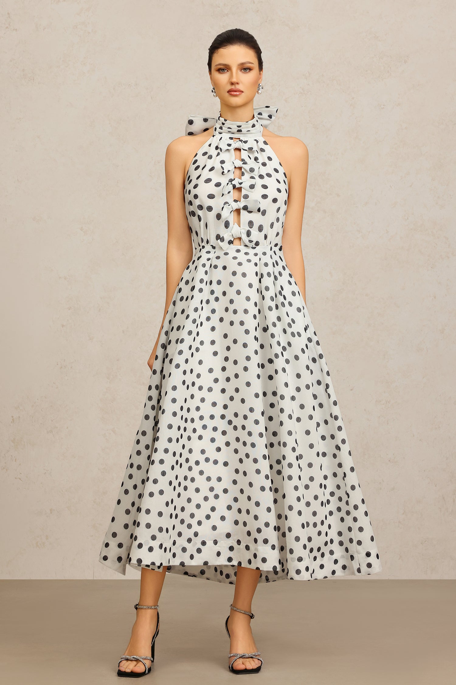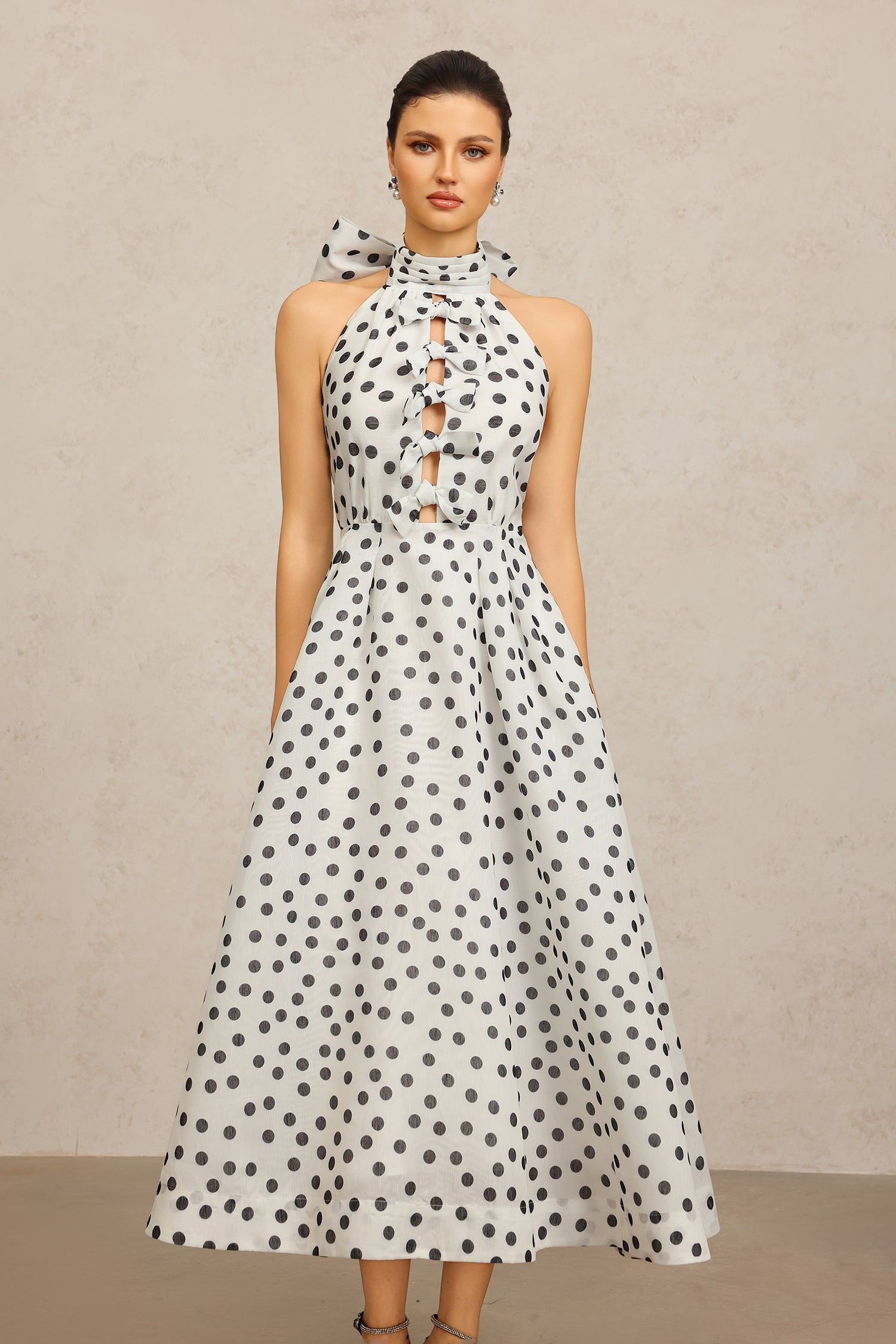 Sliya leeveless Bowknot Dot Printed Hollow Out Maxi Dress