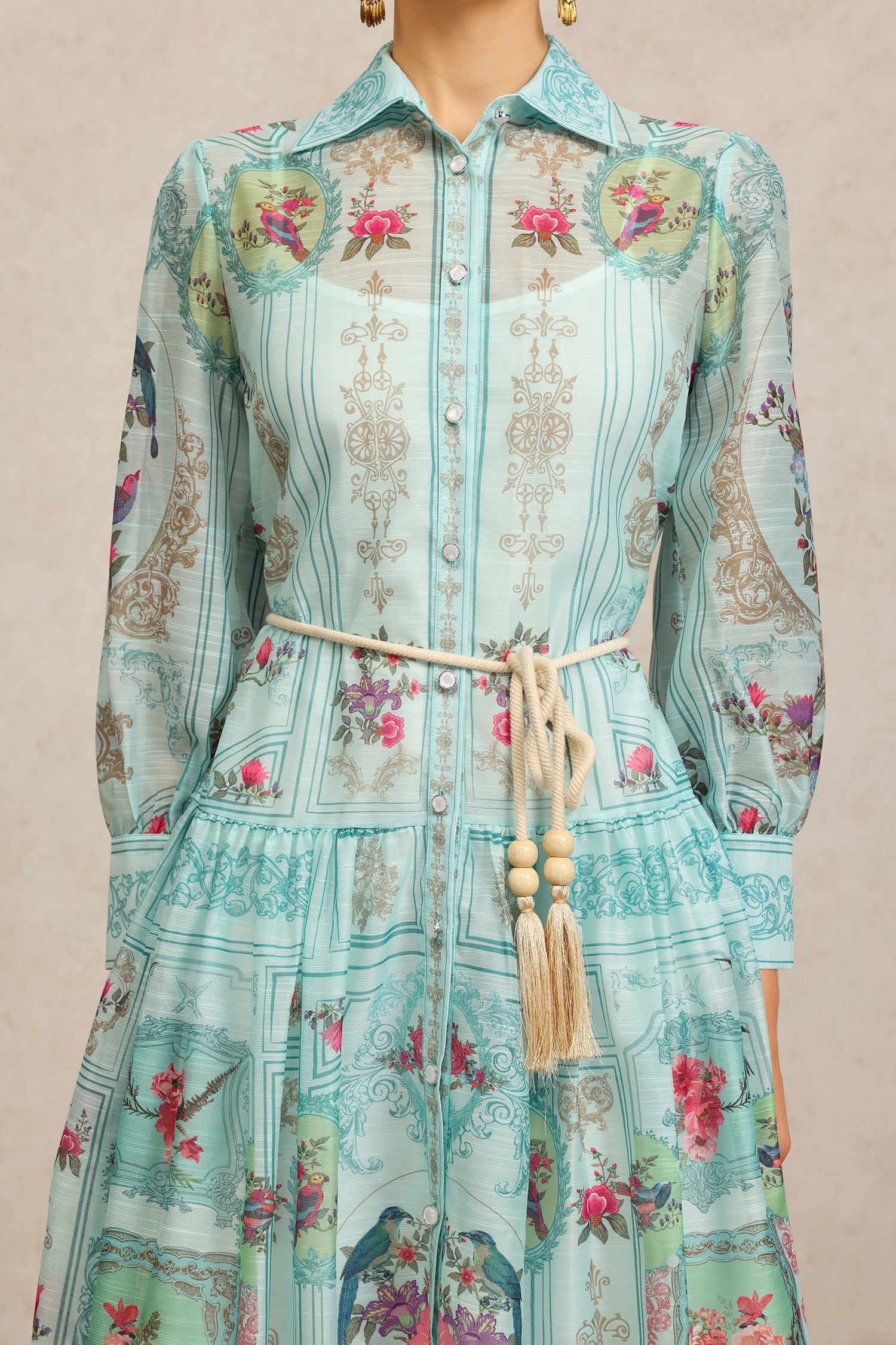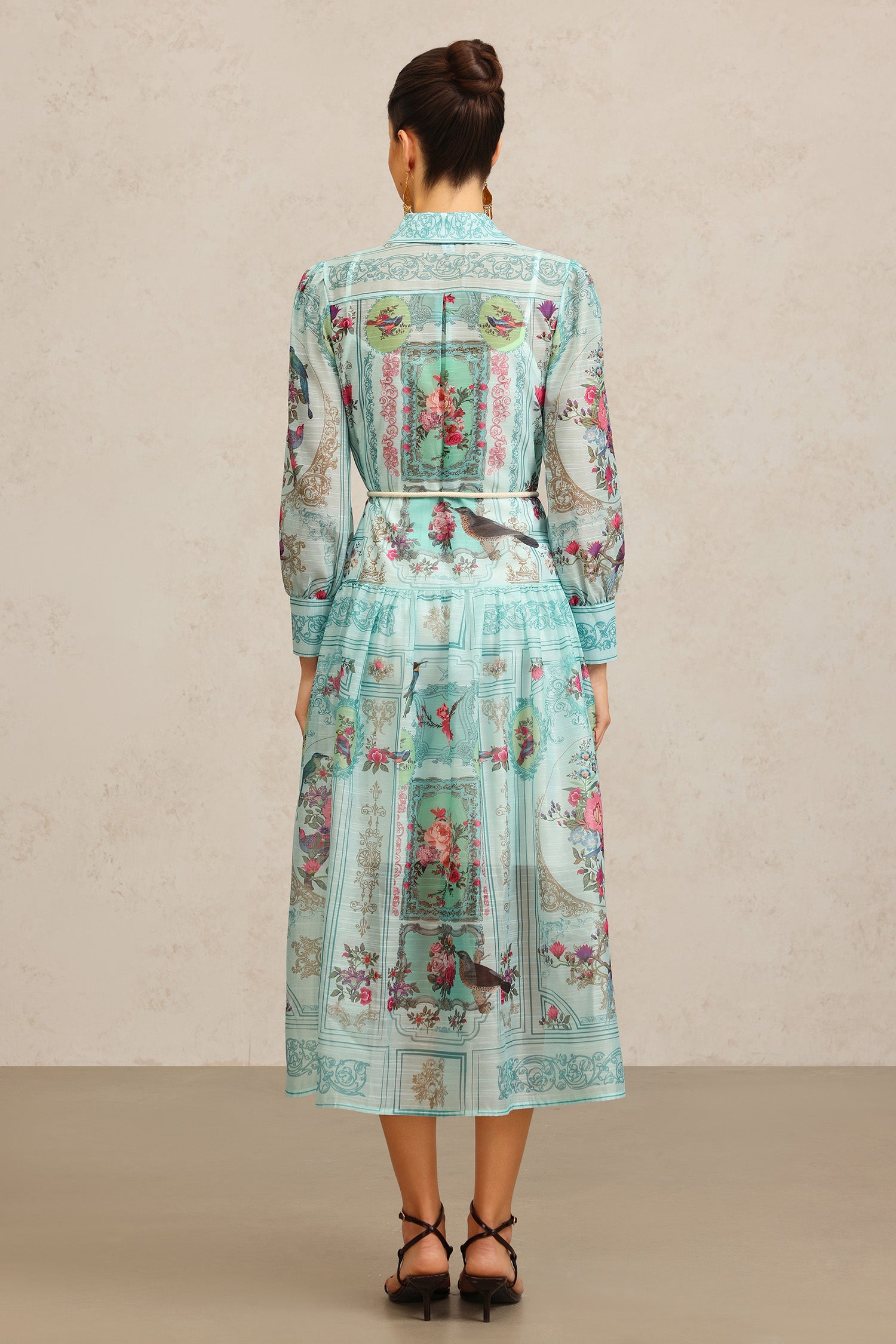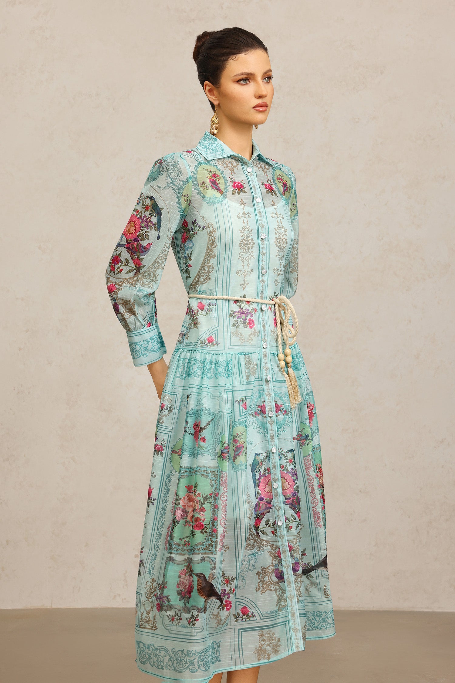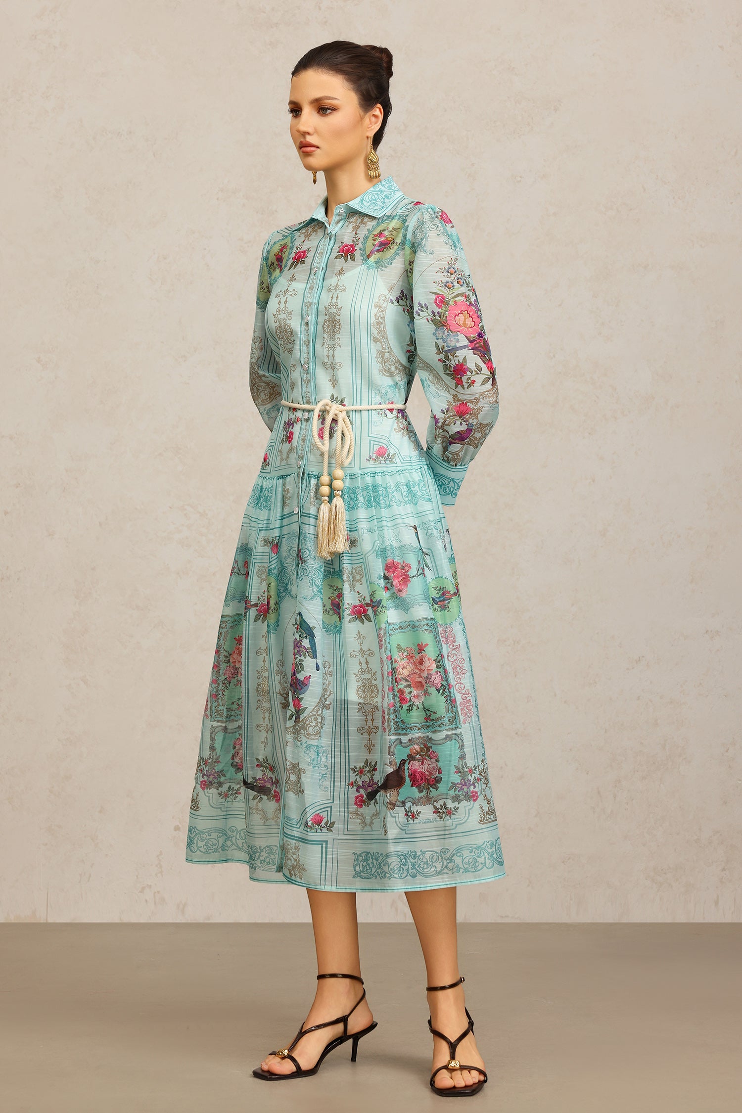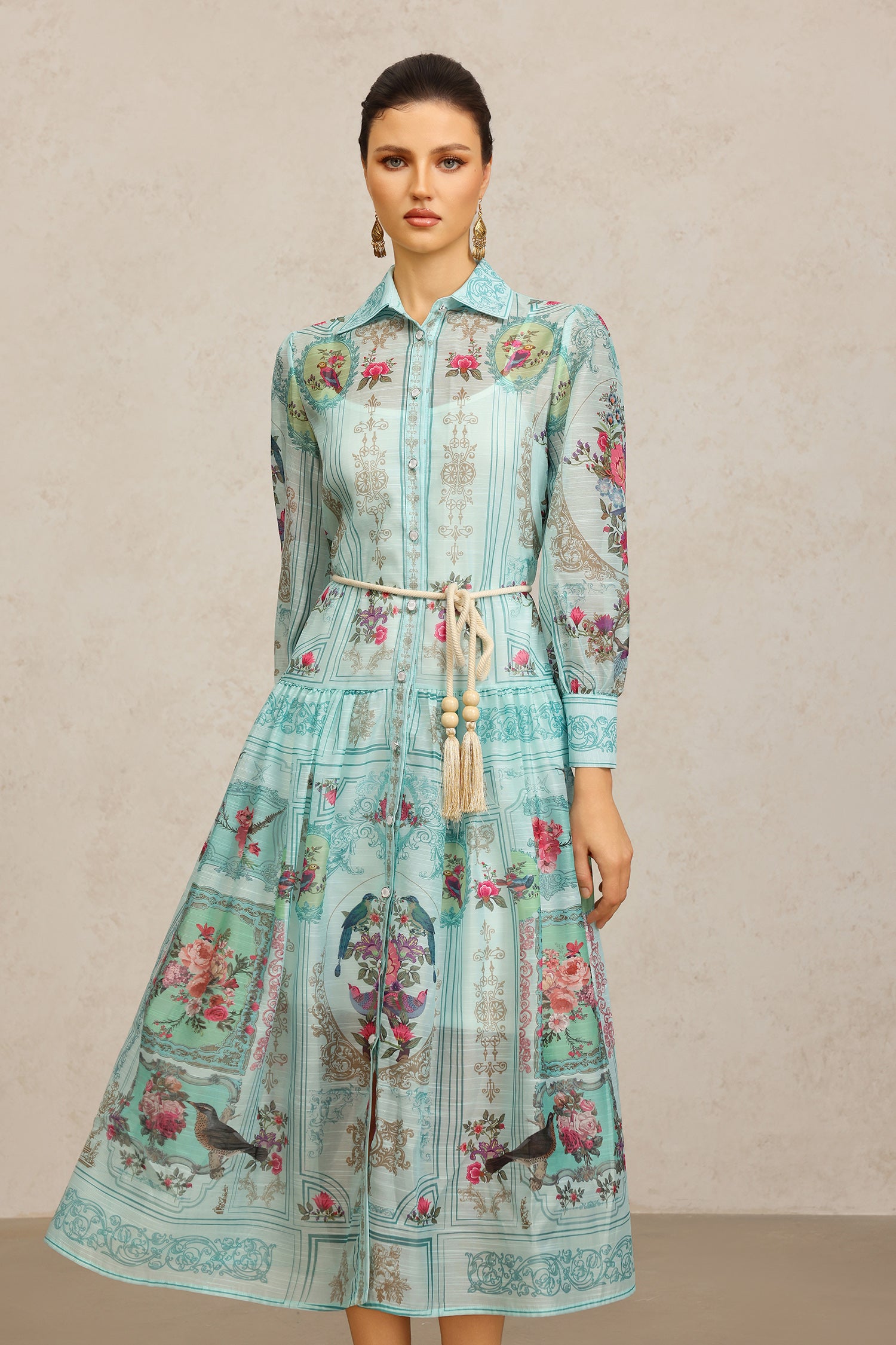 Yeney Lapel Long Sleeves Floral Printed Maxi Dress