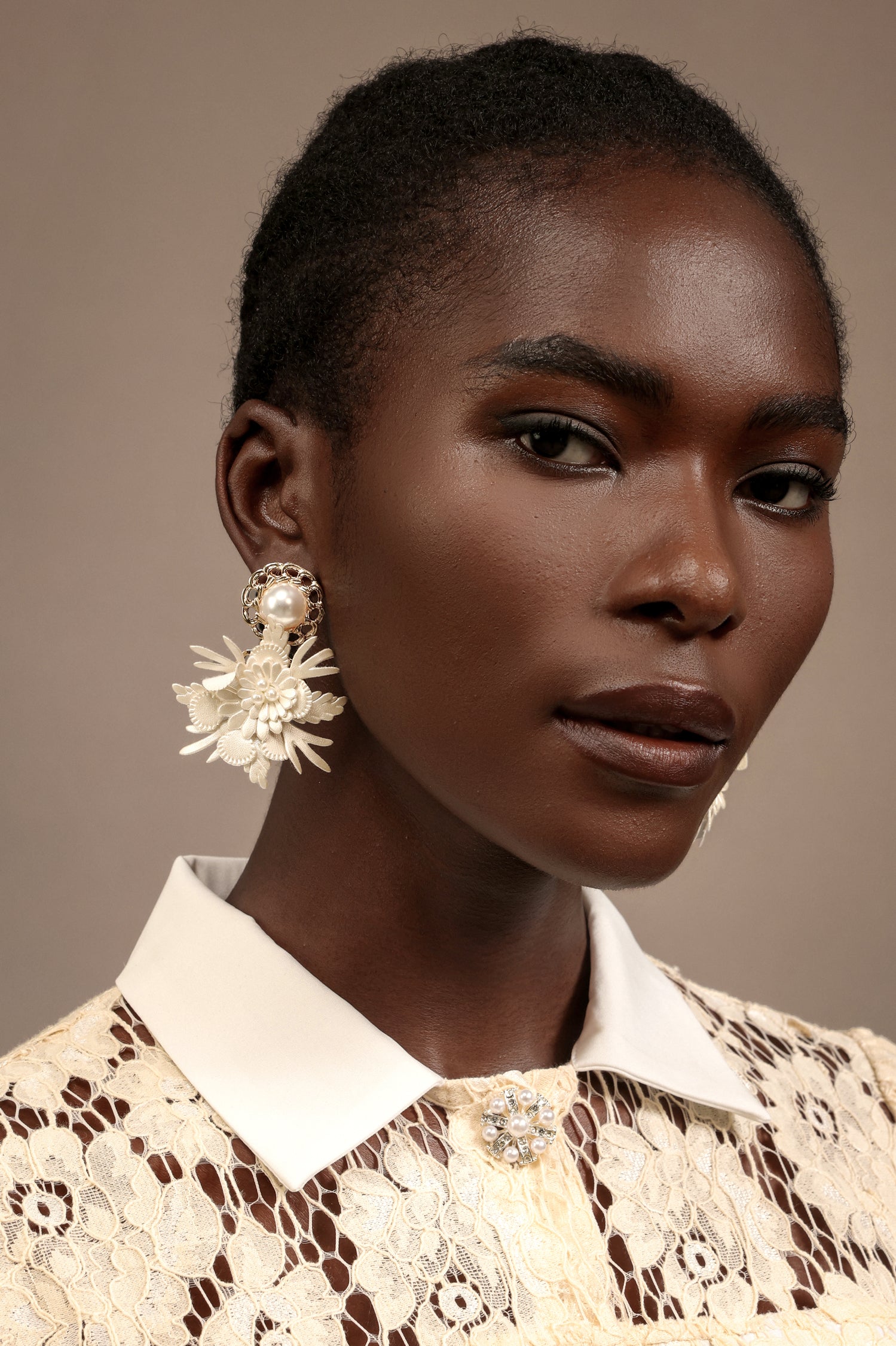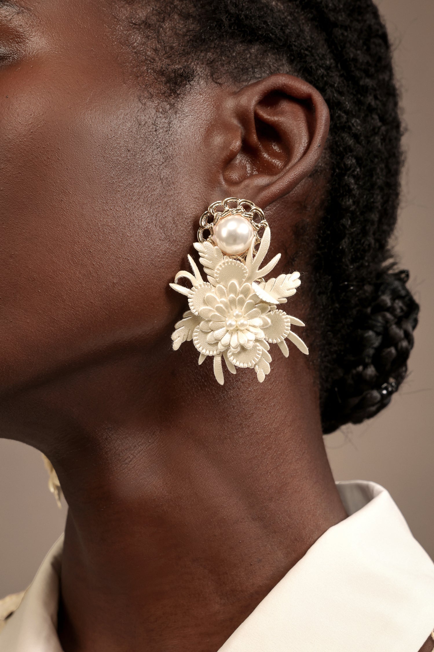 Ninamo Pearl Flowers Artificial Leather Earrings