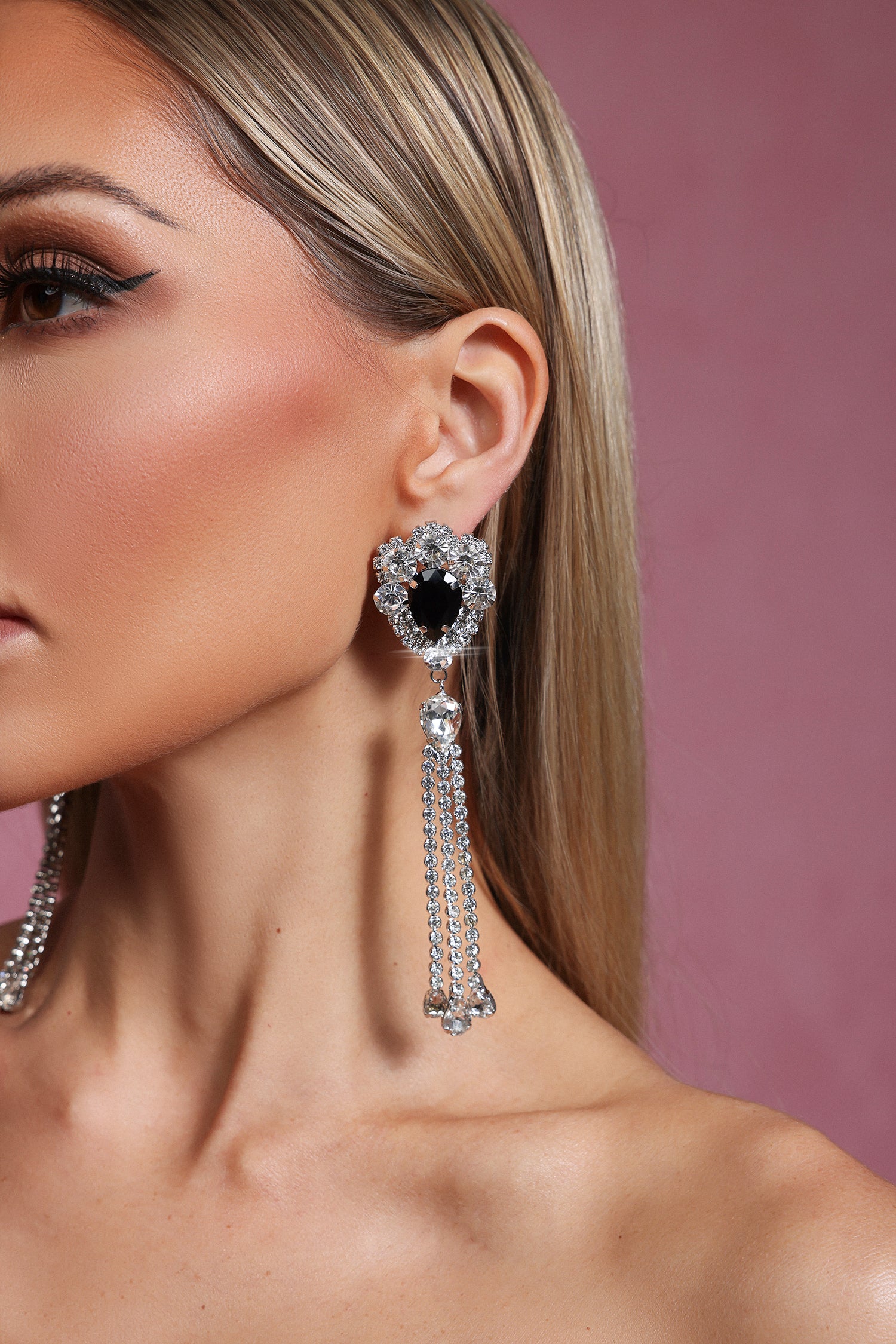 Triasa Diamond Tassels Drop-Shaped Earrings