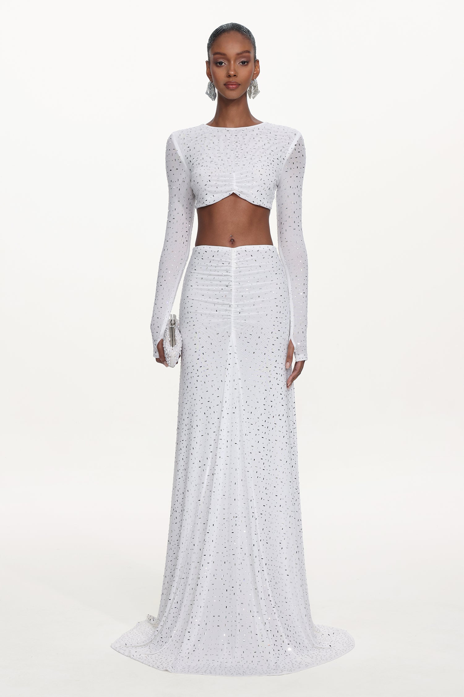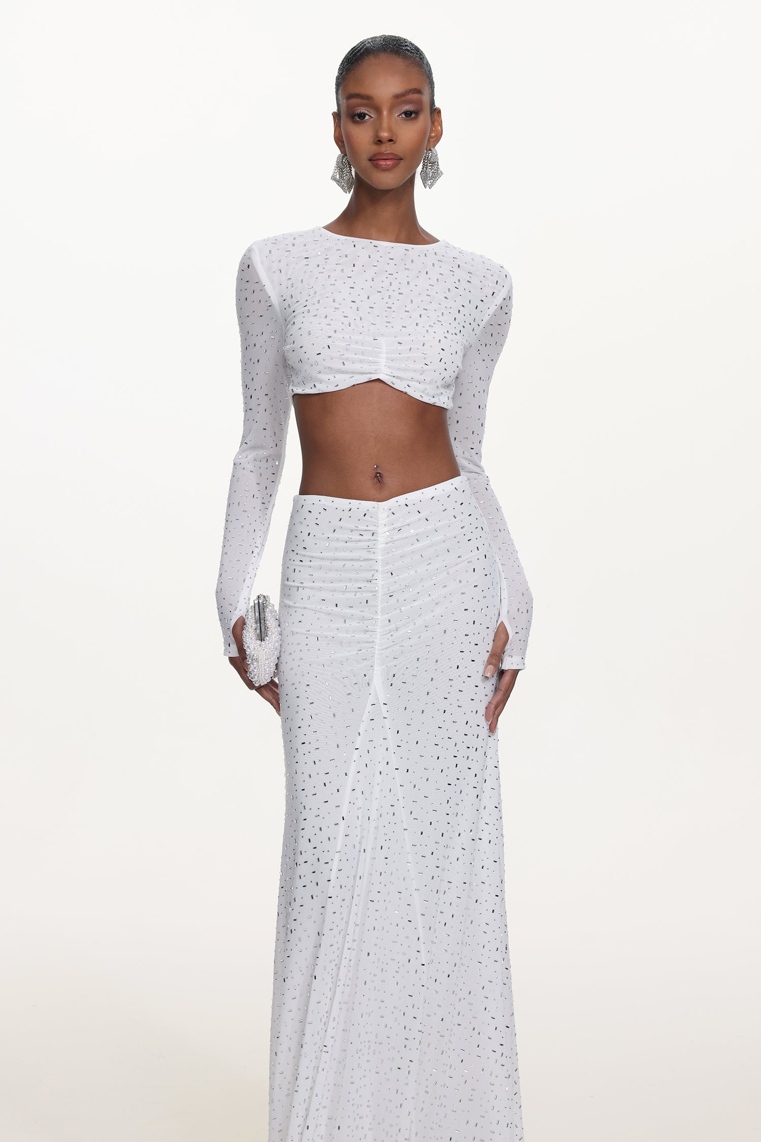 The fabric itself is light, thin and dense. Please avoid friction with sharp objects when wearing and storing it to prevent snags. The hot-fix rhinestone details need to be carefully protected. Please handle gently when wearing and washing. Do not machine wash at high temperature or directly iron the decorated parts. Hand washing or dry cleaning is recommended. Avoid pulling and high-temperature drying.