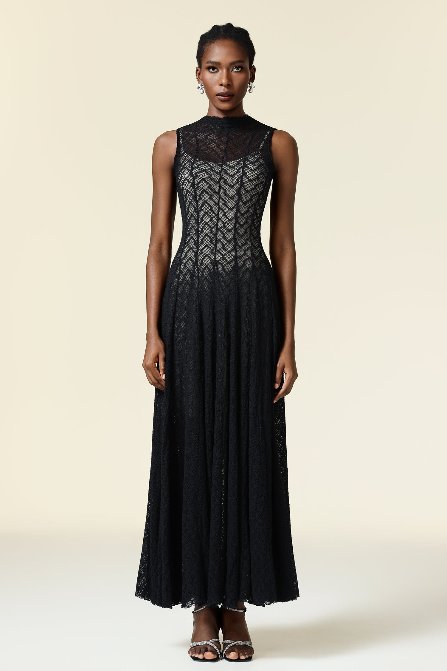 Falisa Round Neck Sleeveless Lace Maxi Dress