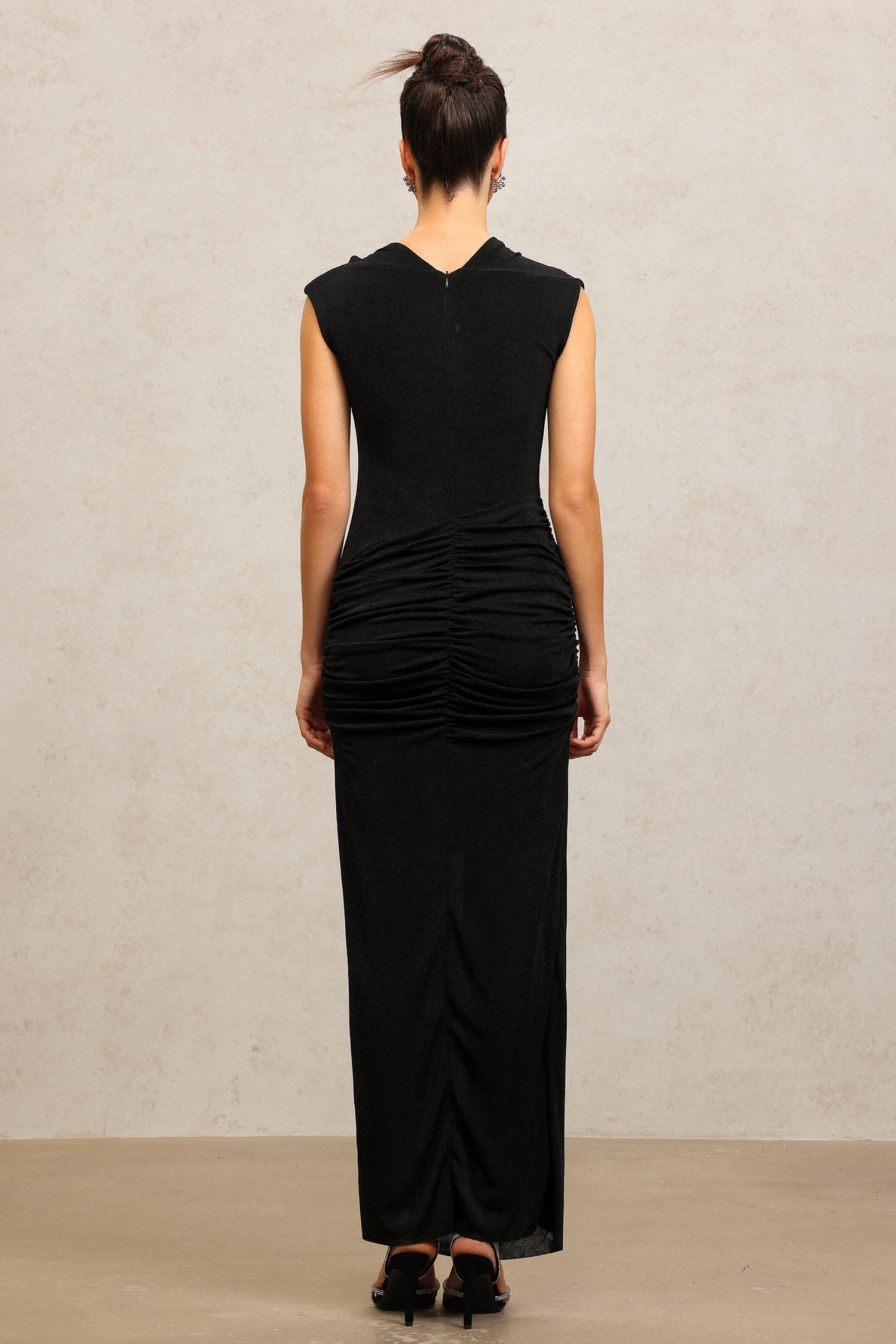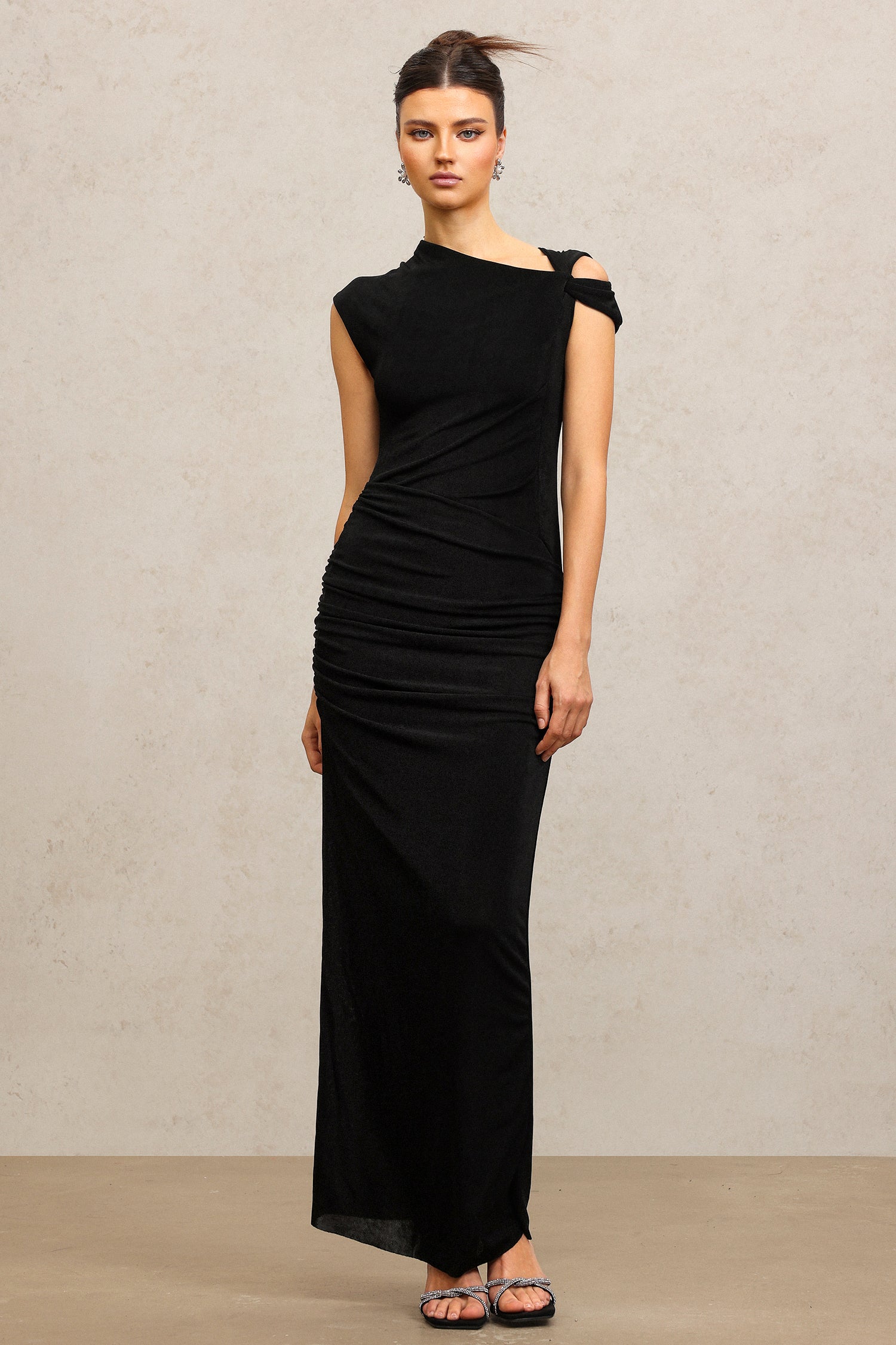 Jikisy Sleeveless Folds Asymmetric Black Maxi Dress