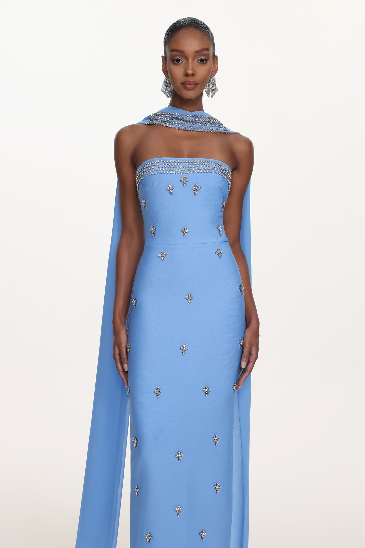 Marina Glamorous Contour Strapless Rhinestone Bandage Maxi Dress