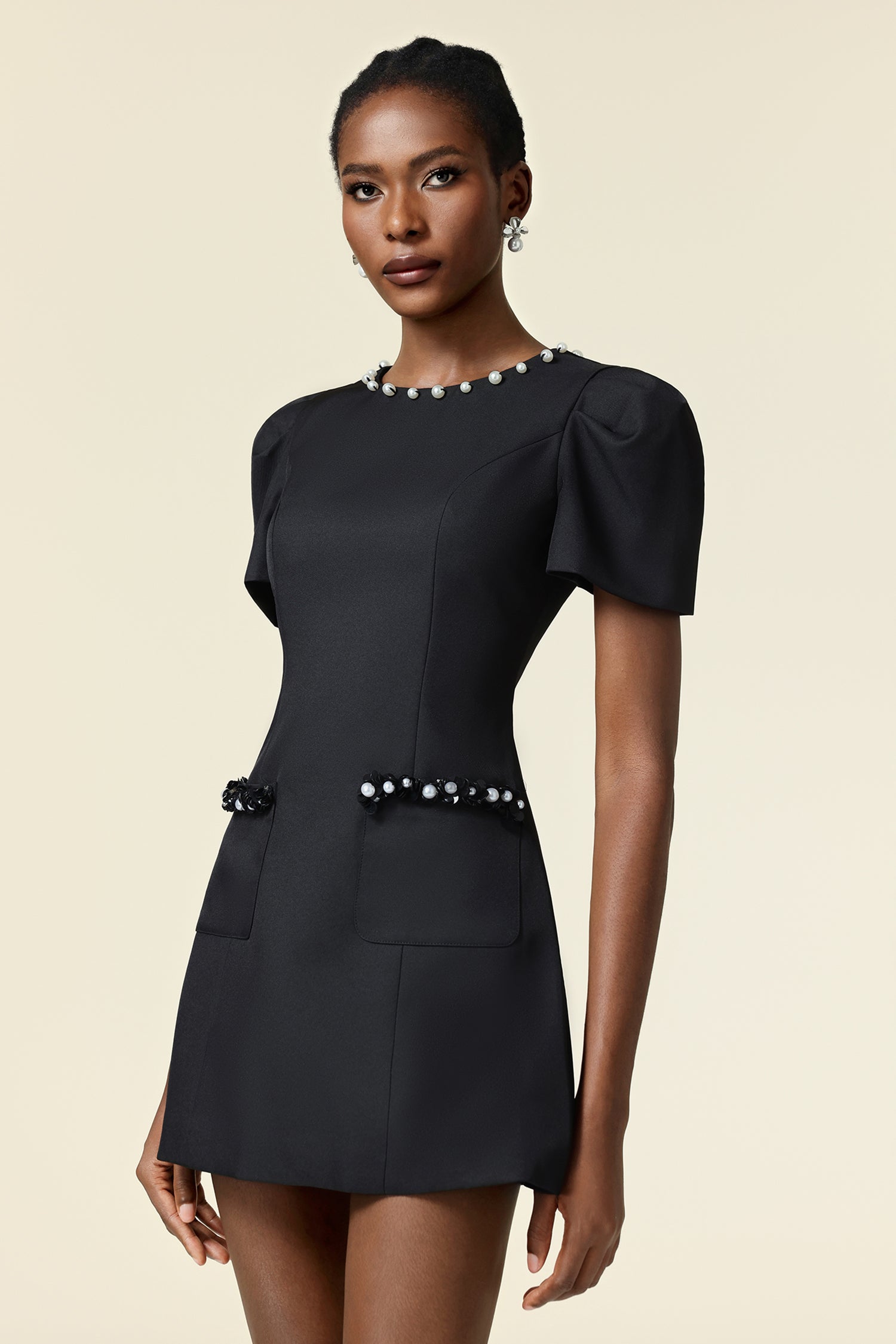 Novalee Round Neck Short Sleeves Pearl Mini Dress