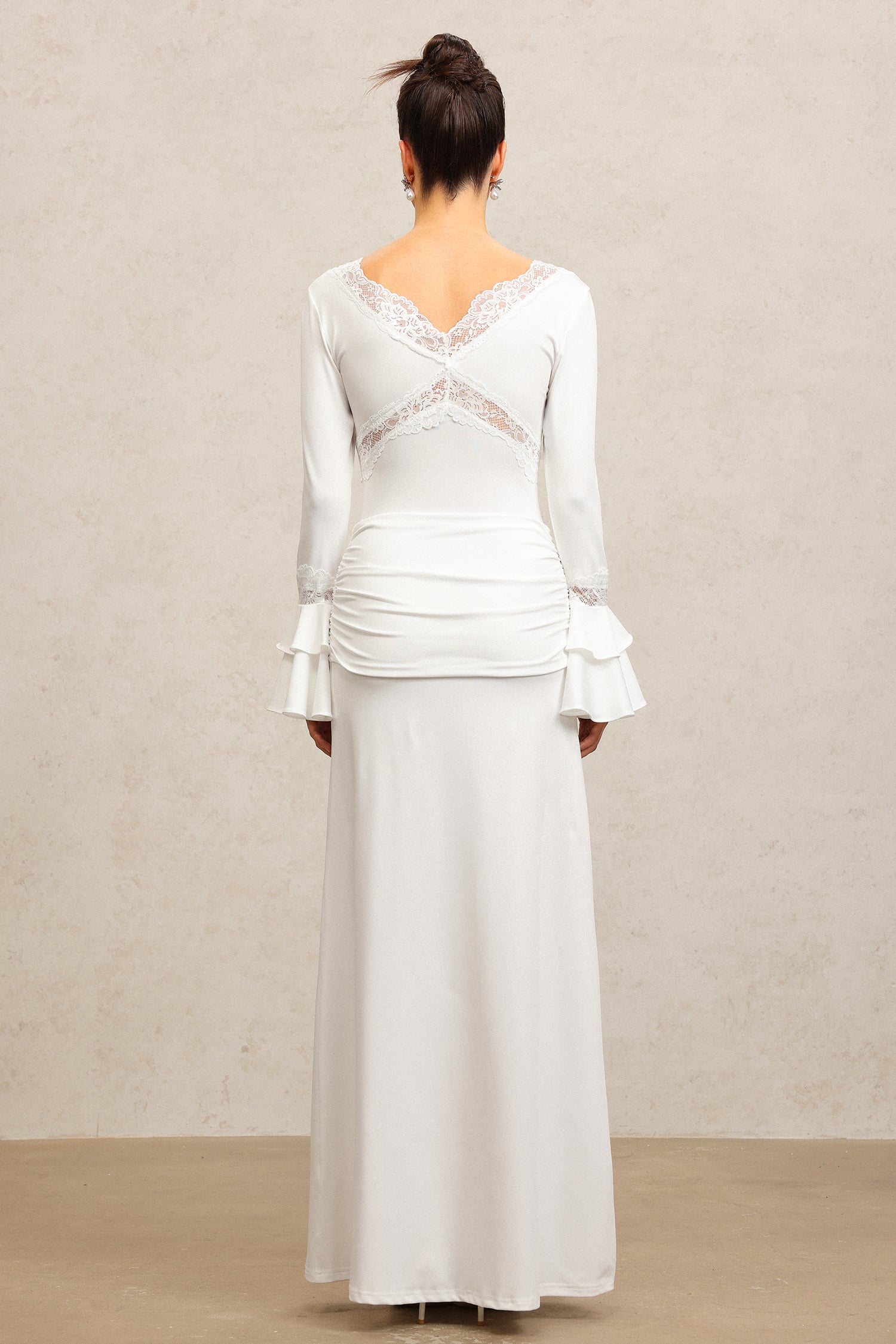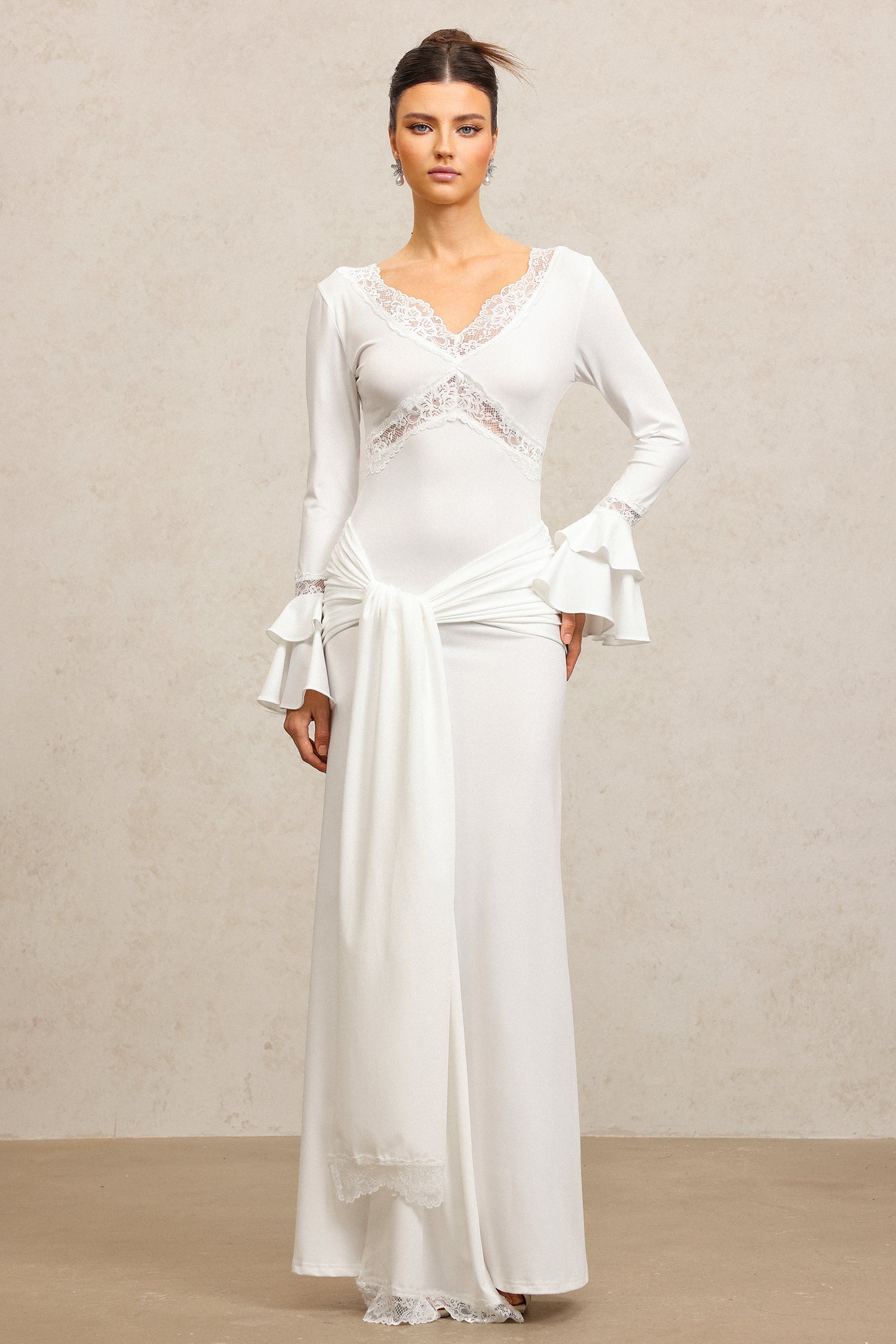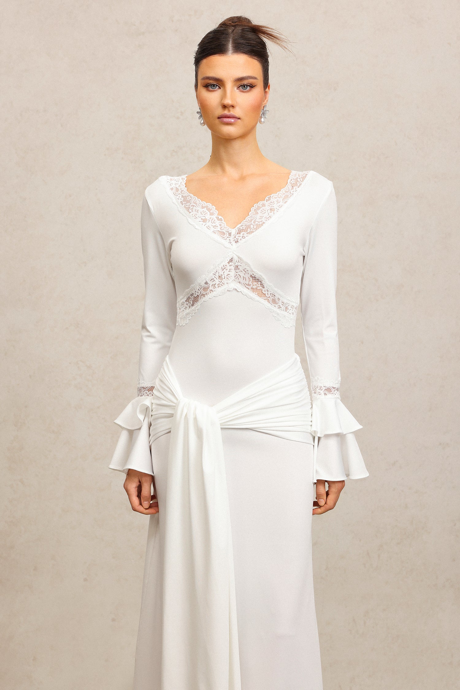 Xavier V-Neck Long Sleeves Lace Streamer Folds Maxi Dress
