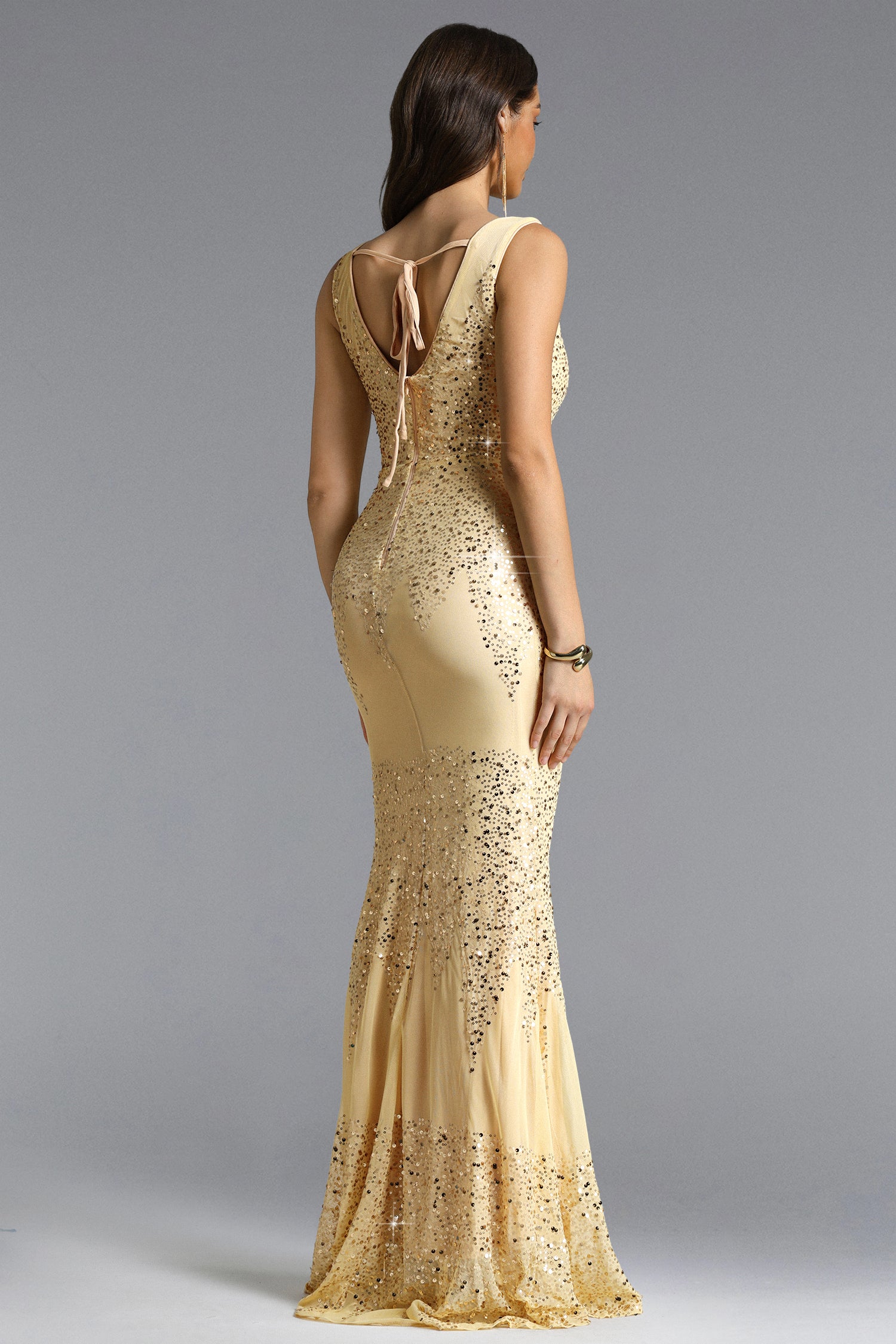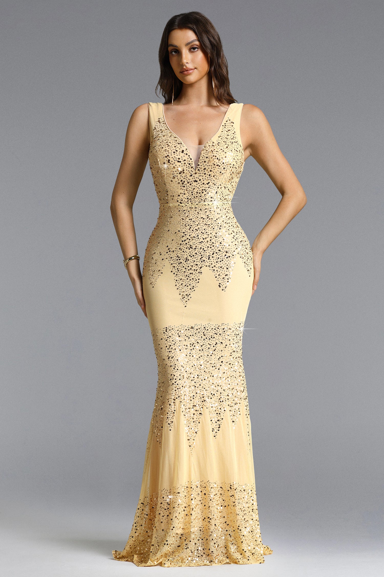 Montigo Chic Contour Deep V Sequin Maxi Dress