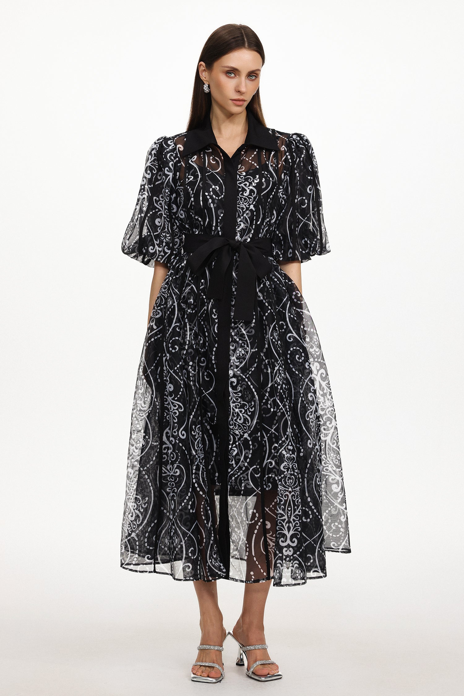 Vakana Resort Flowy Puff Sleeve Floral Woven Maxi Dress