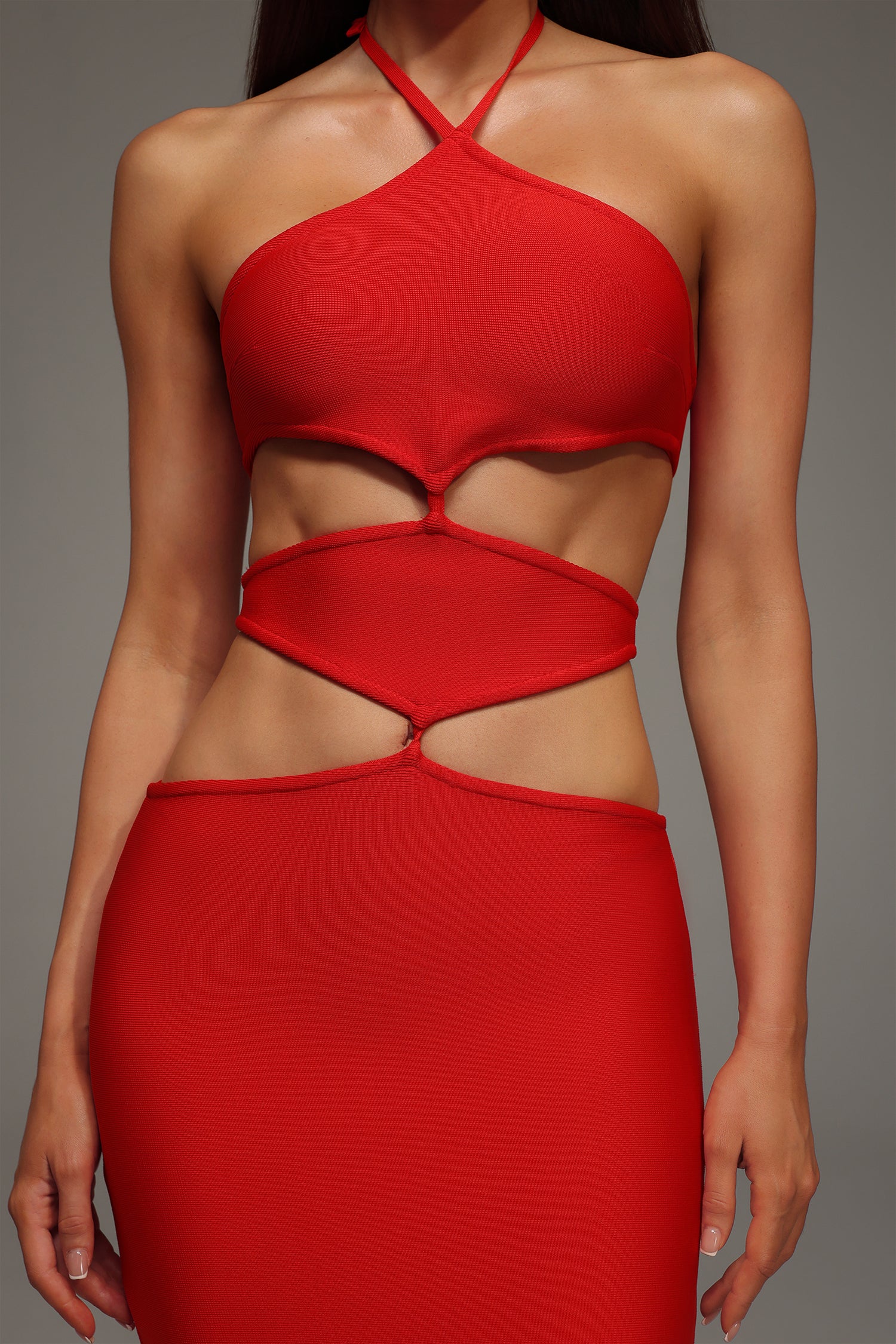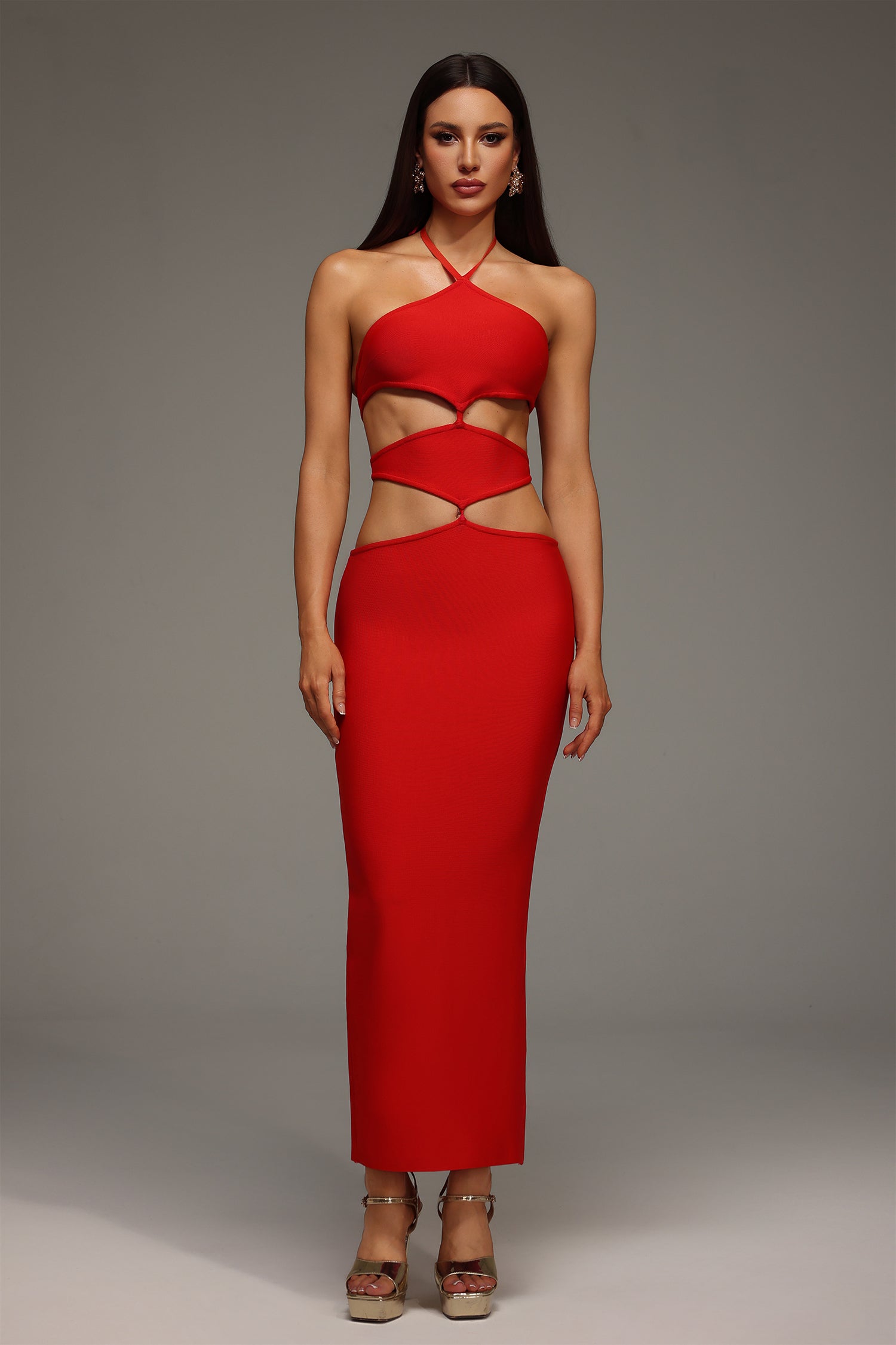 Tini Halter Sleeveless Hollowed out Bandage Maxi Dress