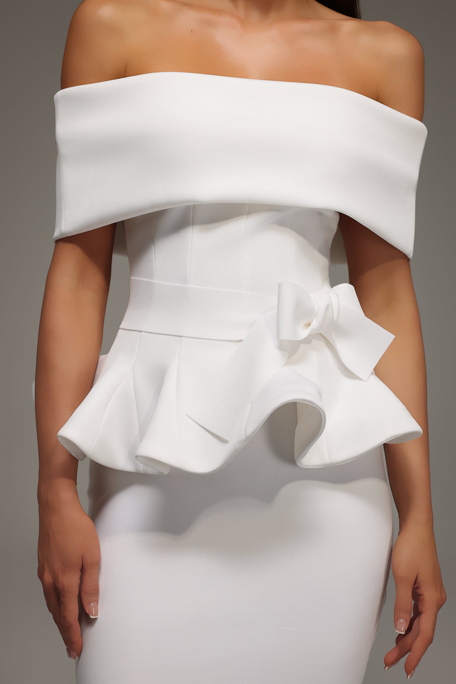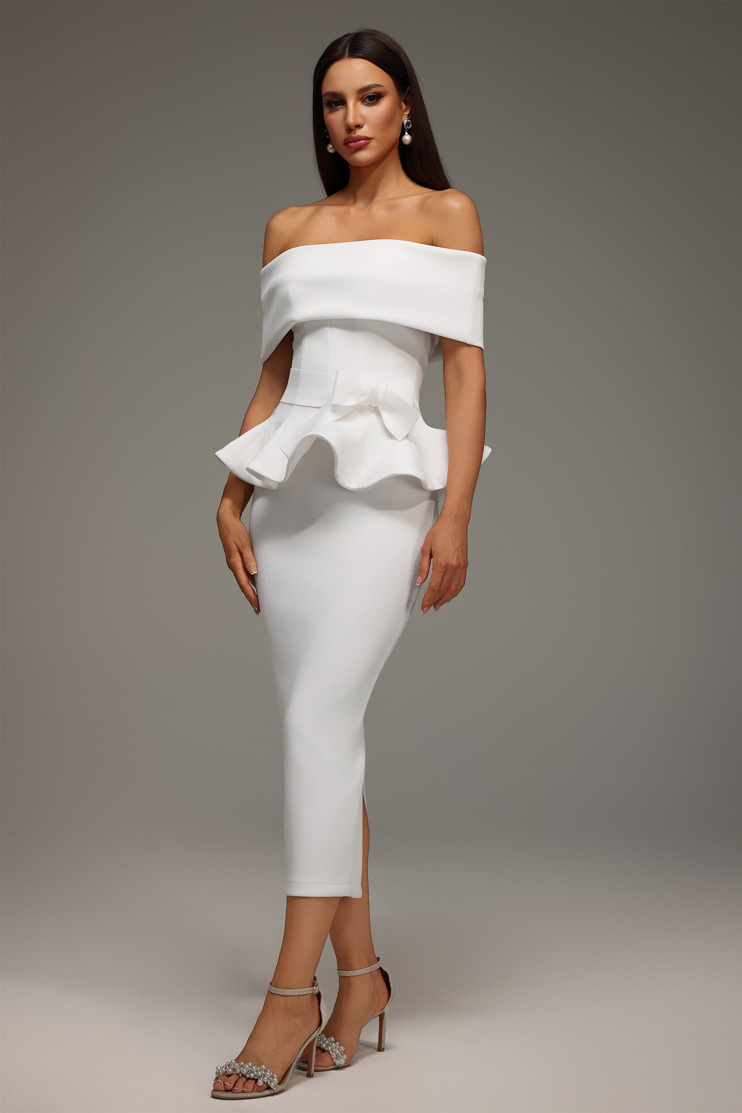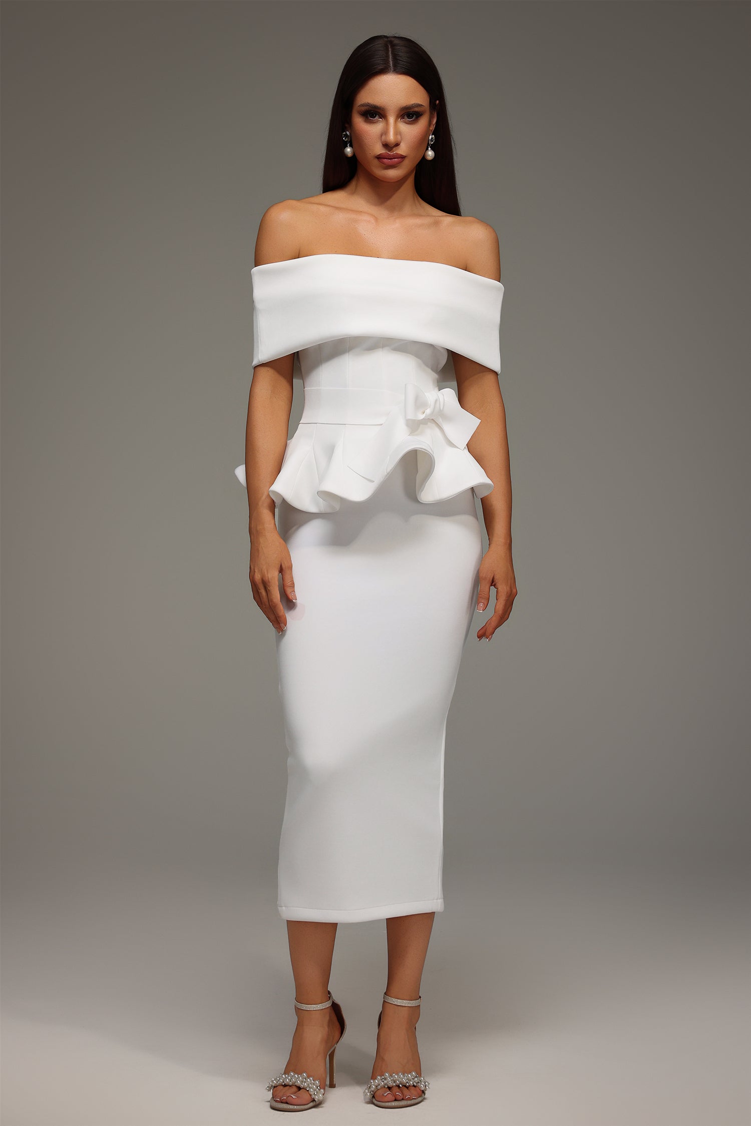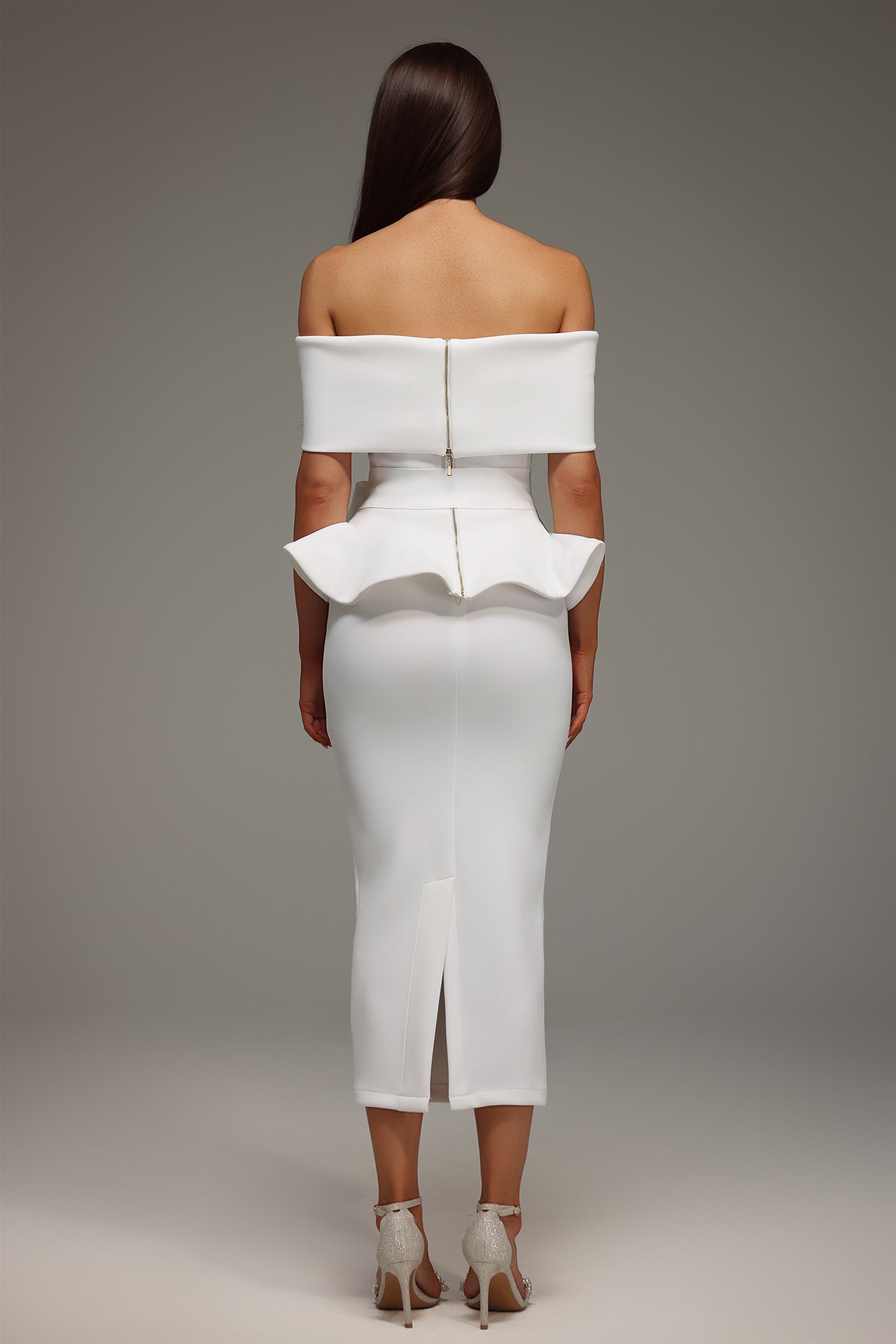 Eleanore Off The Shoulder Ruffled Edge Midi Dress