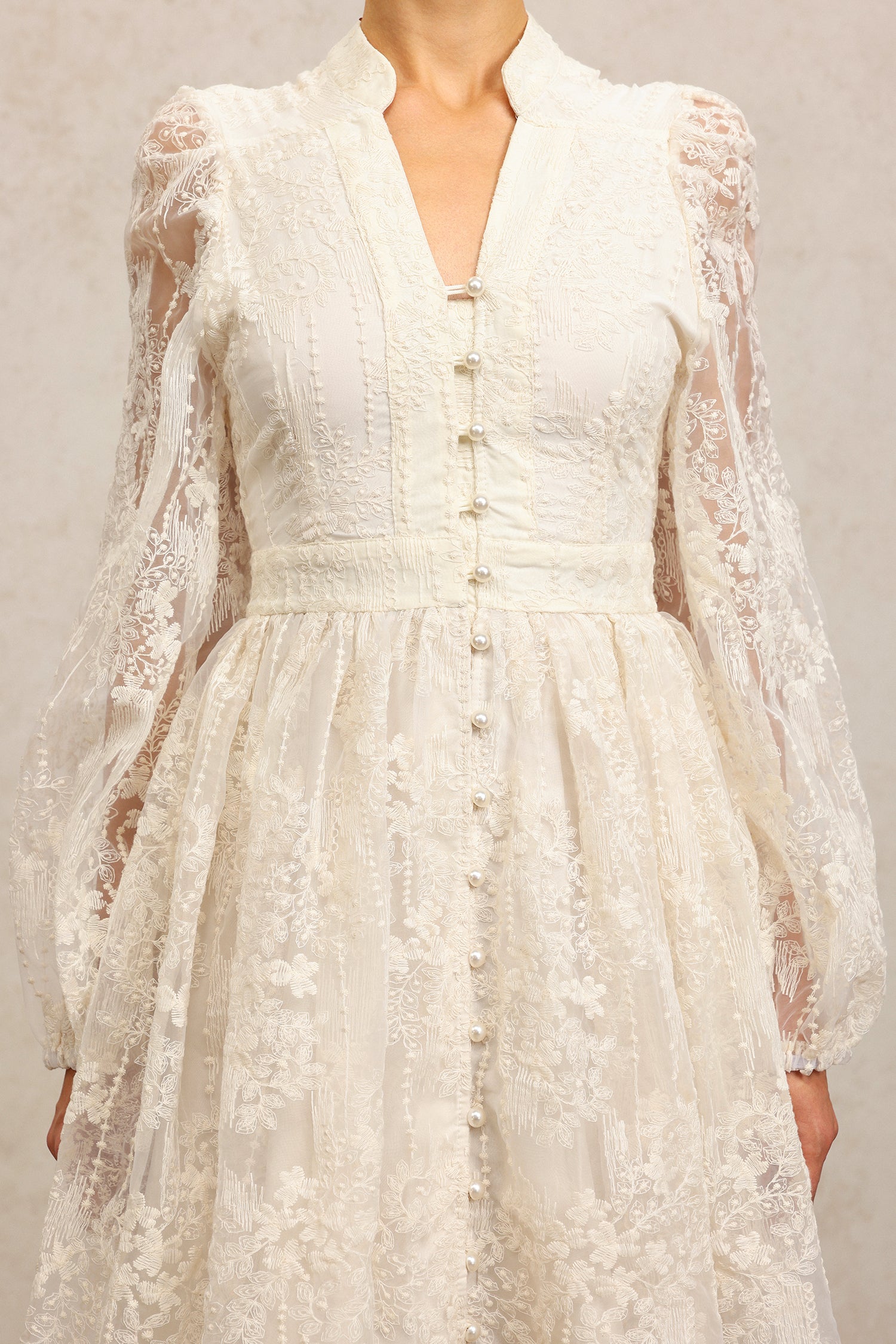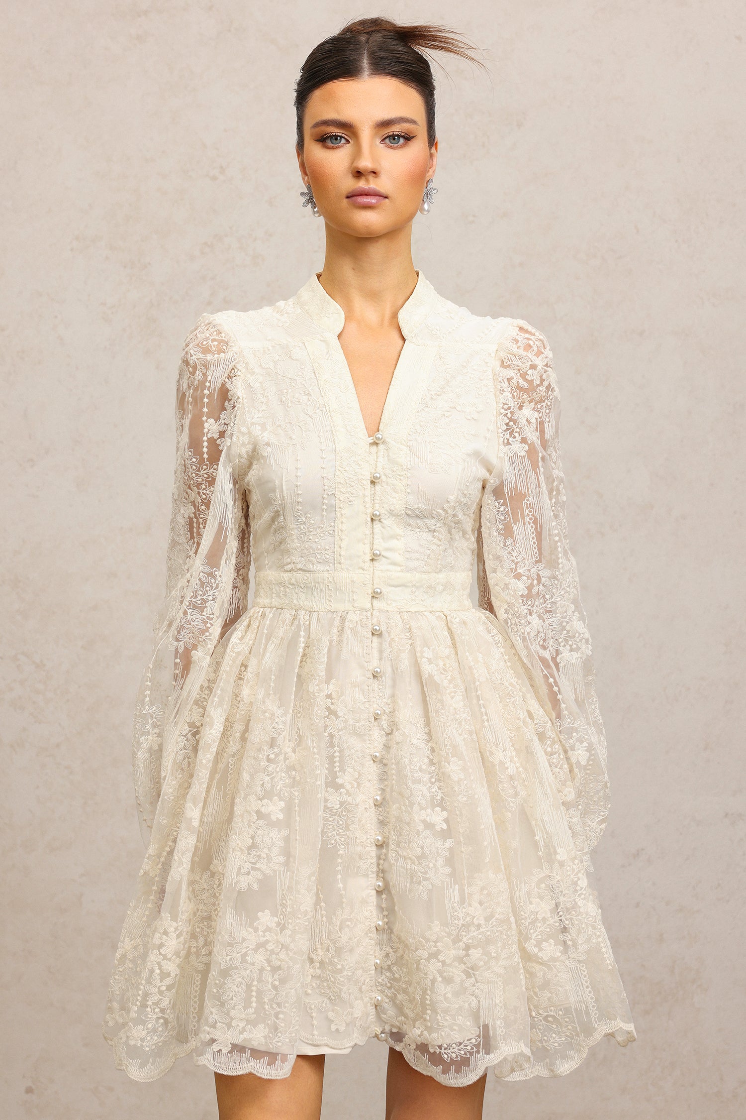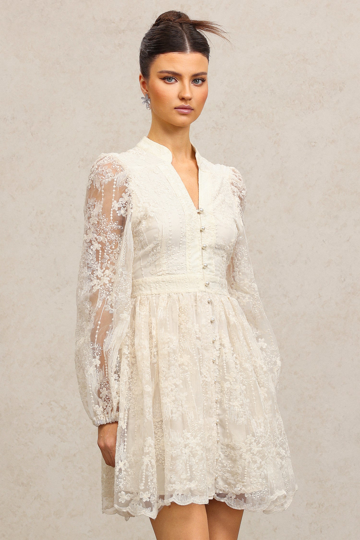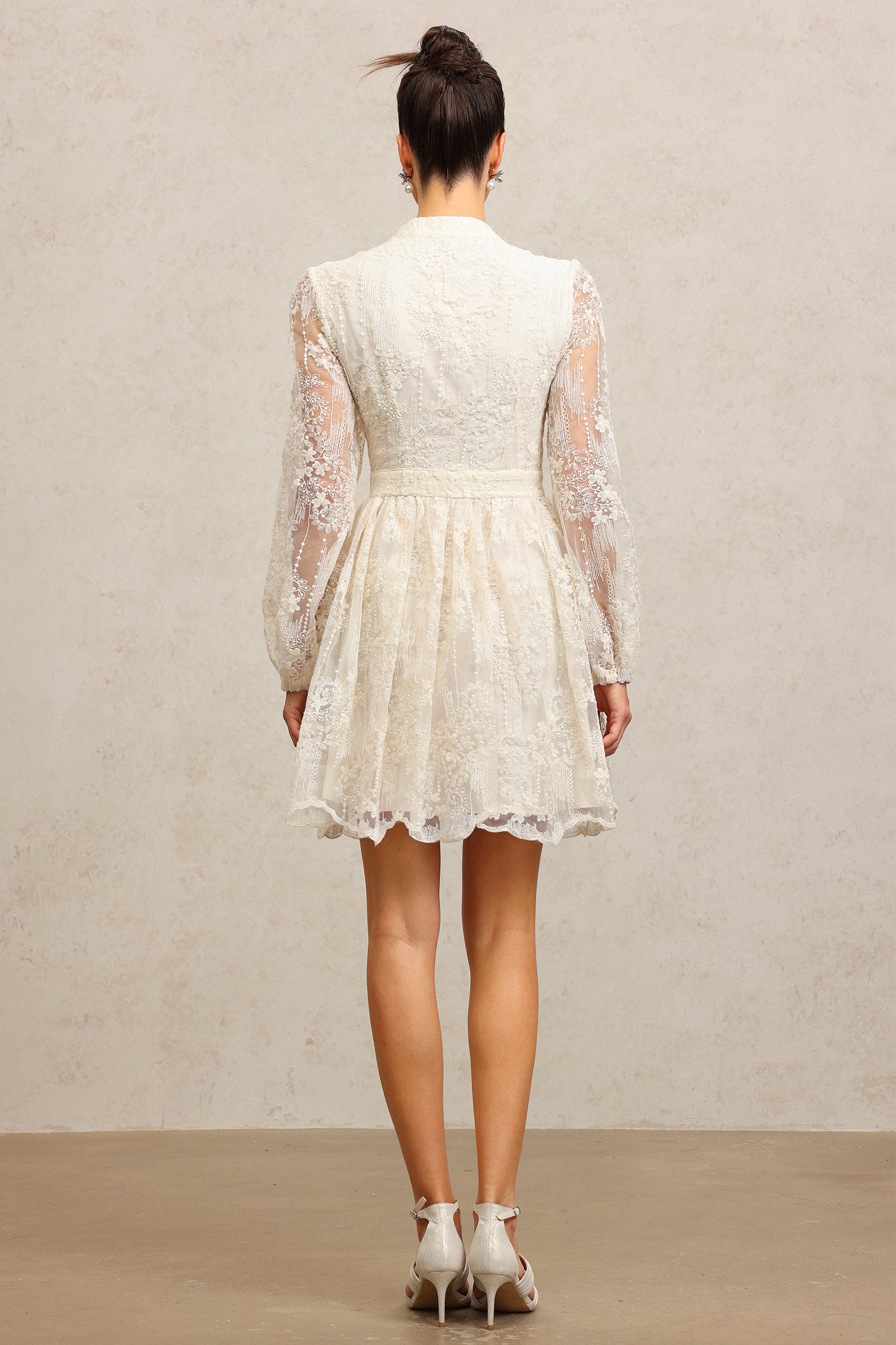 Mignon V-Neck Long Sleeves Embroidery Lace Mini Dress