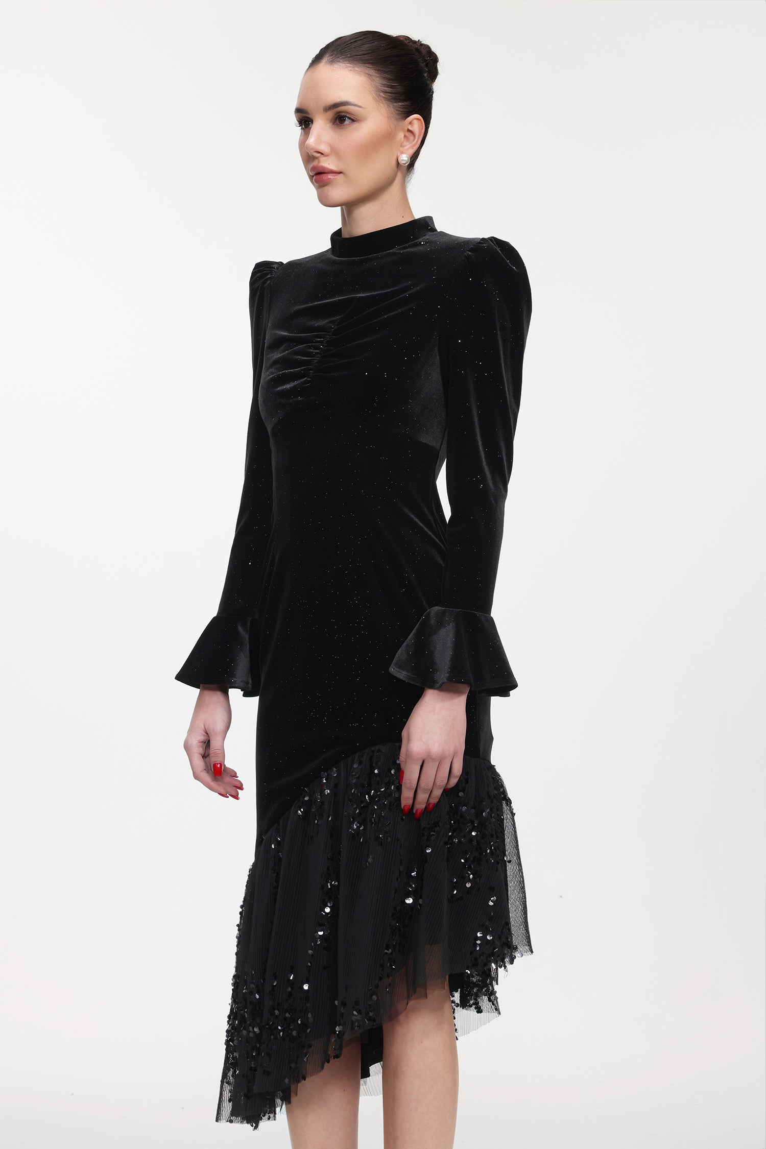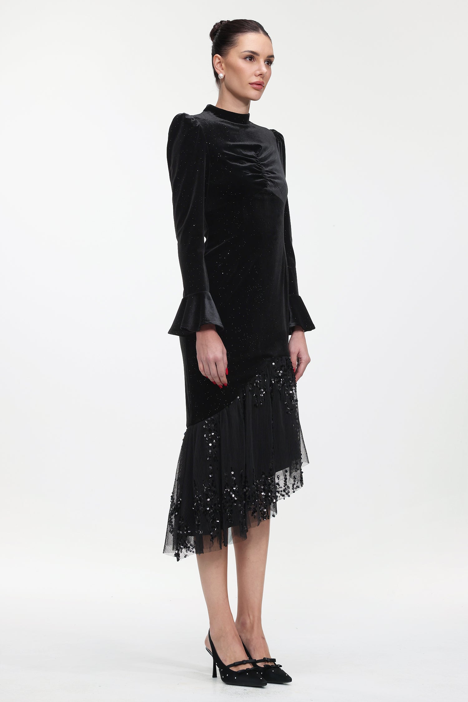This item is made of velvet fabric, which has a strong directional nap on the surface and a soft touch. Slight creases or indentations may appear during transportation and wearing, which is a normal phenomenon for velvet fabric. It can be restored by hanging flat in a well-ventilated area or lightly steaming the reverse side with low heat. Velvet fabric is not resistant to friction, so it is recommended to avoid contact with rough surfaces when wearing to maintain the nap's luster.