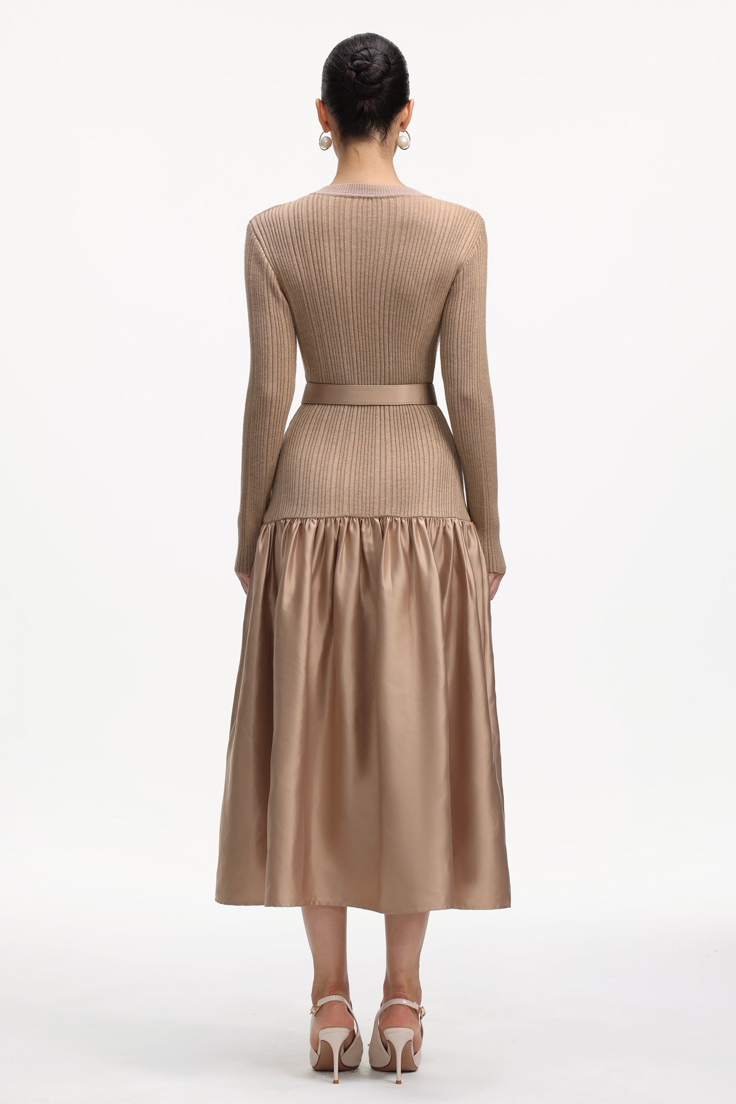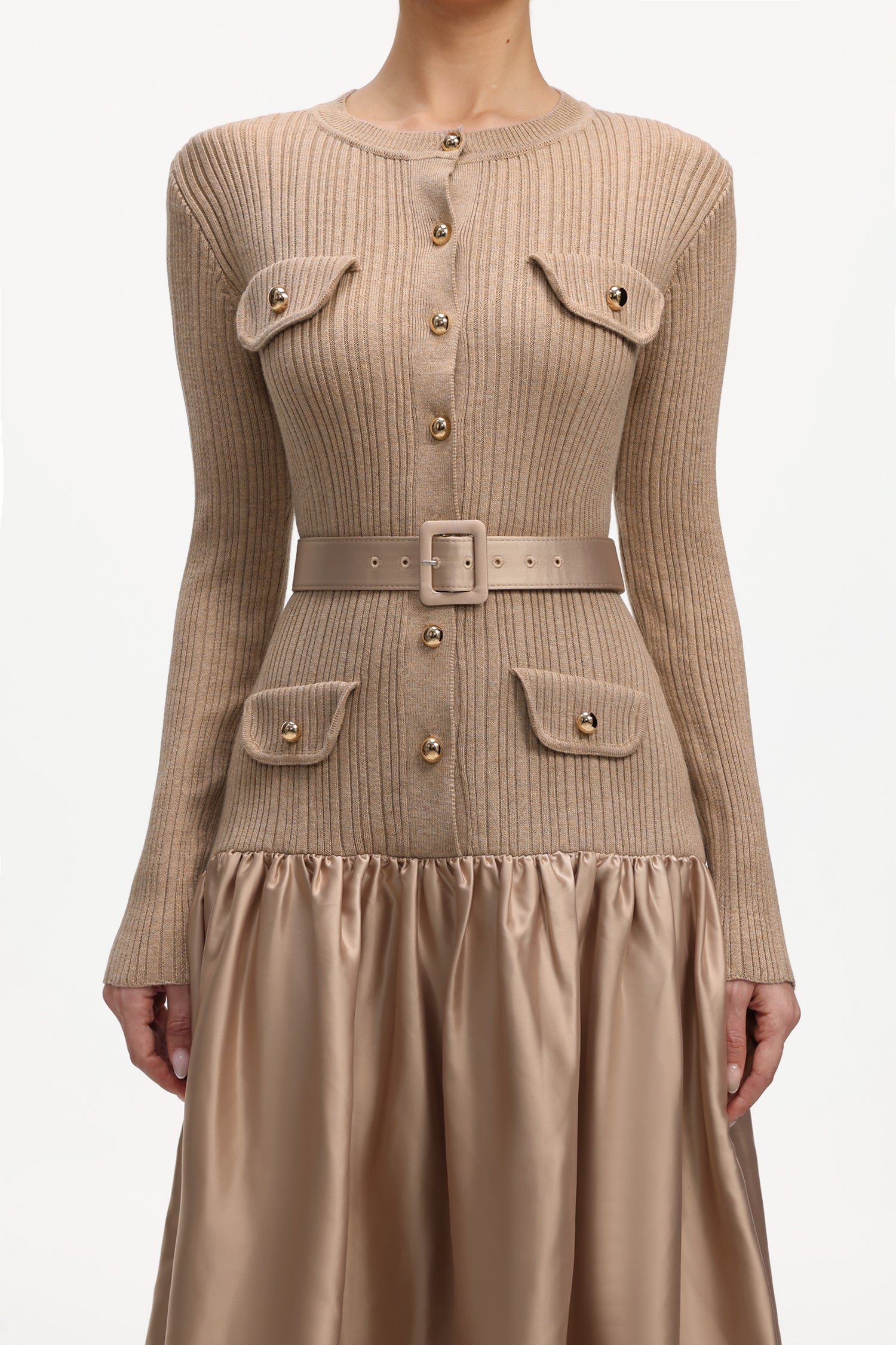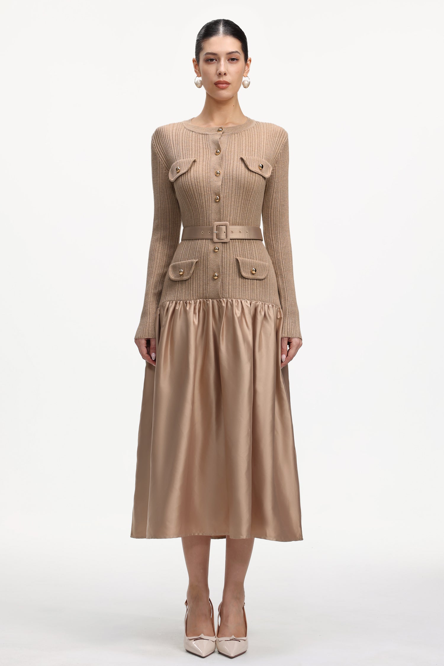 Marcia Elegant Contour Long Sleeve Knit Satin Maxi Dress