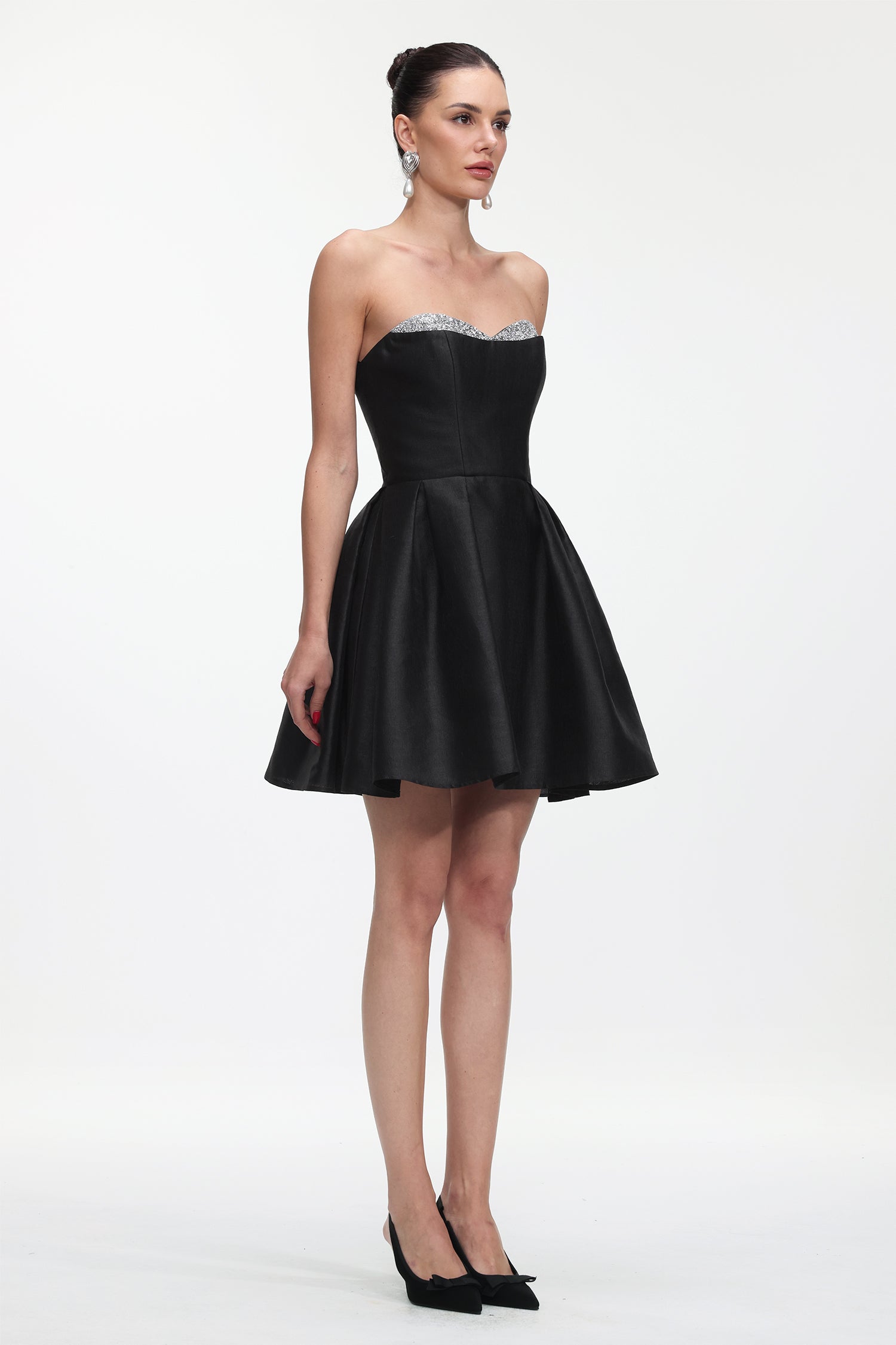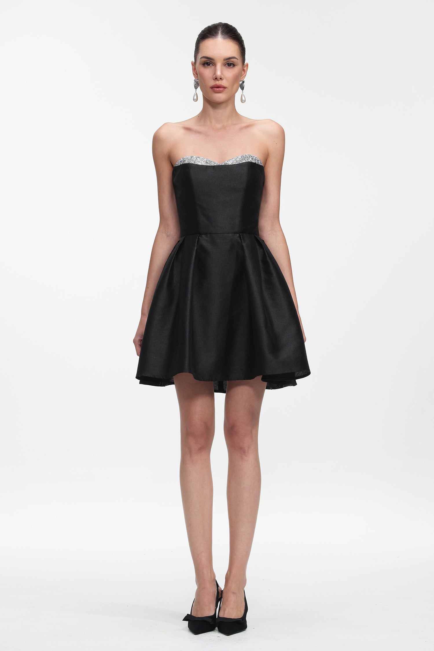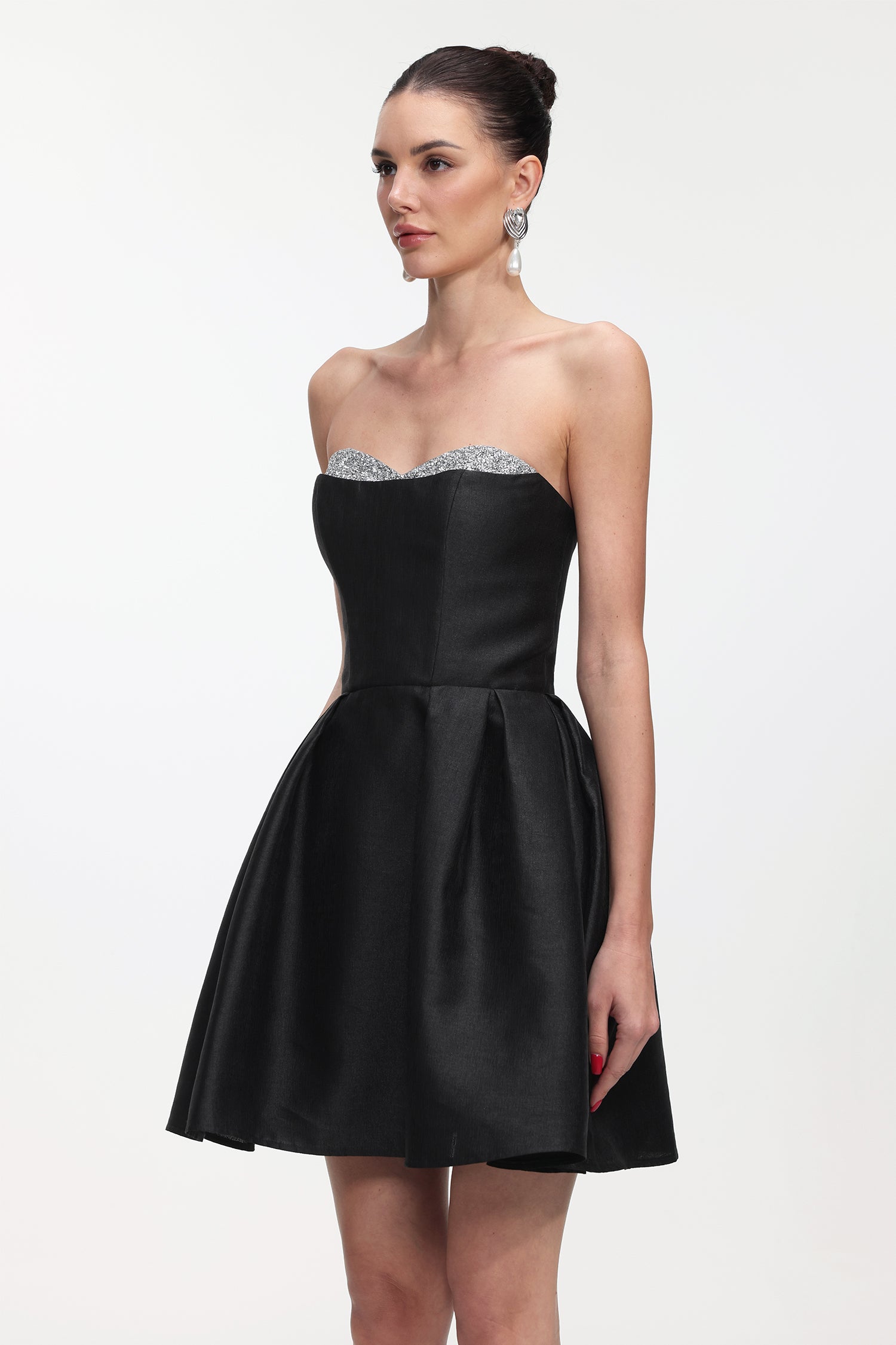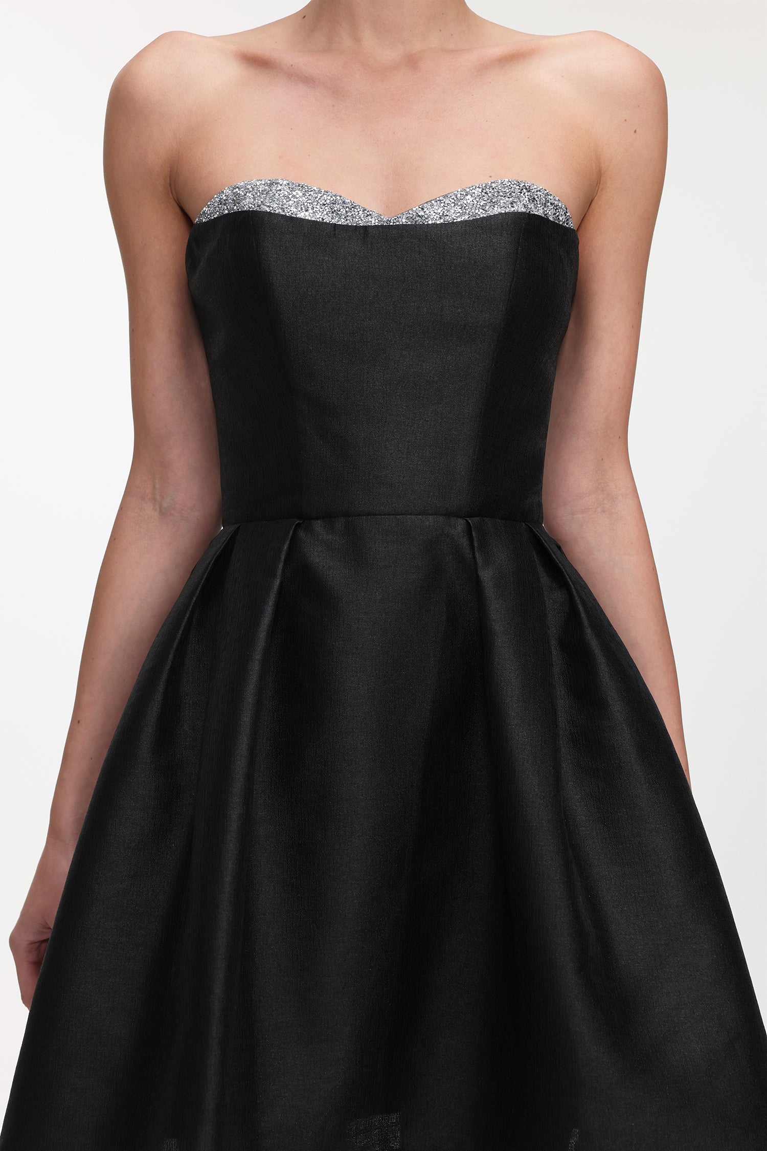 Quinta Classic Tailored Strapless Glitter Woven Mini Dress