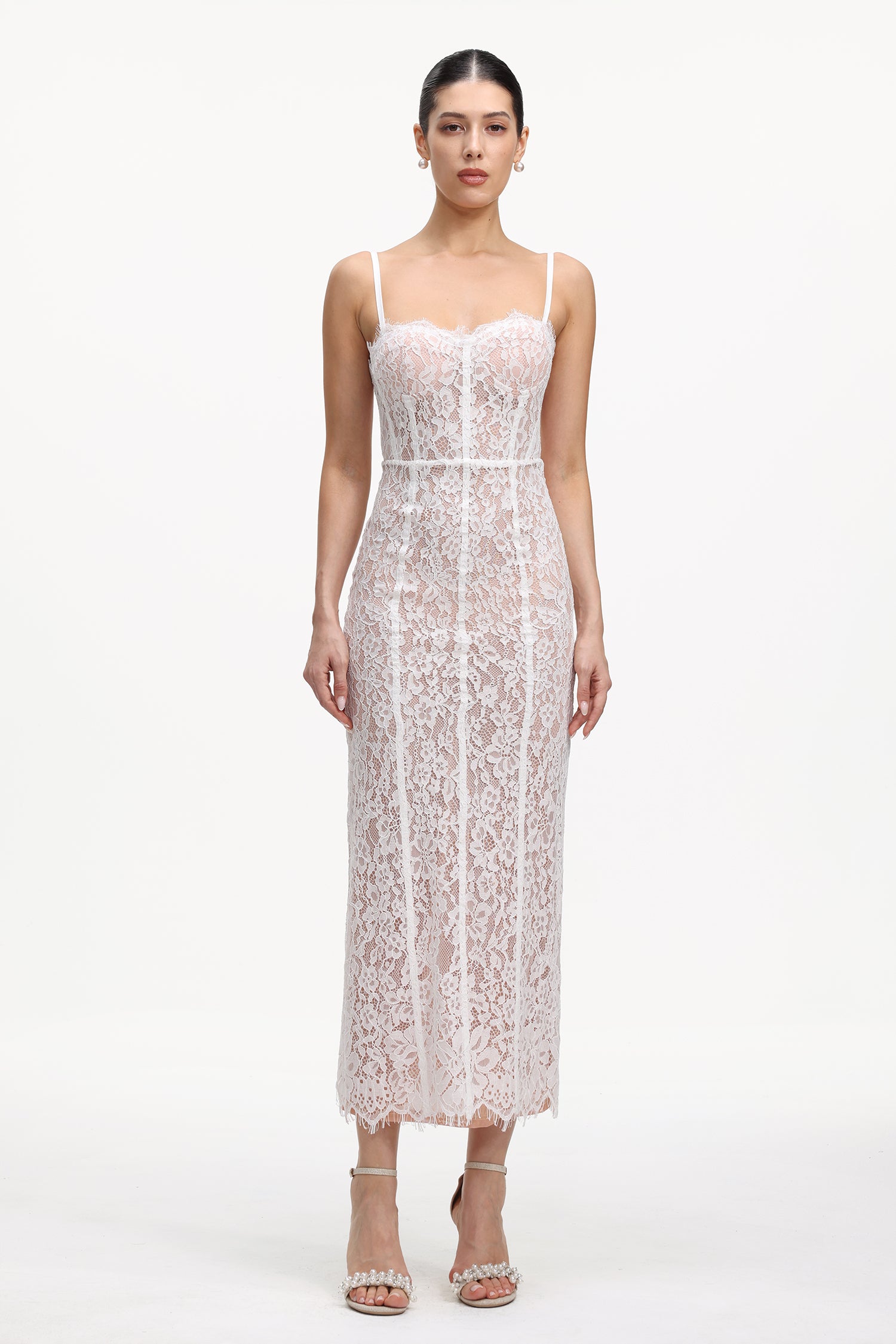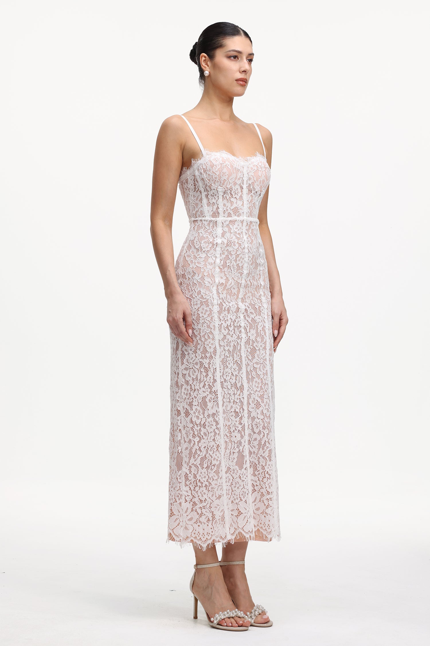 Trosy Romantic Cinched Waist Corset Lace Maxi Dress