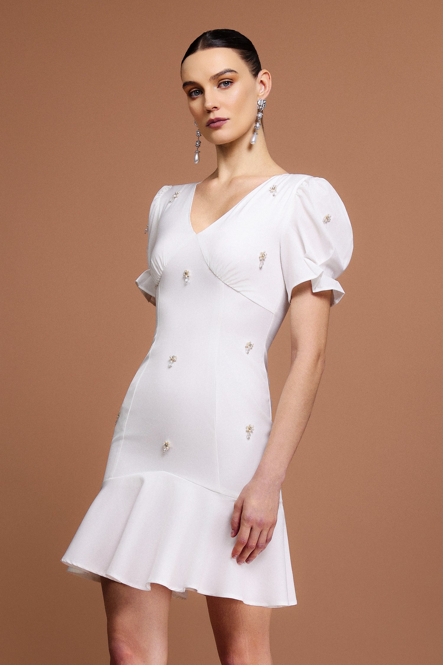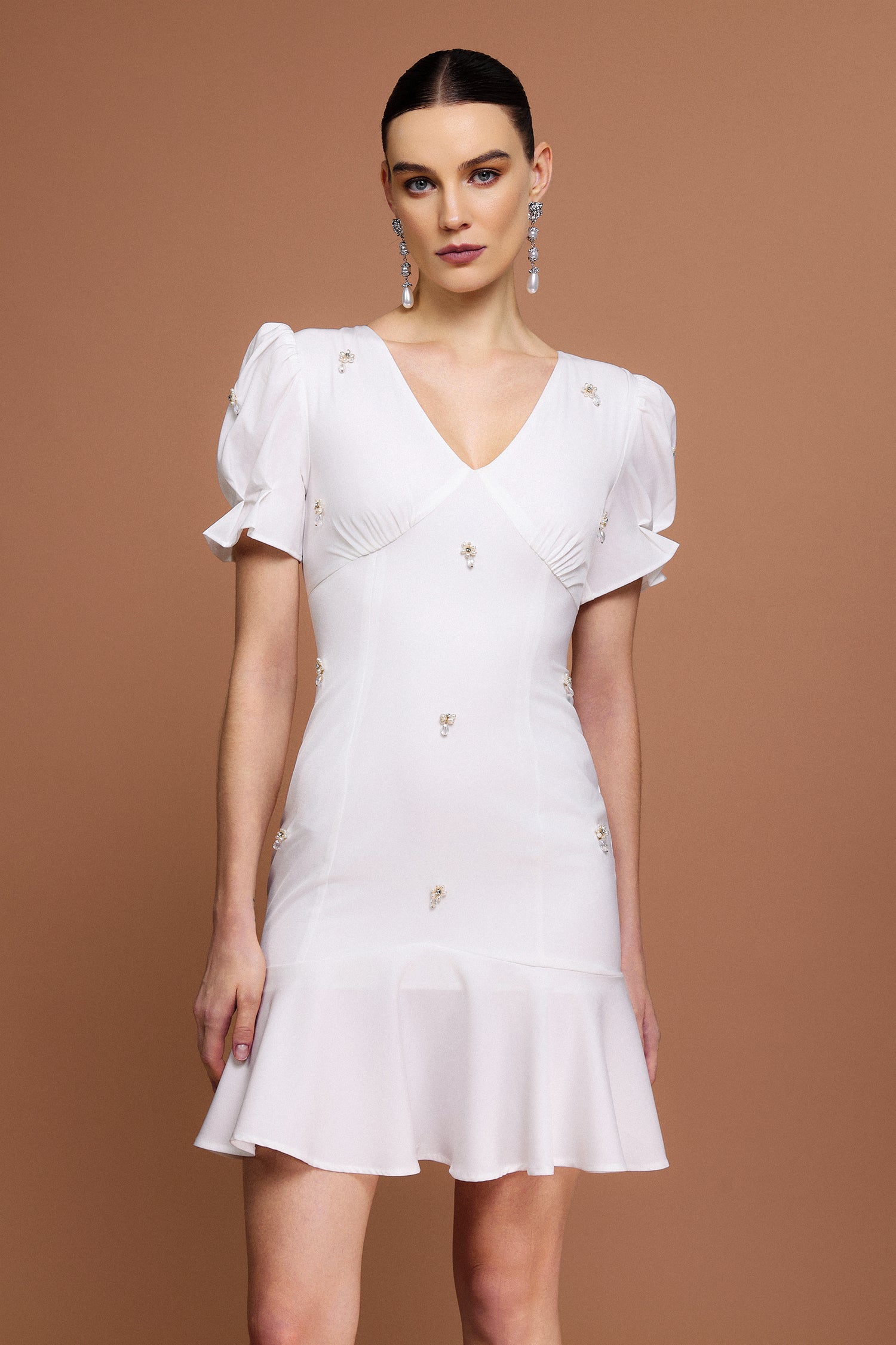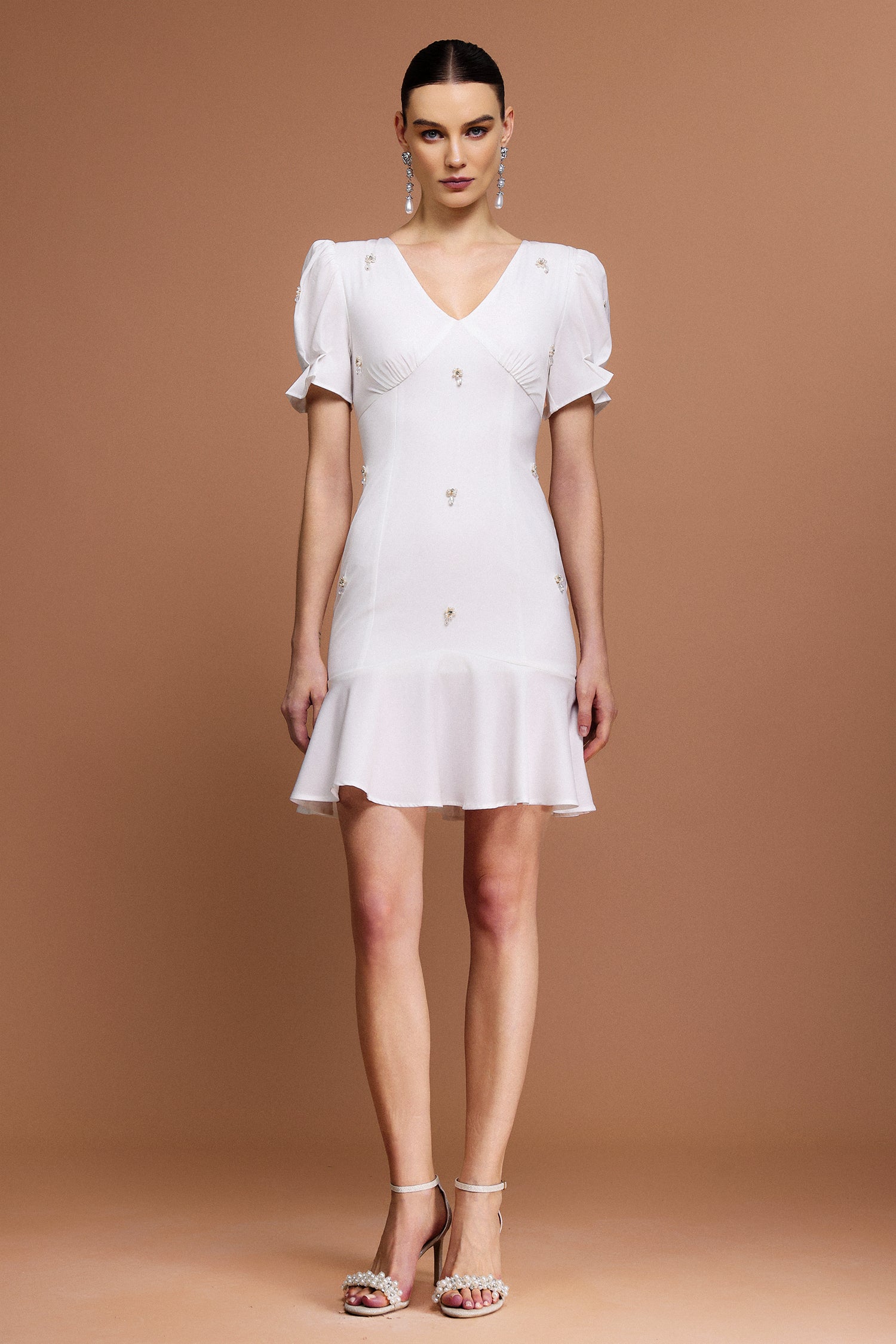 Subra V-Neck Short Sleeves Diamond Mini Dress