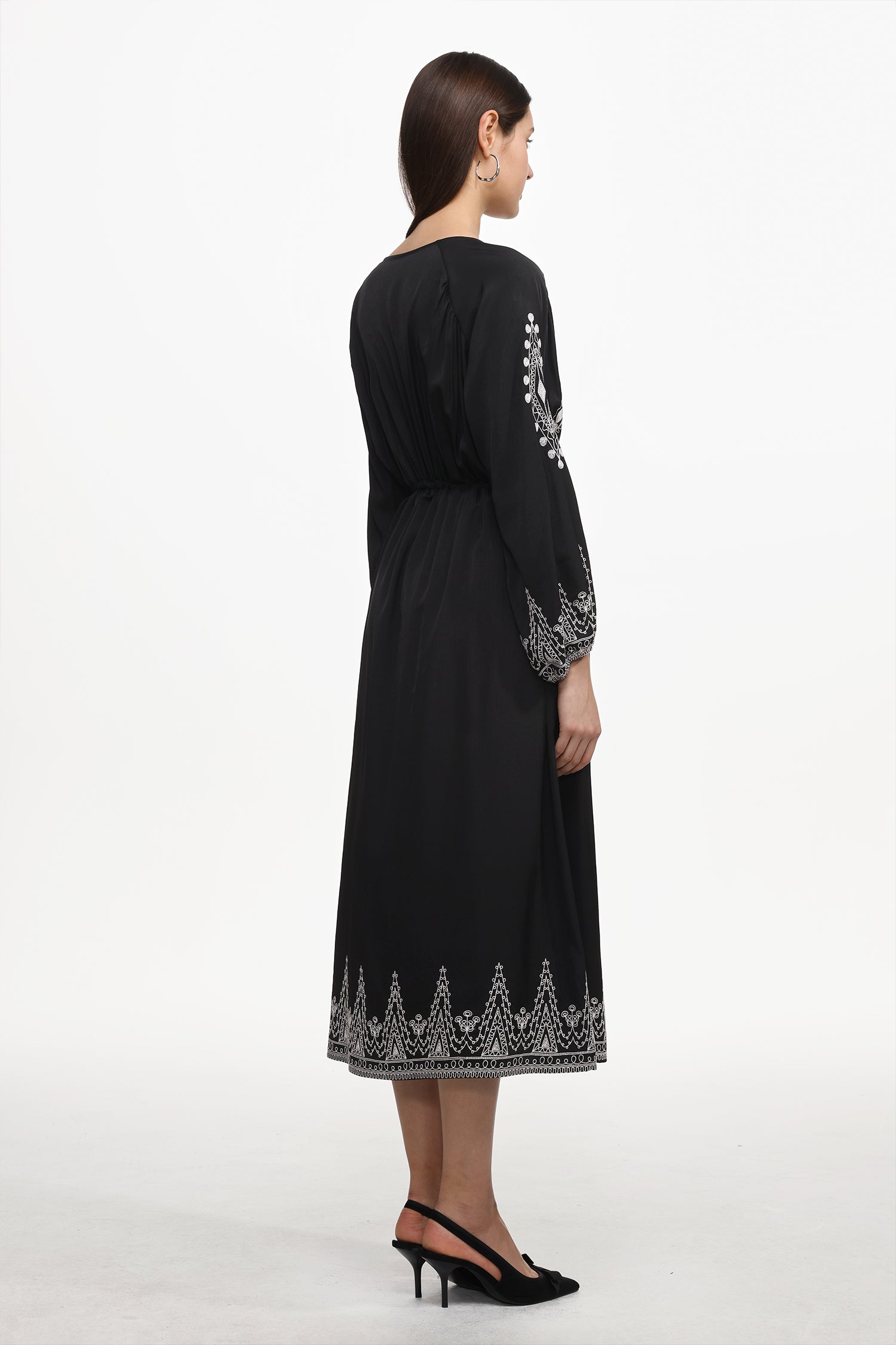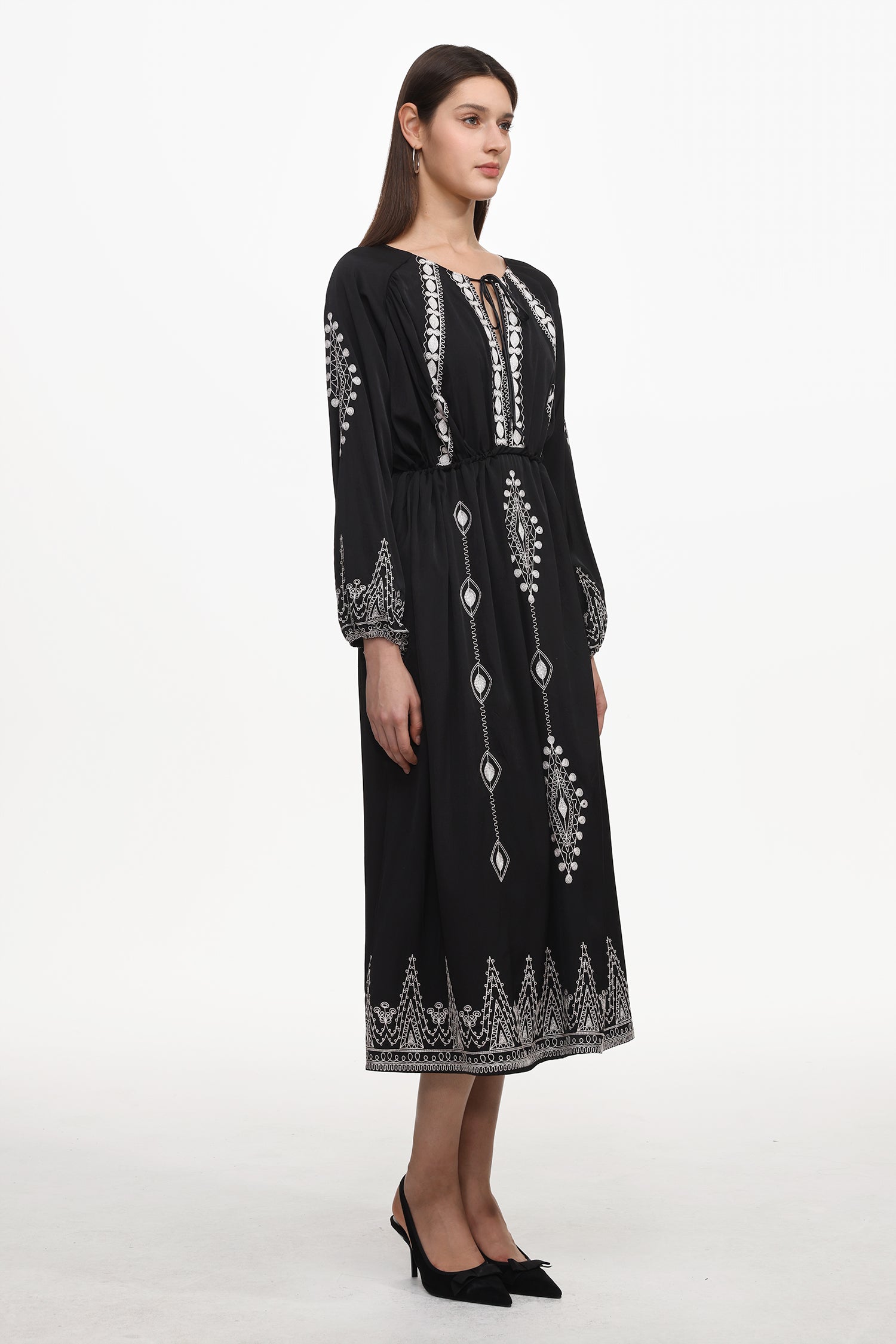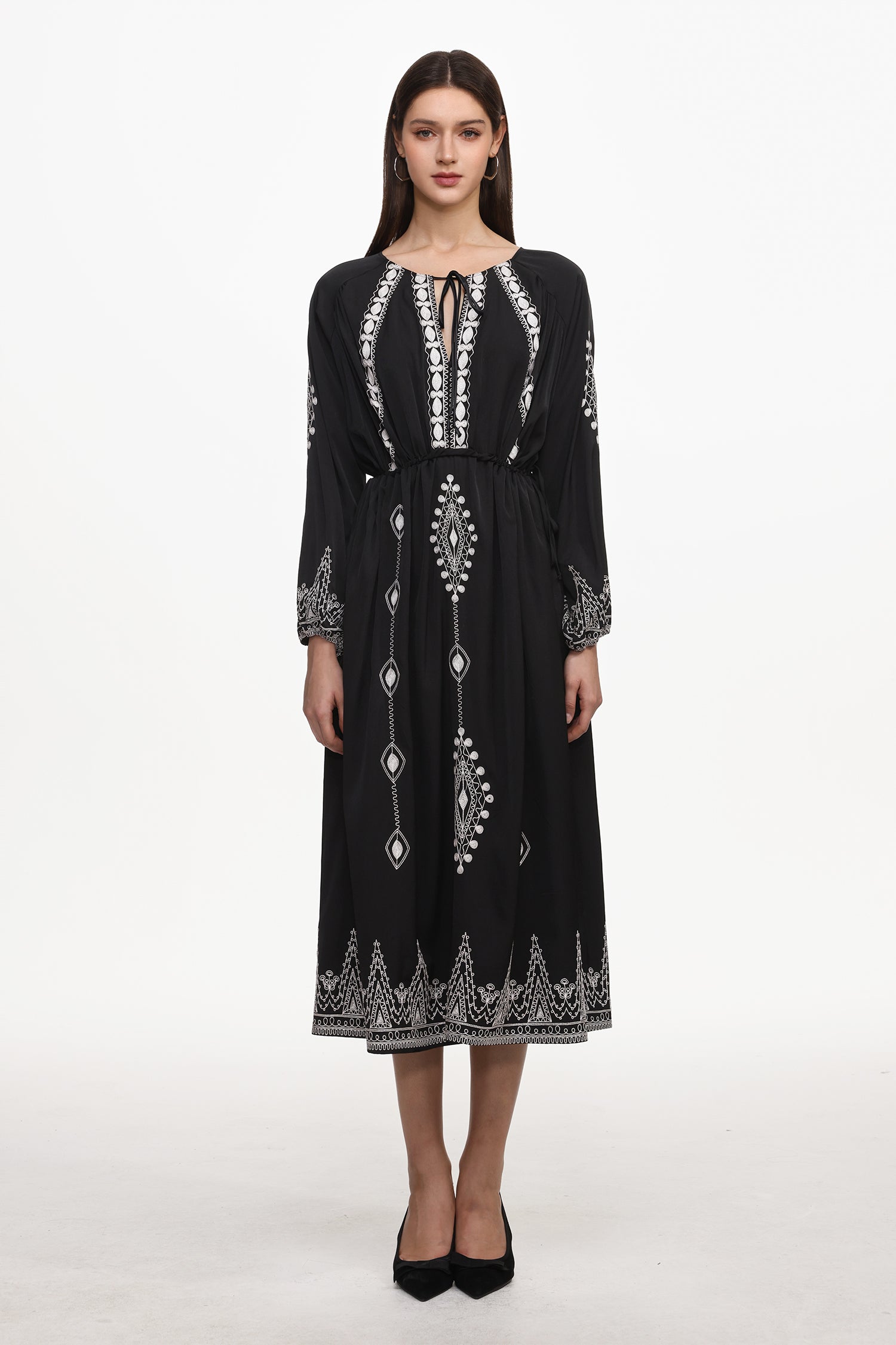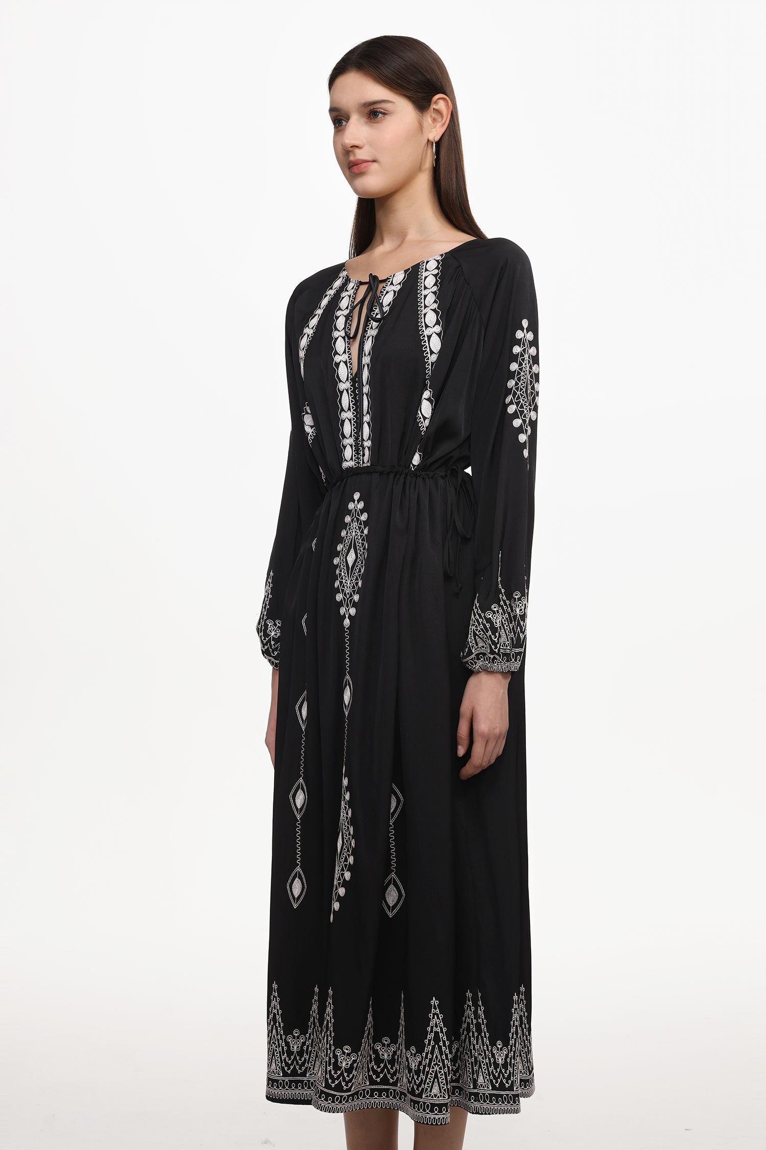 Wedasa Resort Flowy Round Neck Long Sleeve Print Woven Maxi Dress