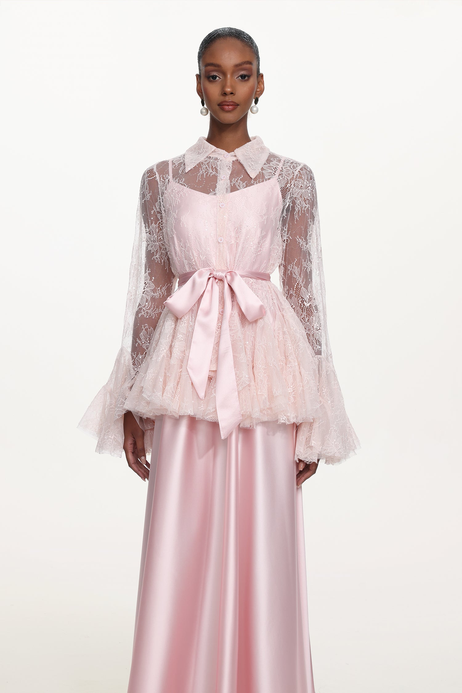 The lace has a delicate structure, so it is recommended to wash it gently and avoid pulling or snagging. It is made of smooth satin fabric, which has a fine texture but is prone to wrinkling and retaining ironing marks. It is advisable to hand wash it gently or dry clean it, and avoid high-temperature ironing and friction with rough surfaces to maintain its luster.
