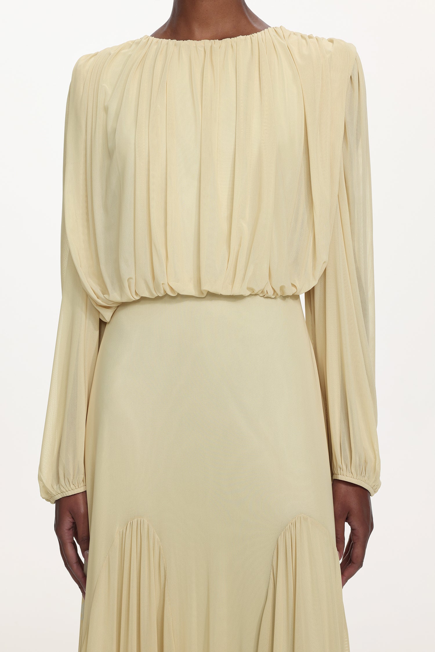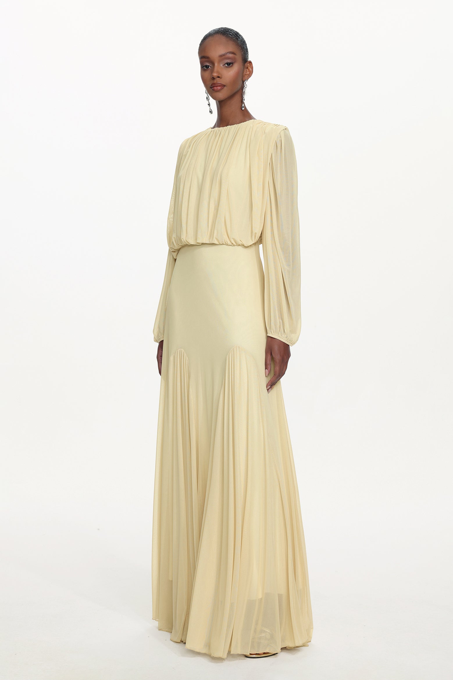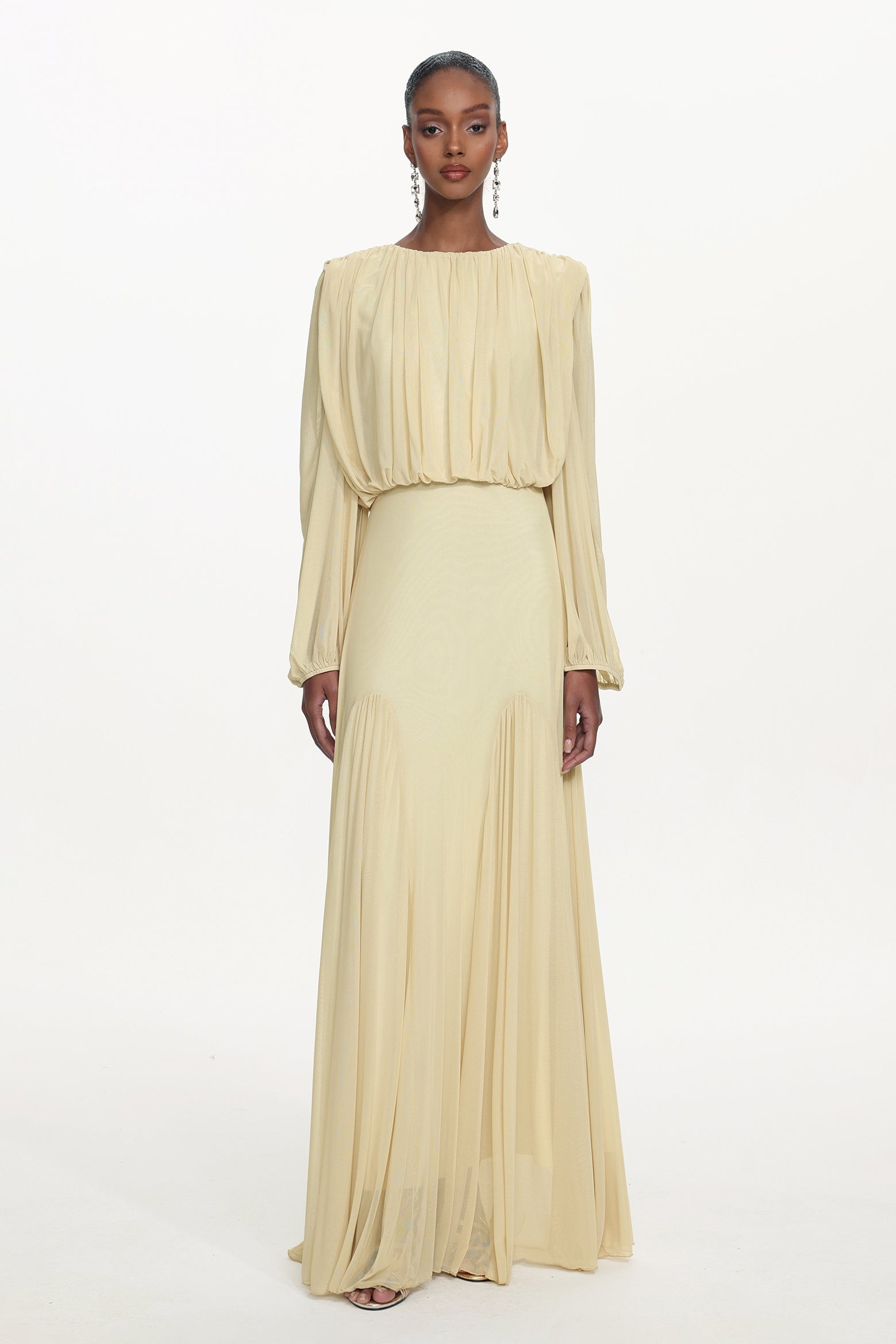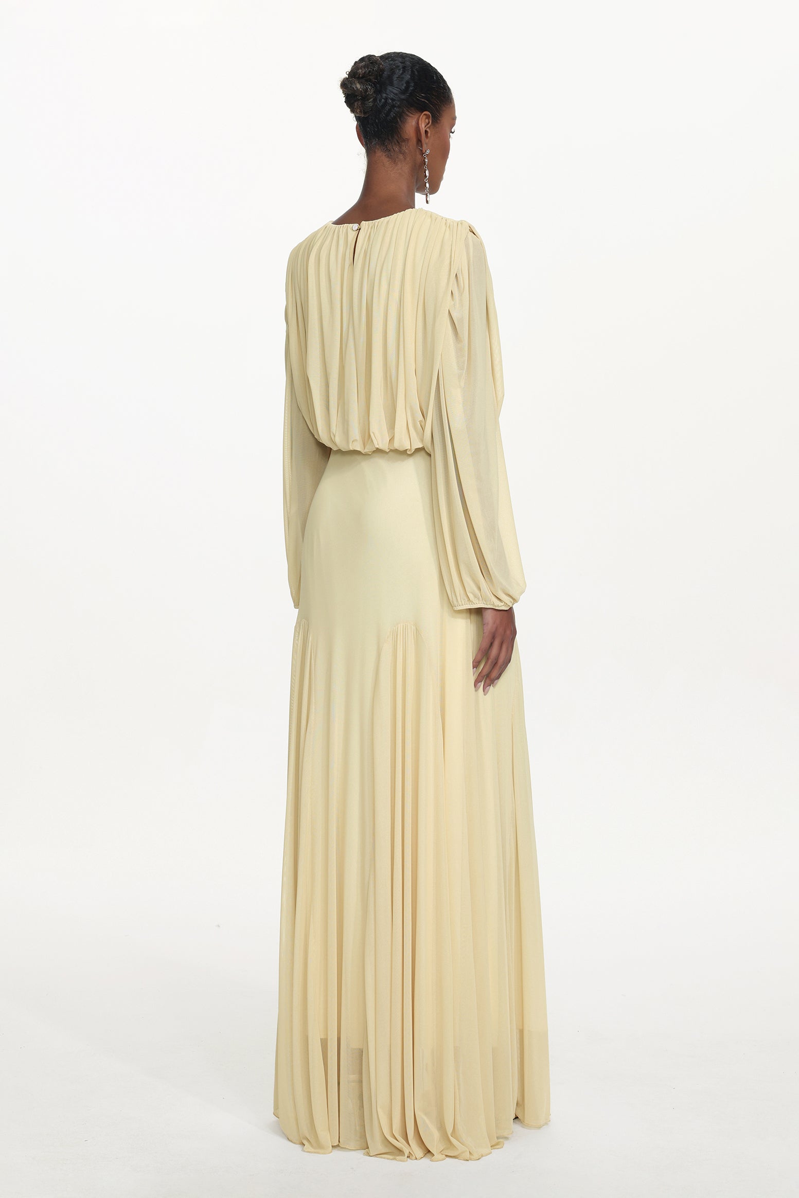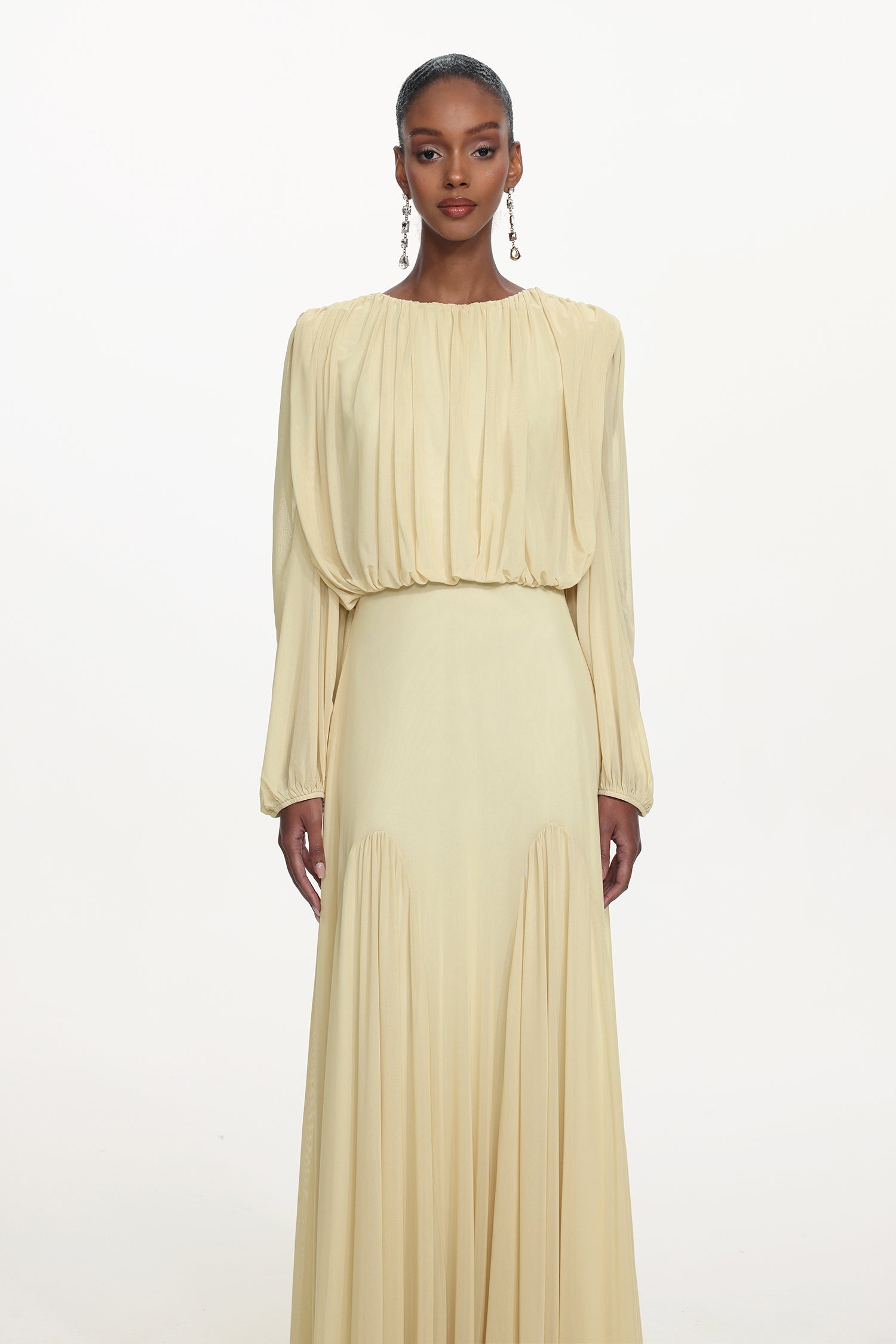 Zico Elegant Flowy Long Sleeve Ruched Knit Maxi Dress
