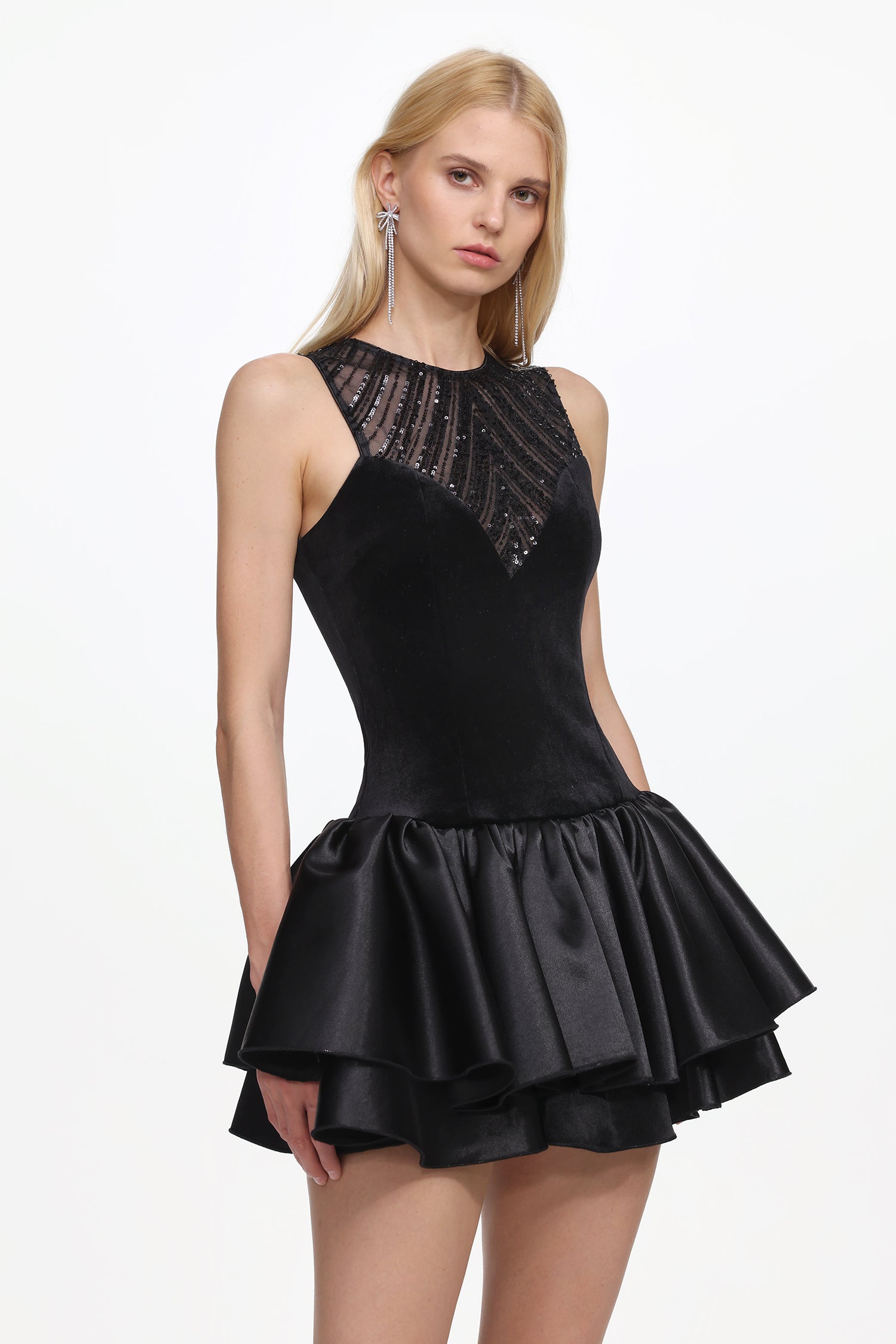 Sareza Chic Contour Deep V Sleeveless Sequin Mini Dress