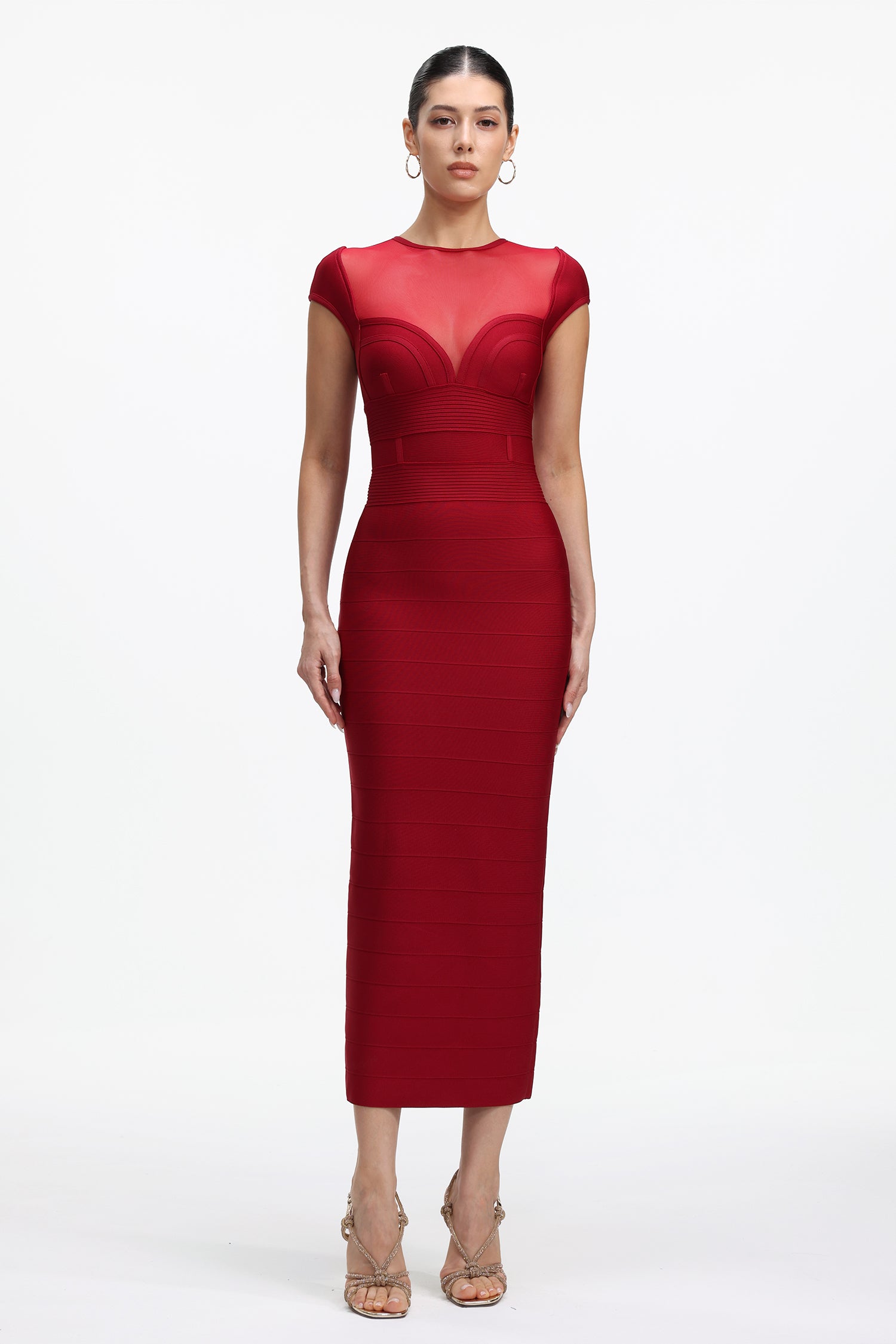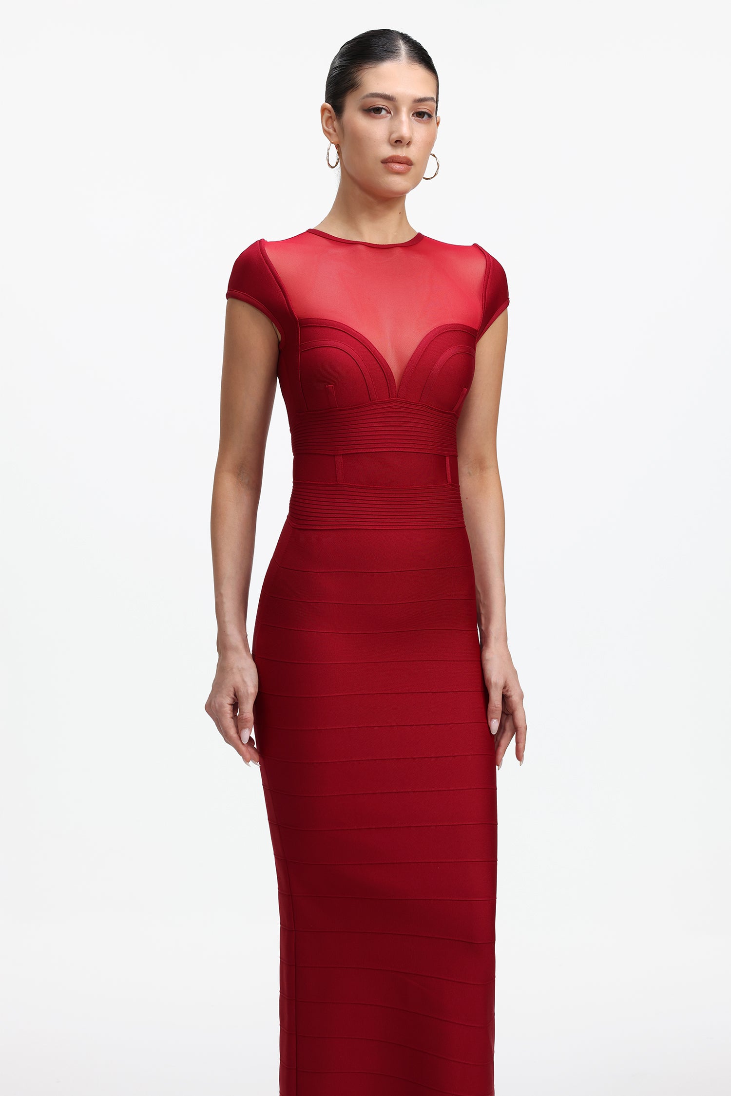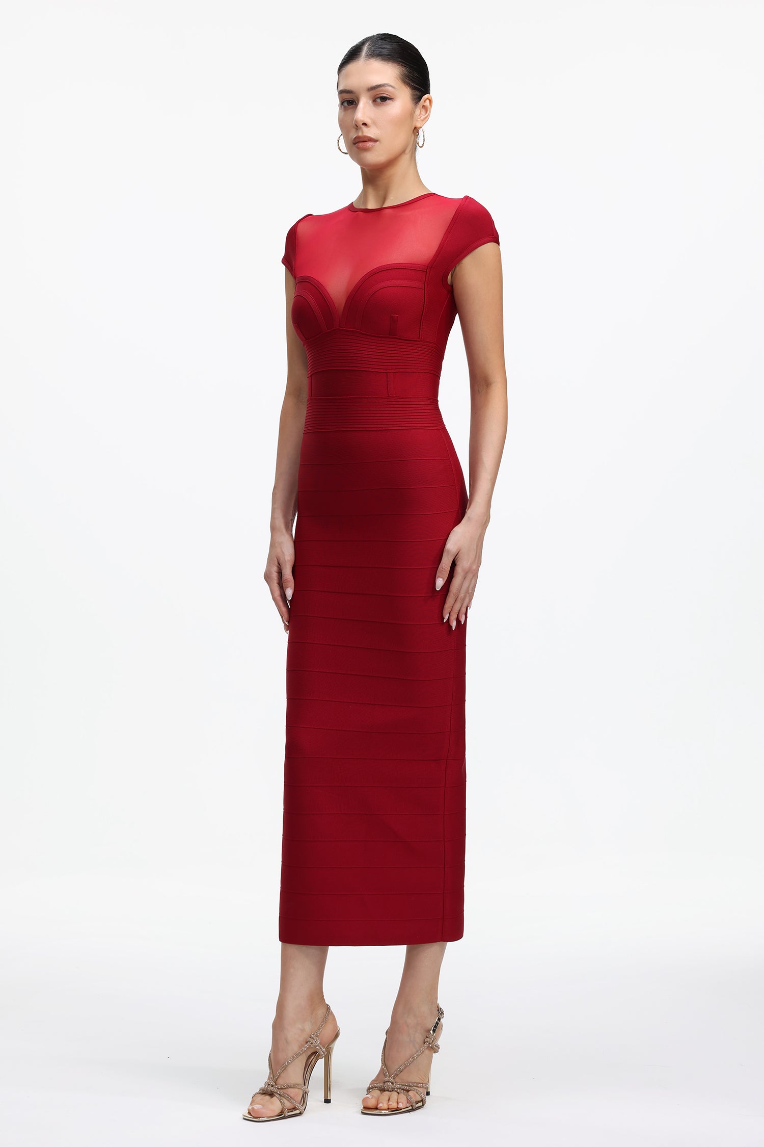 Sloan Romantic Contour Short Sleeve Sheer Bandage Maxi Dress
