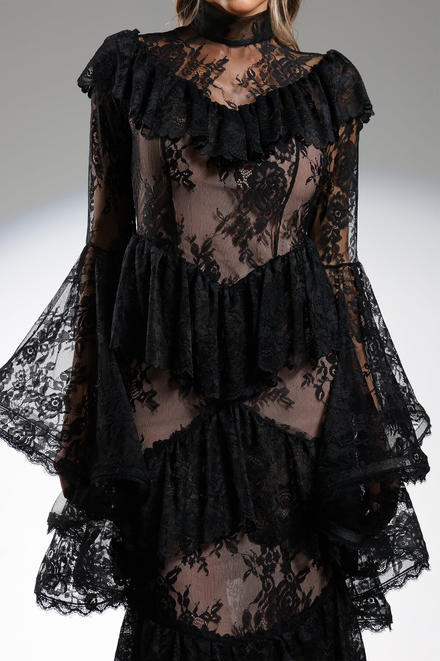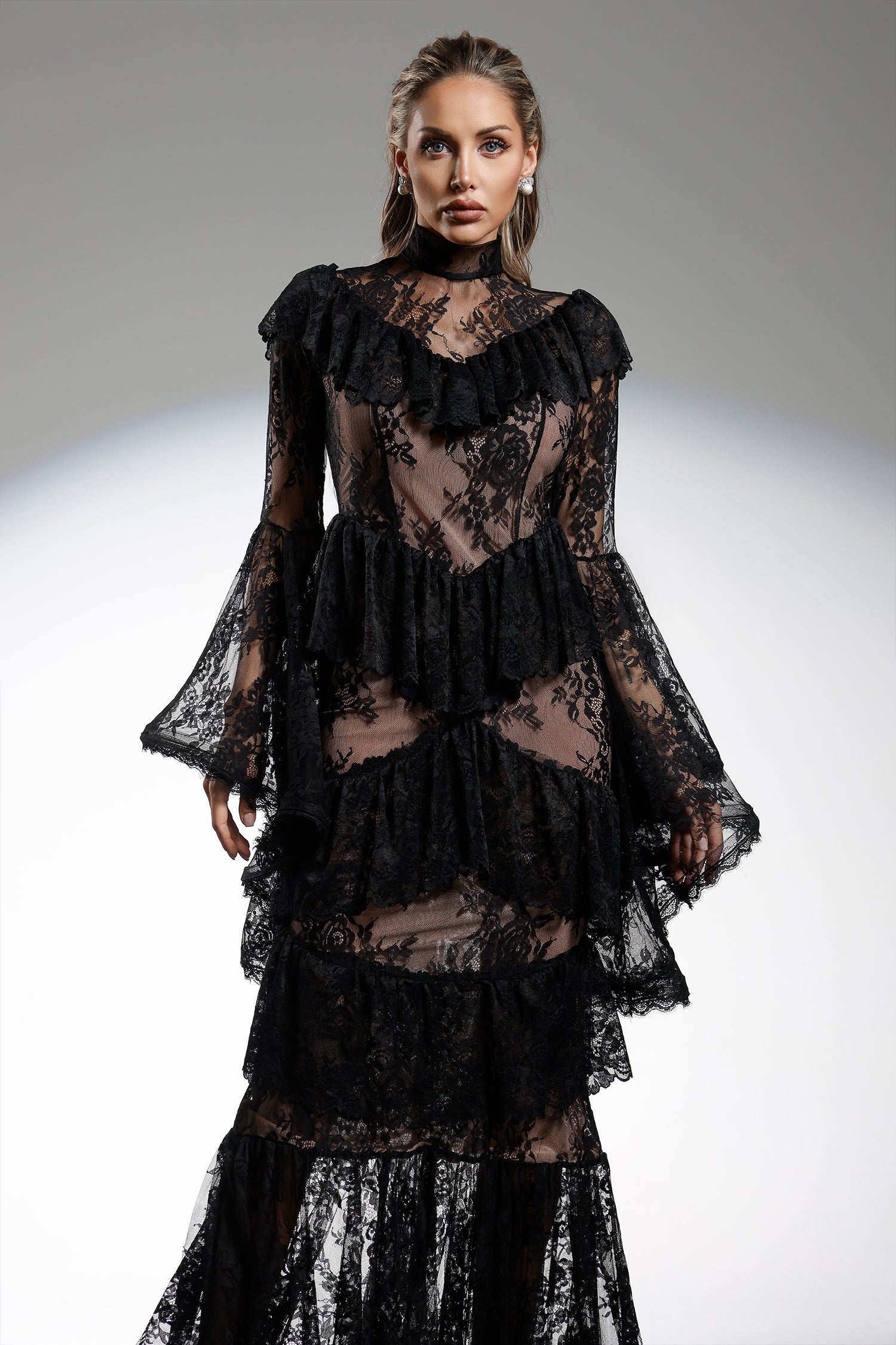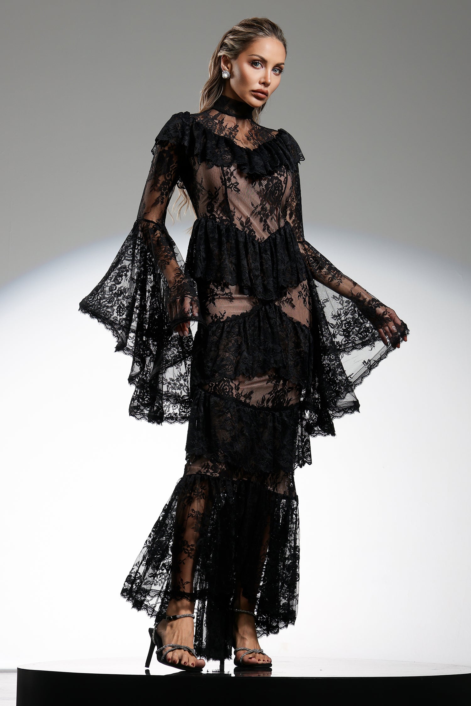 Malvina Long Sleeves Flounce Lace Maxi Dress