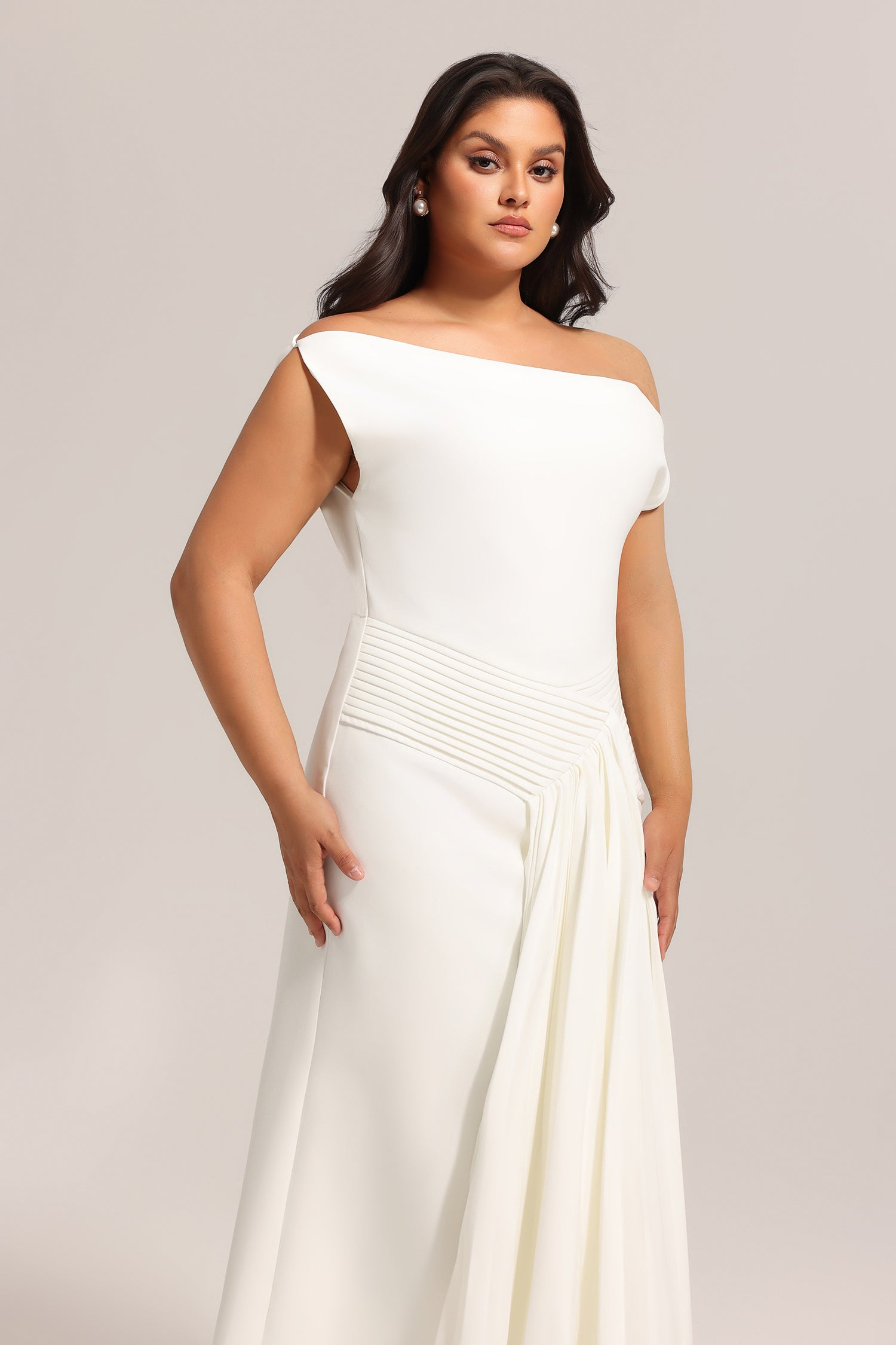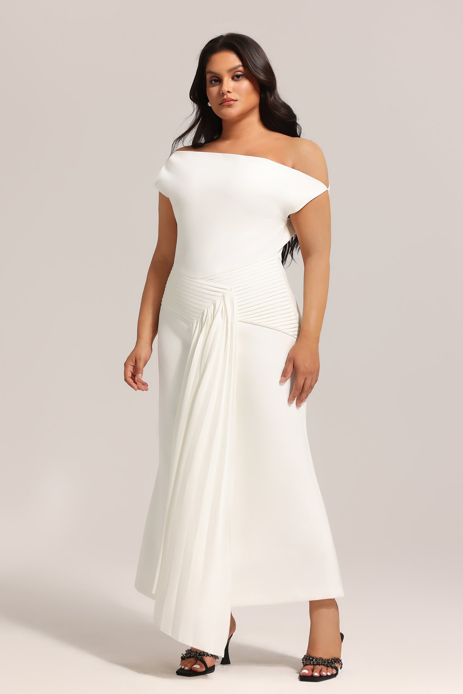 Paulina Oblique Shoulder Sleeveless Folds Midi Dress