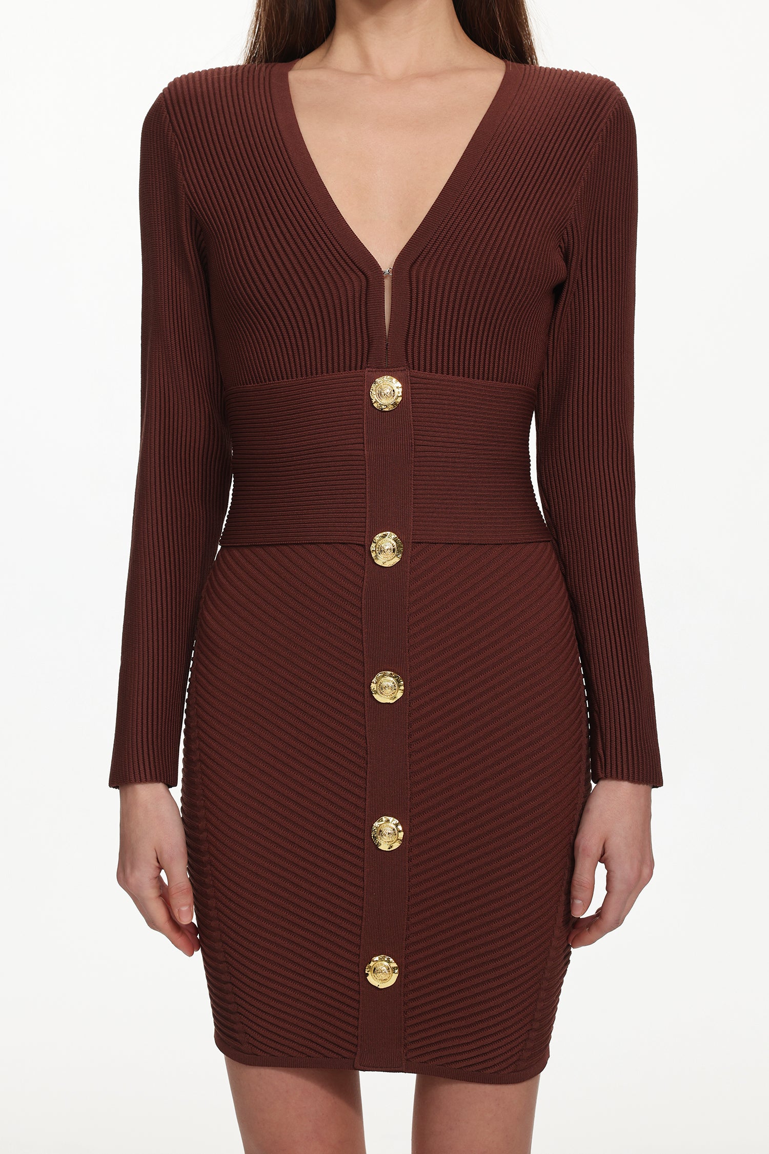 The knitted fabric has high elasticity. It should be stored flat and folded, not hung, to prevent the garment from stretching out of shape. It is recommended to wash it gently and avoid friction or snagging. The skirt is decorated with metal buttons. Please take care to protect the accessories before wearing and washing, and avoid impact or high-temperature treatment.