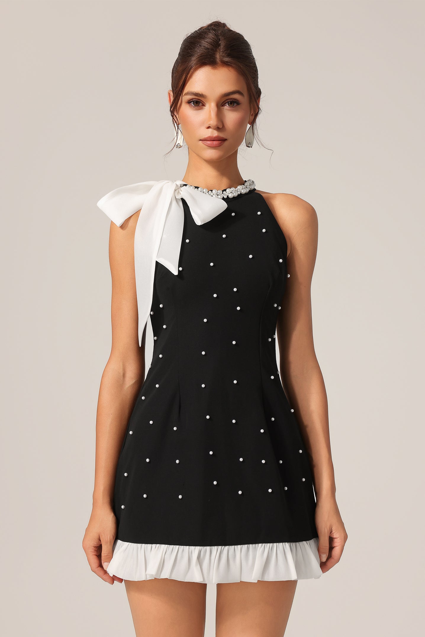 Gani Sleeveless Bowknot Pearl Mini Dress