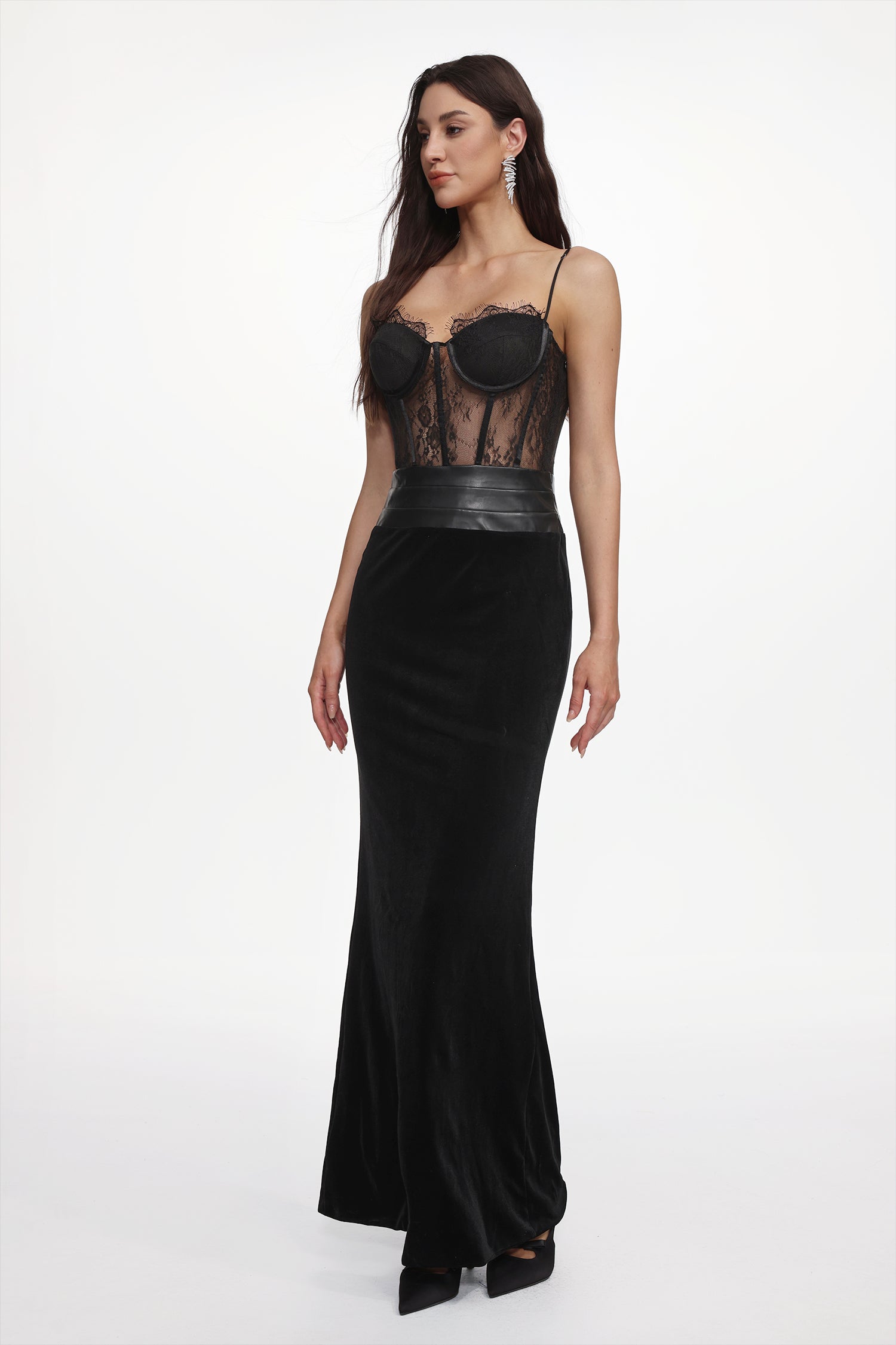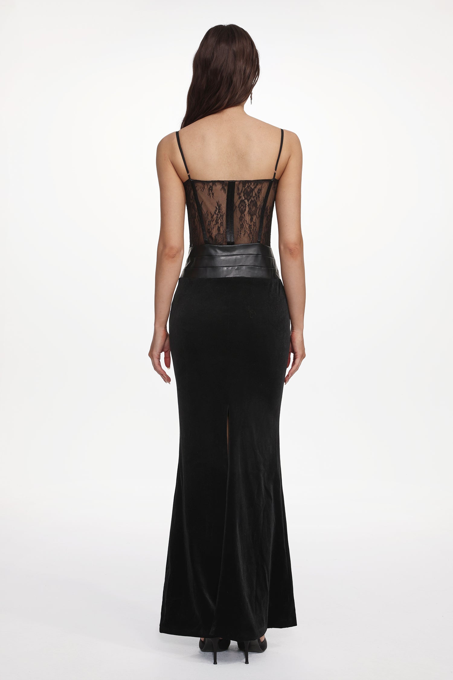 Parry Sexy Contour Sleeveless Lace Velvet Maxi Dress