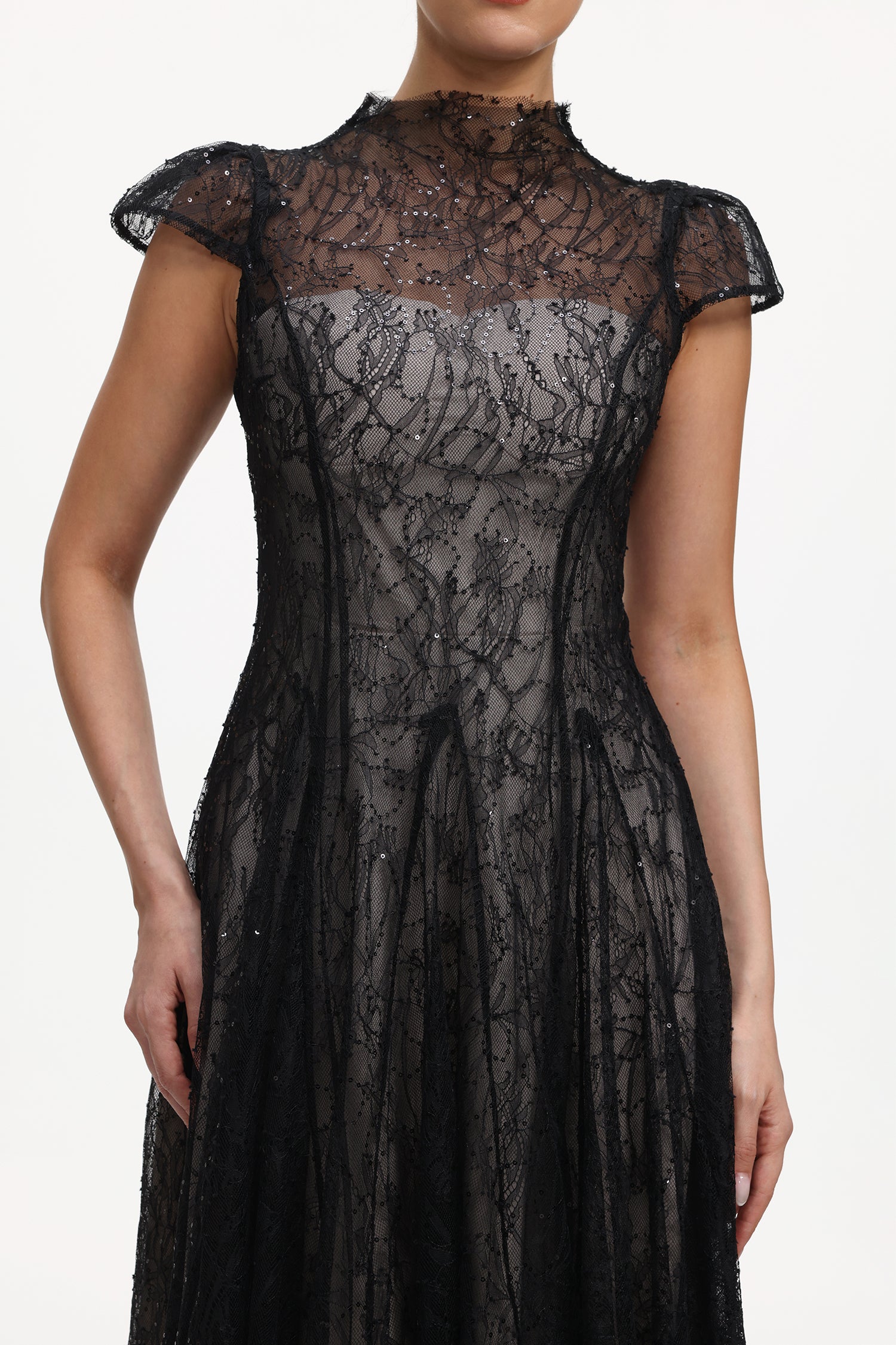 Vanina Elegant Flowy Sequin Lace Maxi Dress