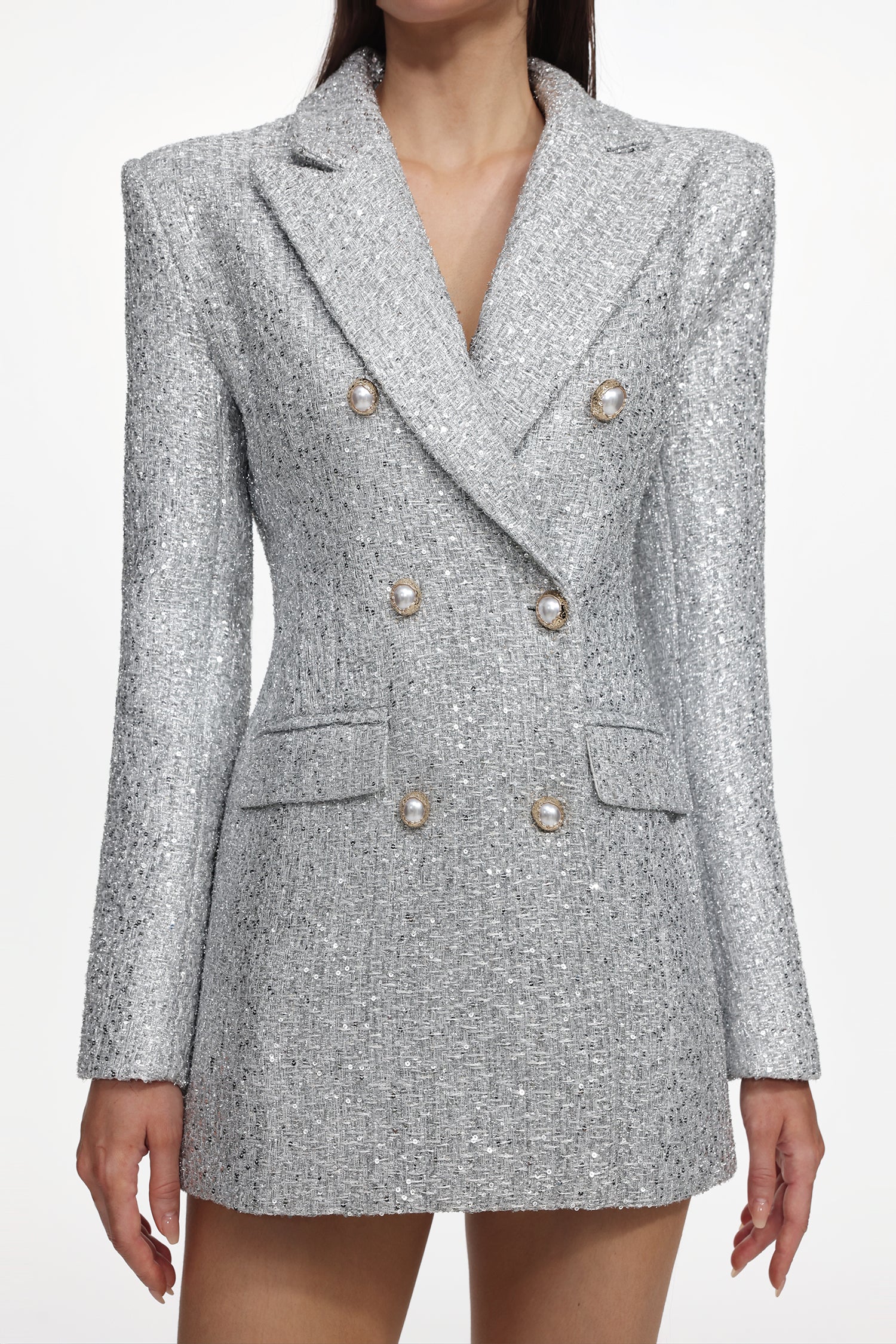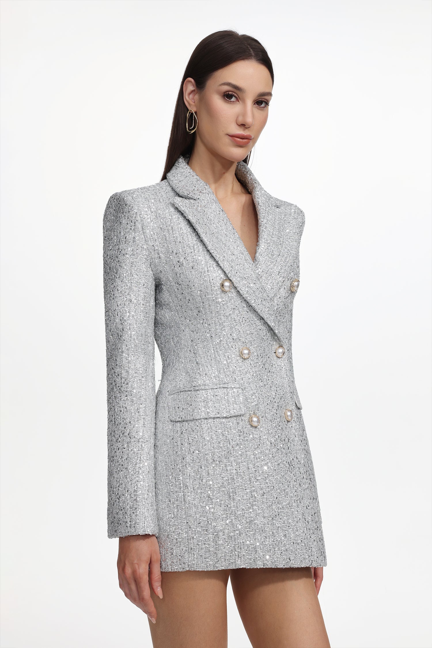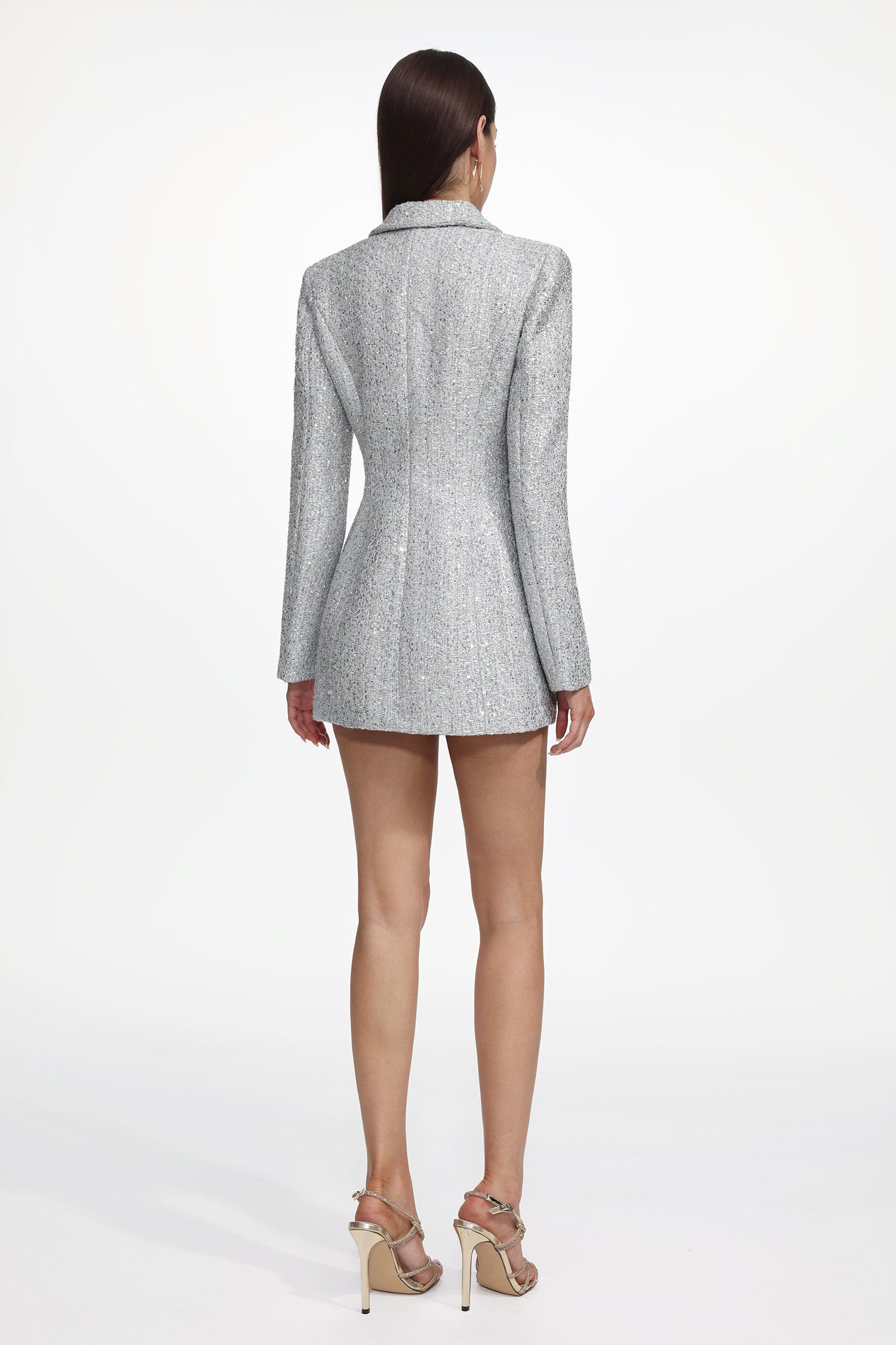 Tereza Glamorous Tailored Long Sleeve Tweed Gray Blazer Dress