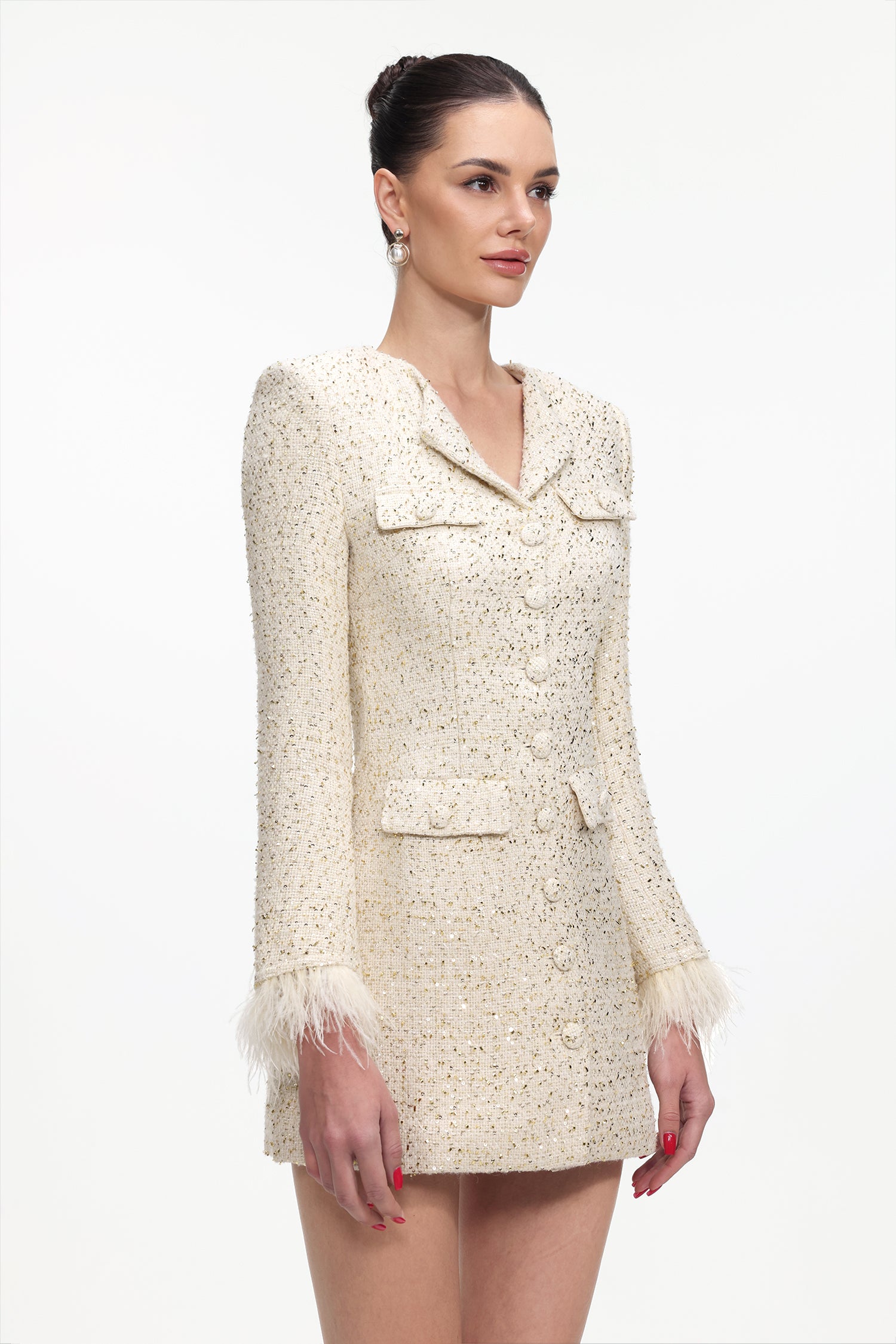 Zaria Romantic Tailored Long Sleeve Tweed Blazer Dress