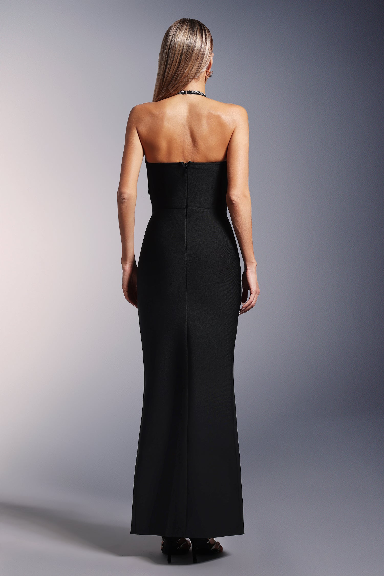 Hattie Halter High Slit Diamond Bandage Maxi Dress