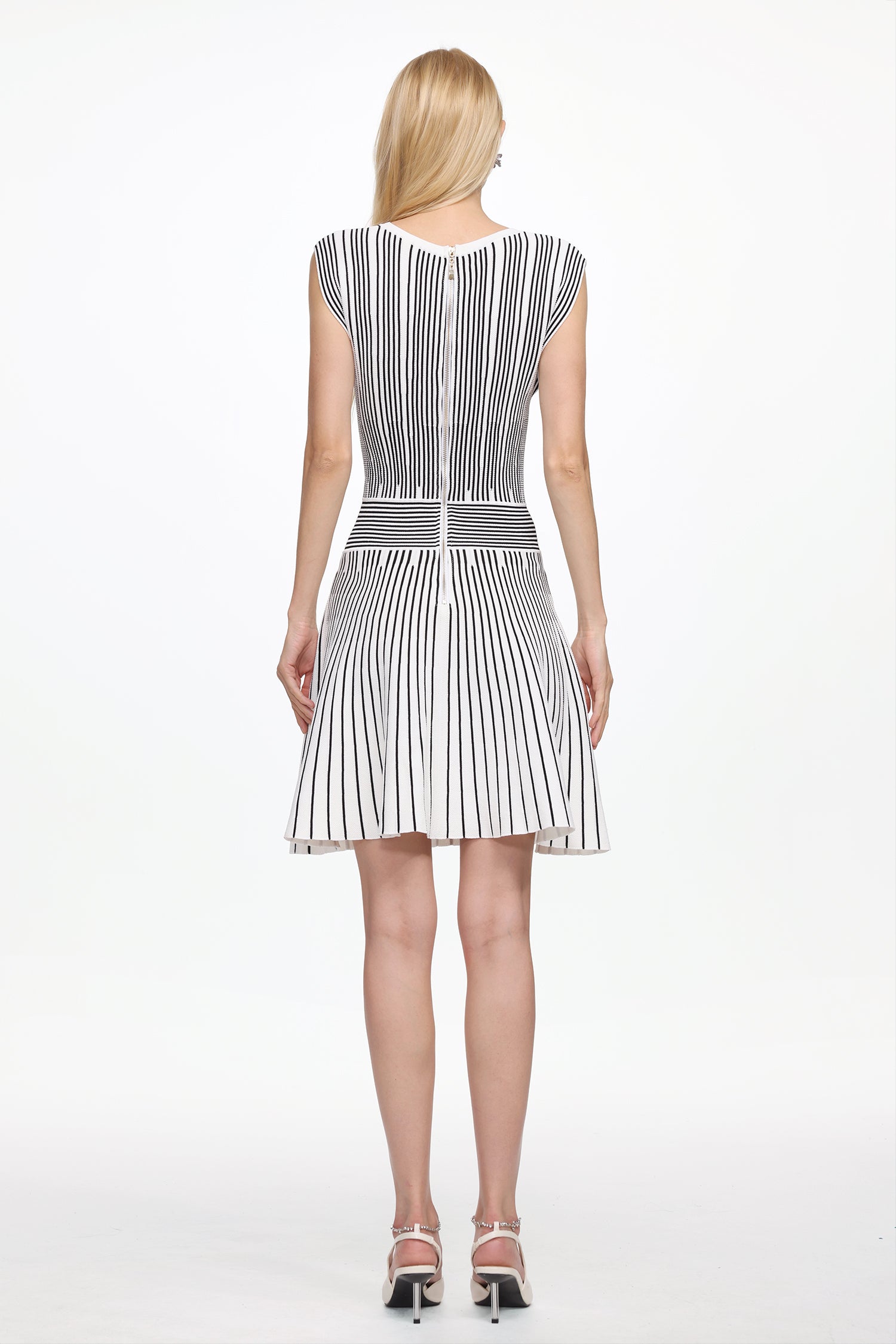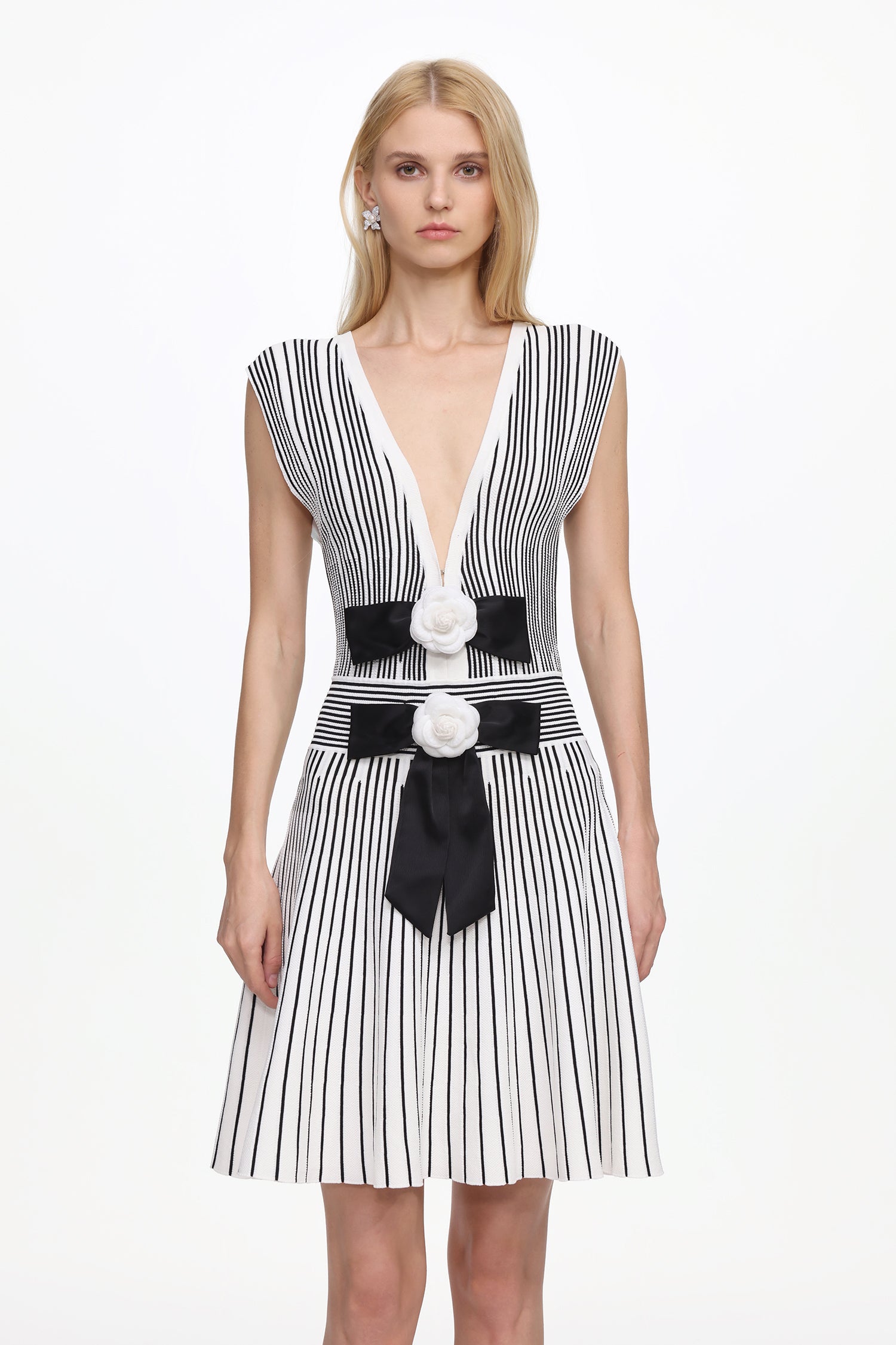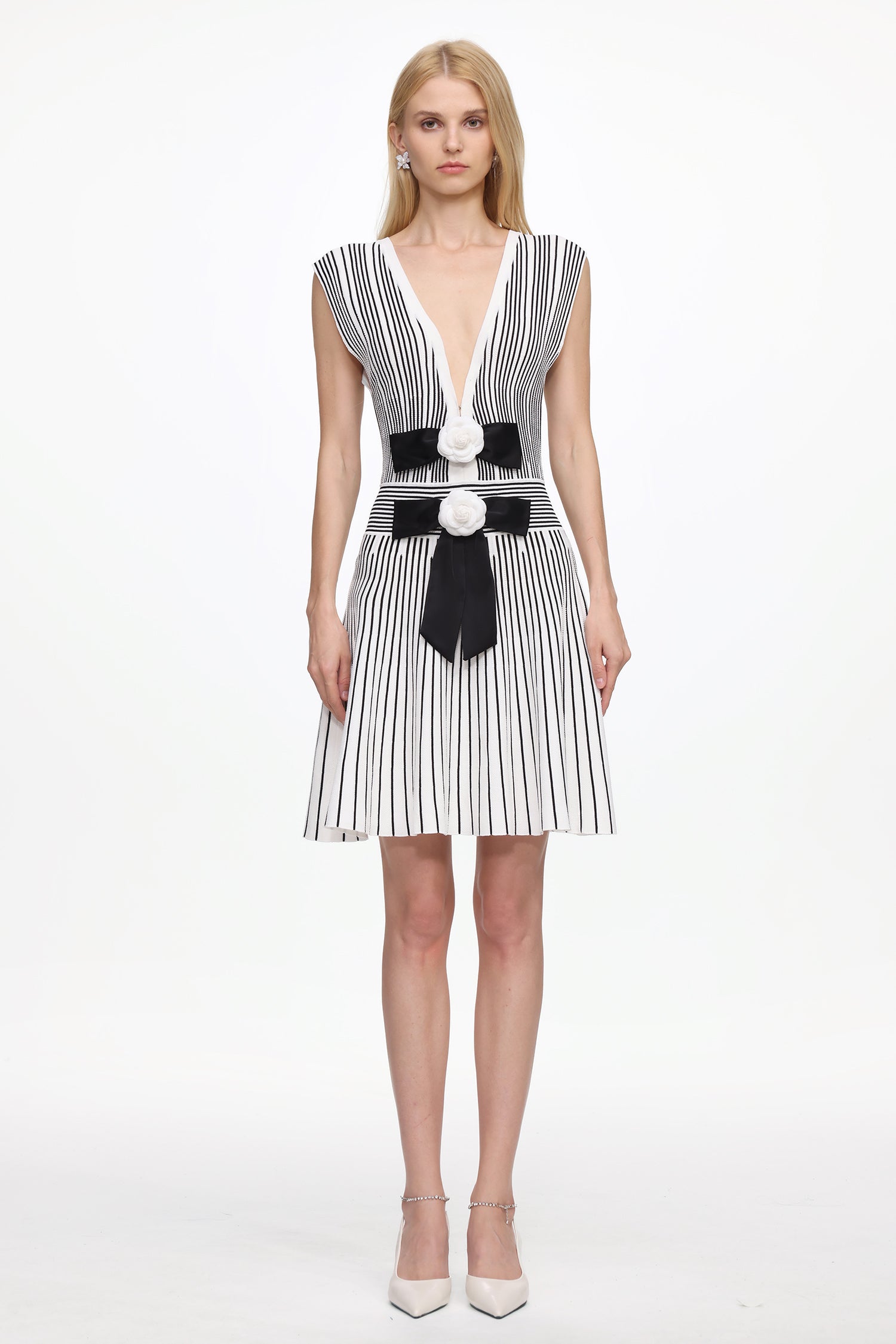 Romantic Contour Sleeveless Deep V Floral Stripe Knit Mini Dress