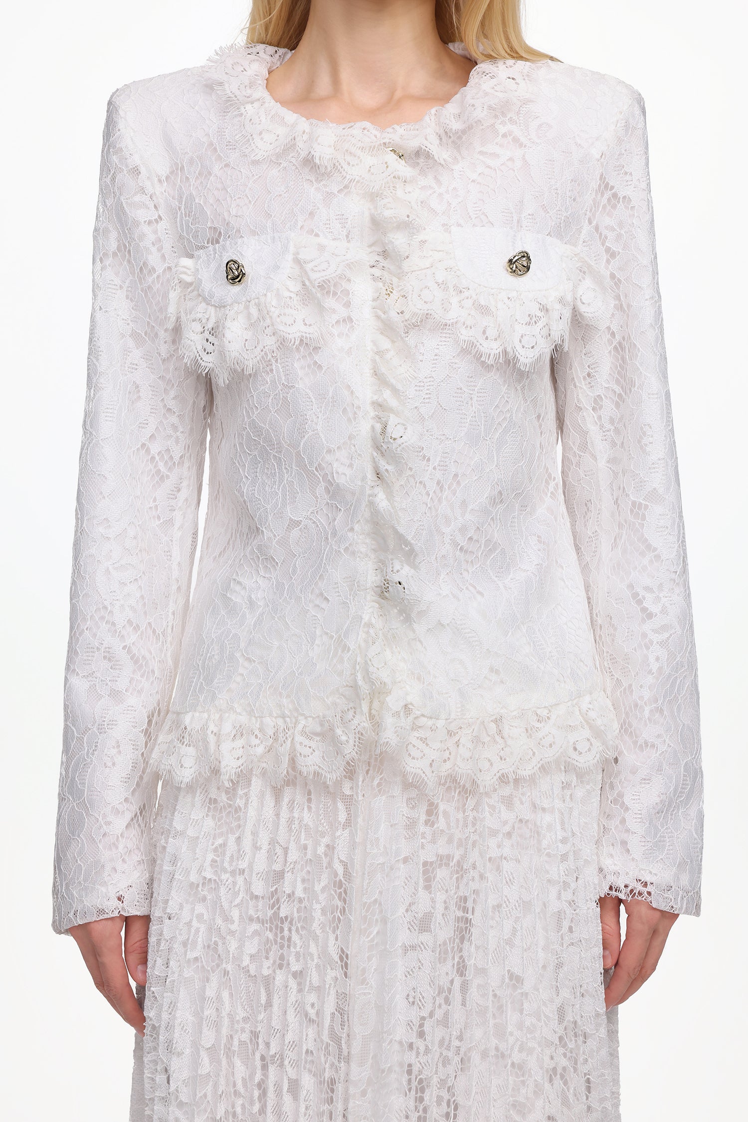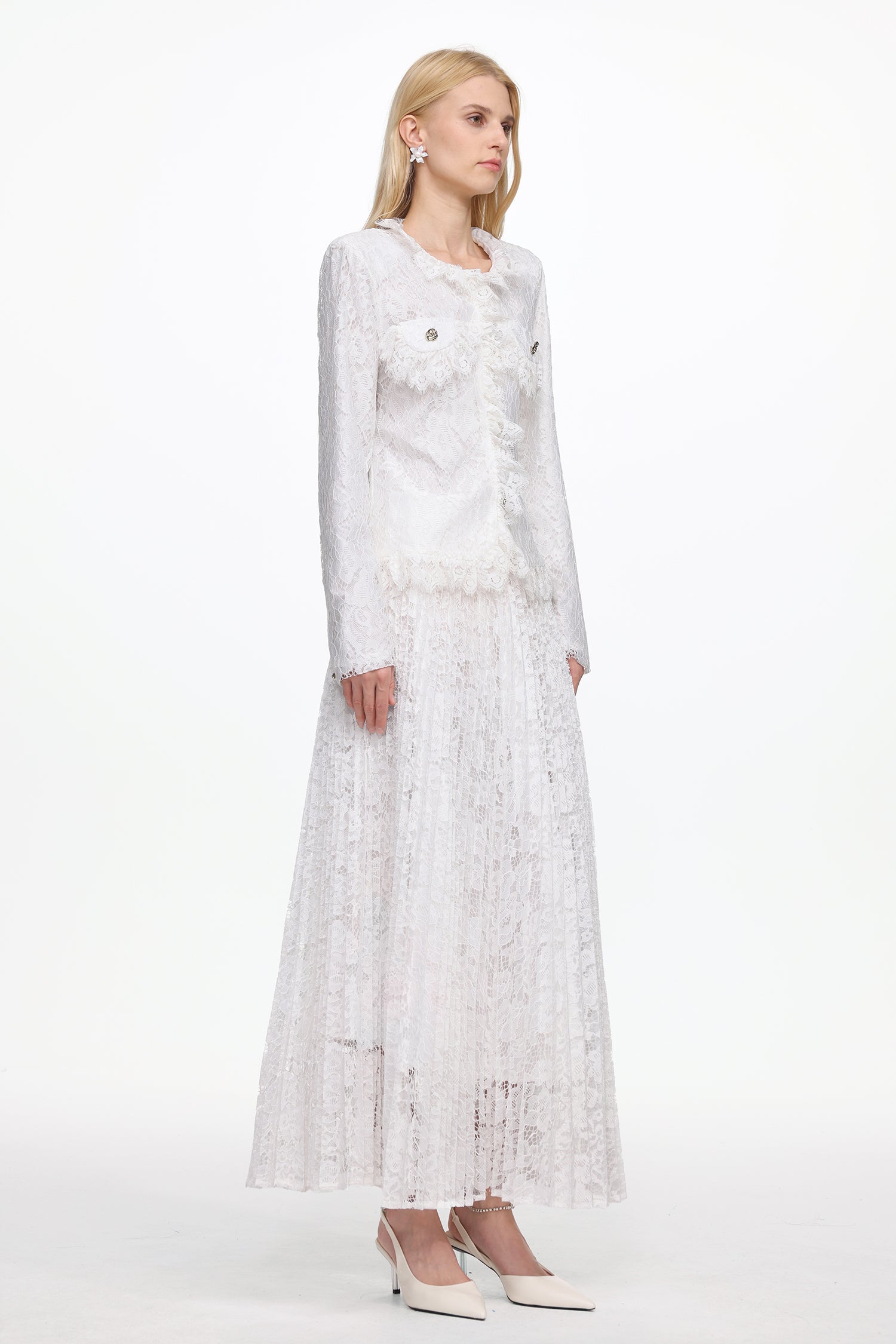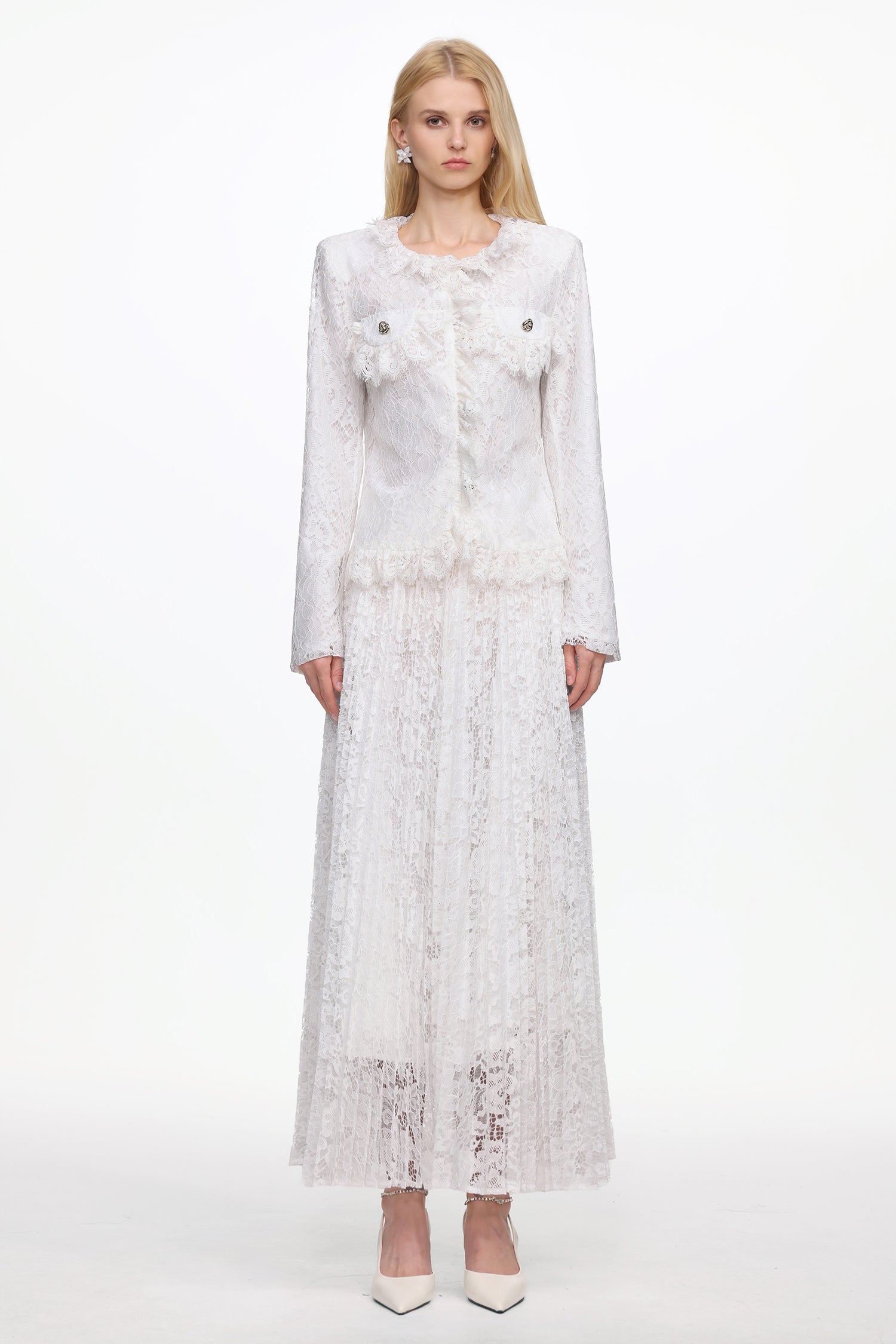 Saga Romantic Tailored Long Sleeve Lace Jacket and Skirt Set