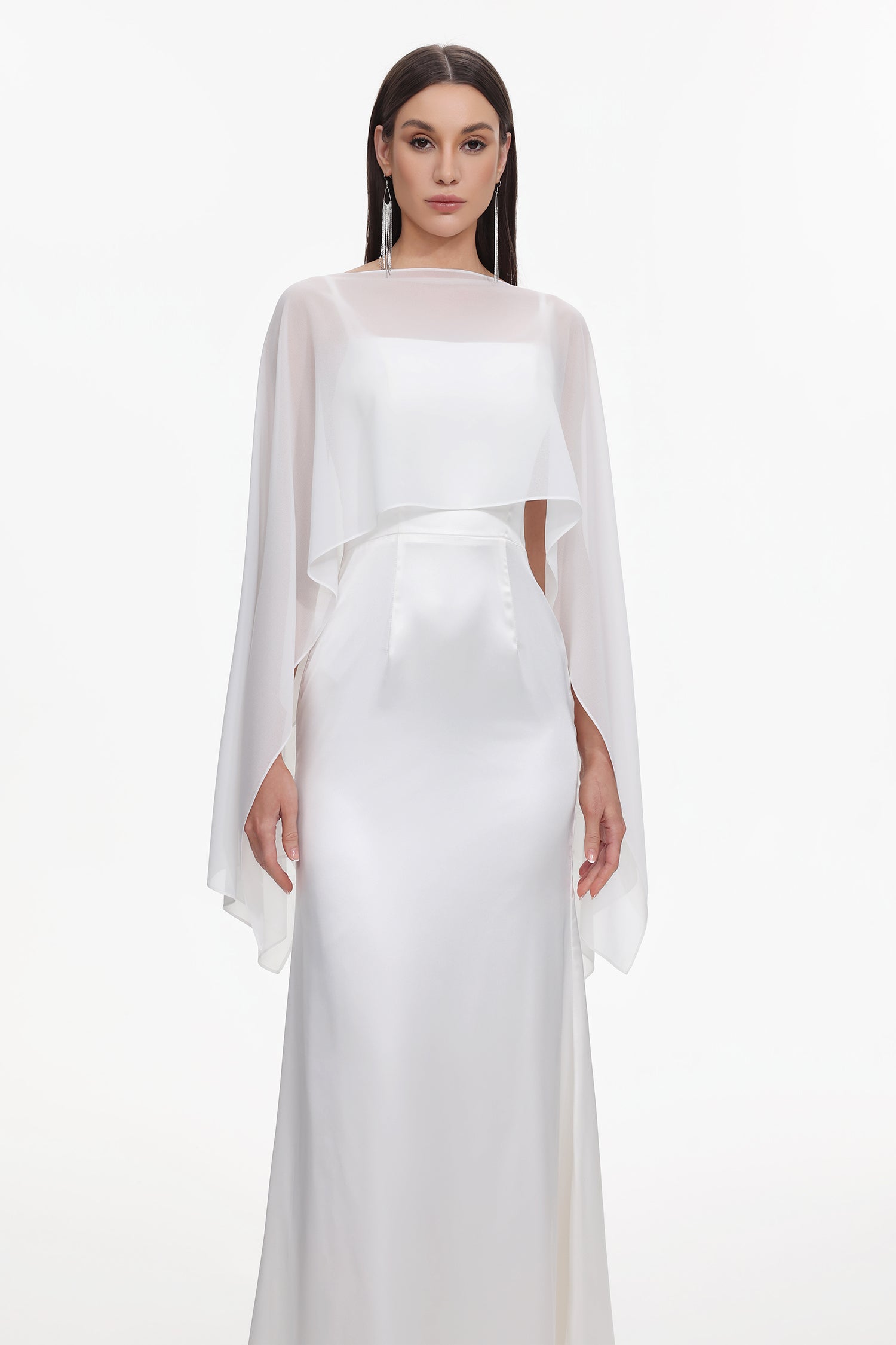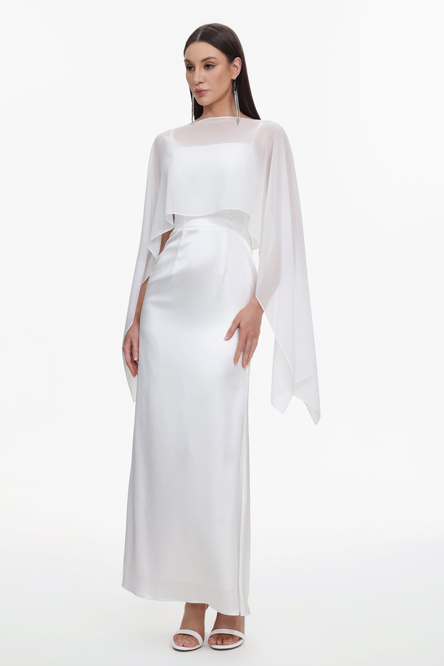 Sinai Elegant Flowy Sleeveless Chiffon Cape Maxi Dress
