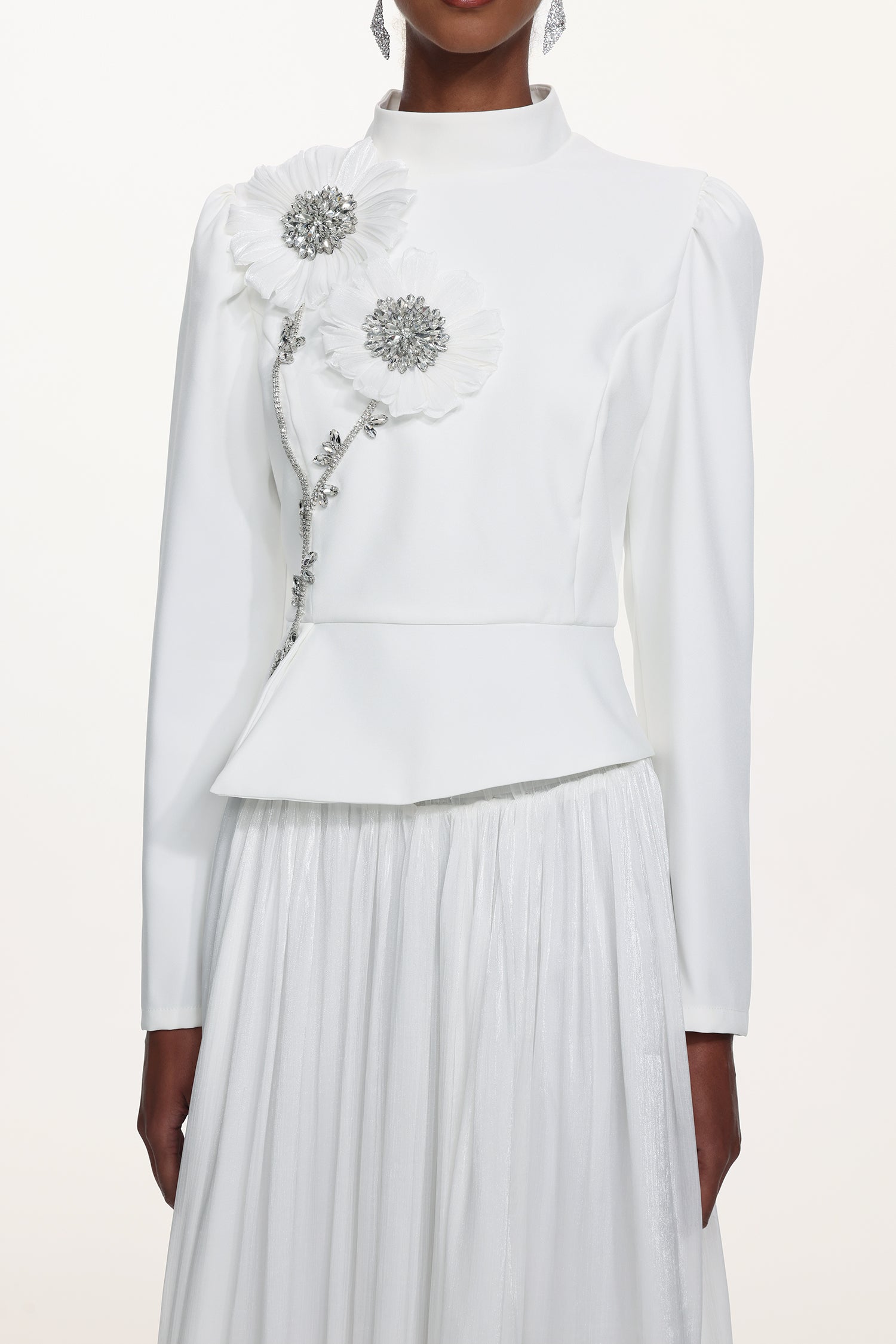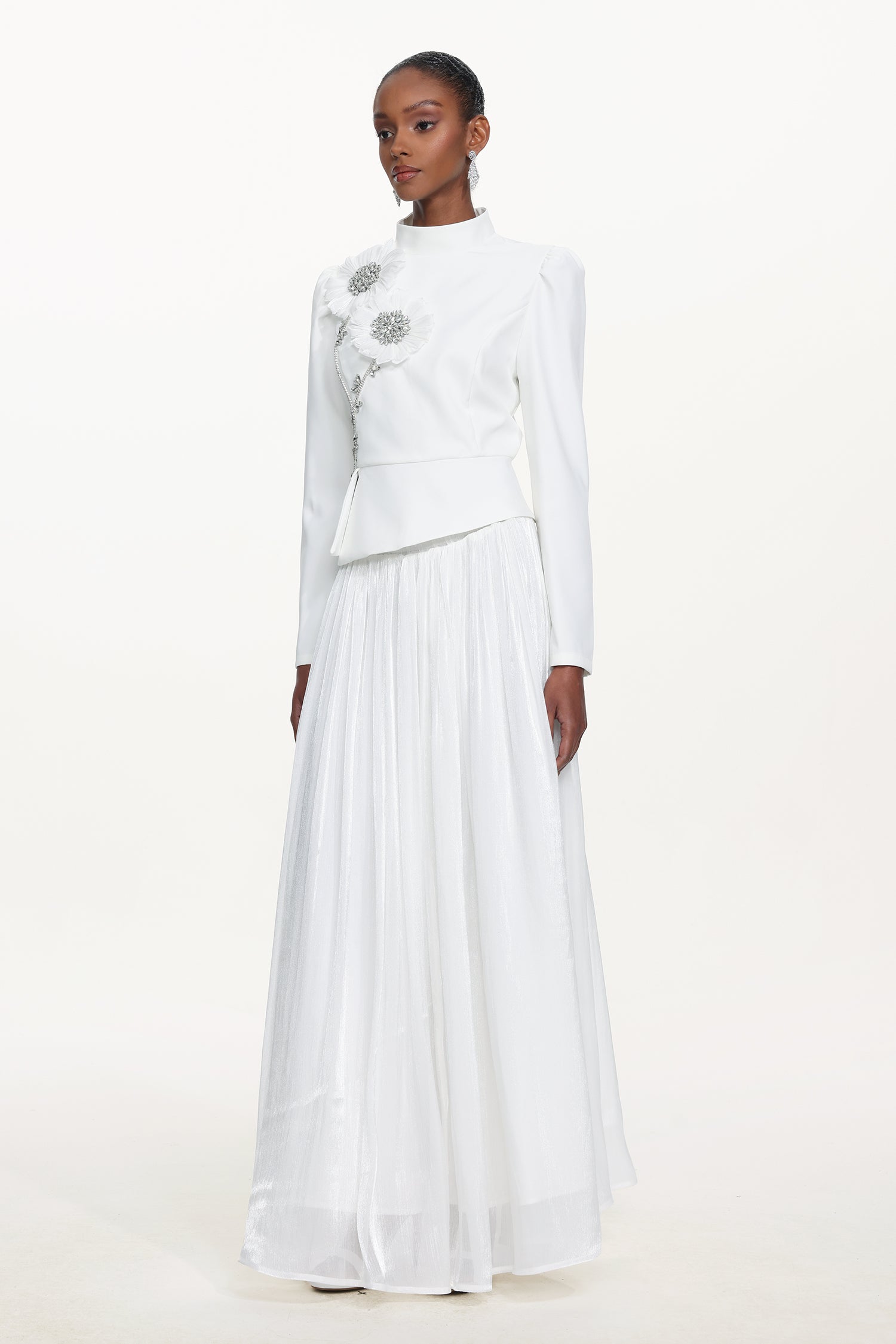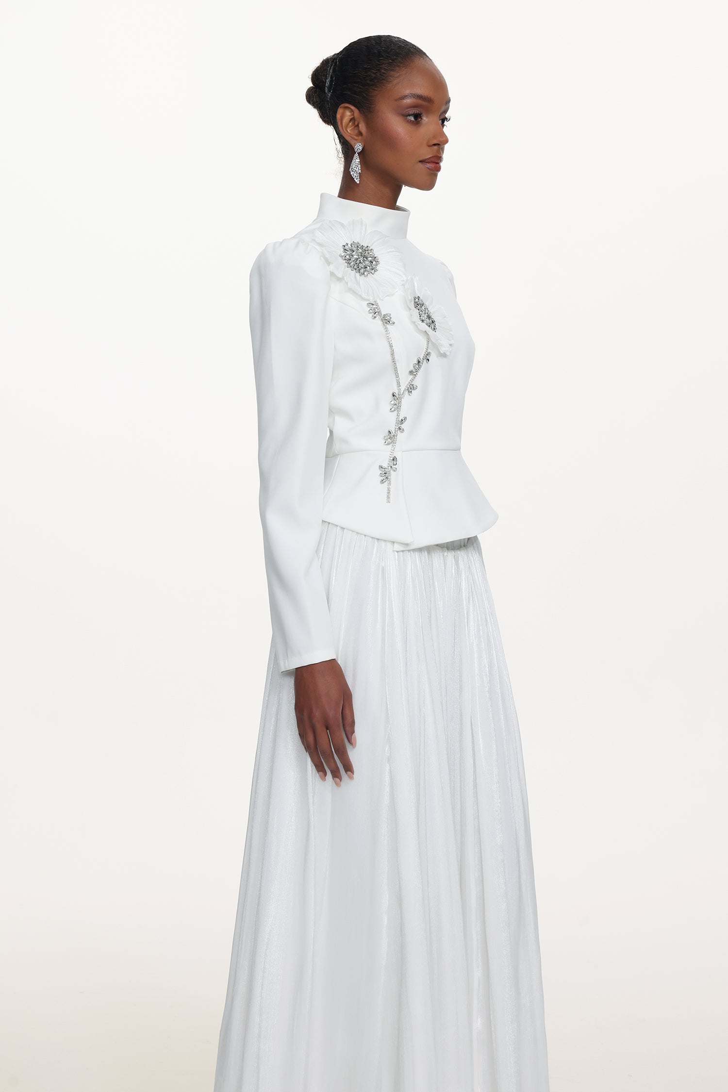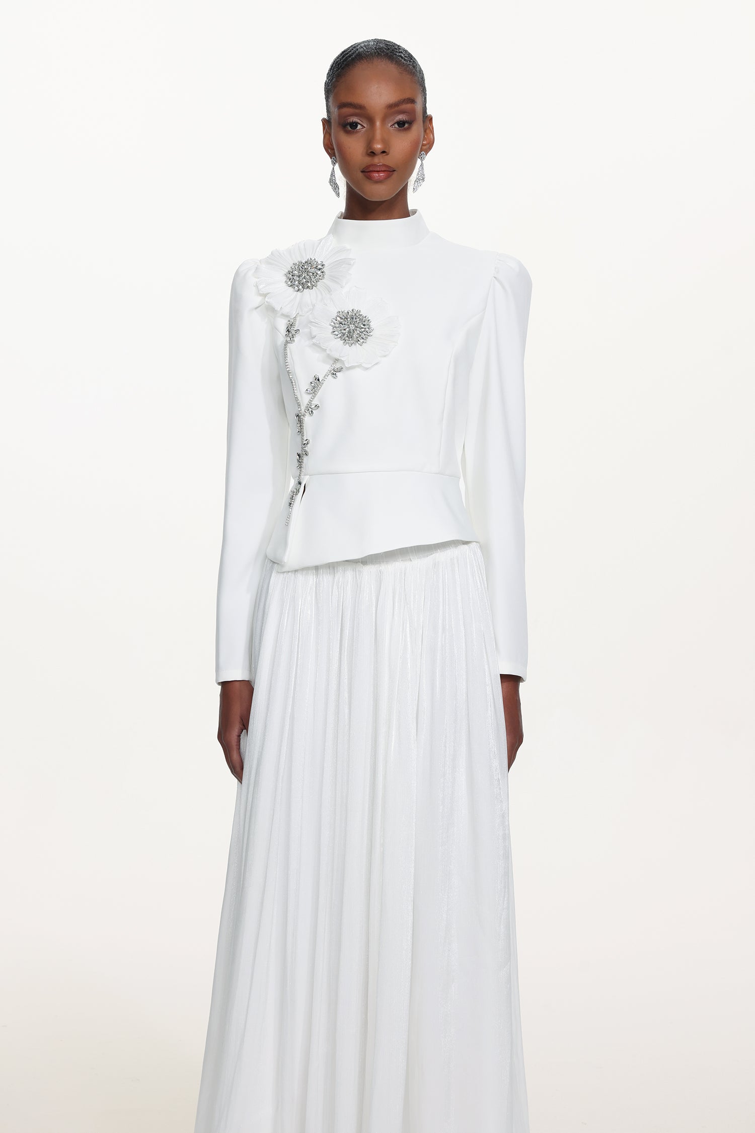 Sophiess Elegant Tailored Long Sleeve Floral Embroidered Top and Skirt Set