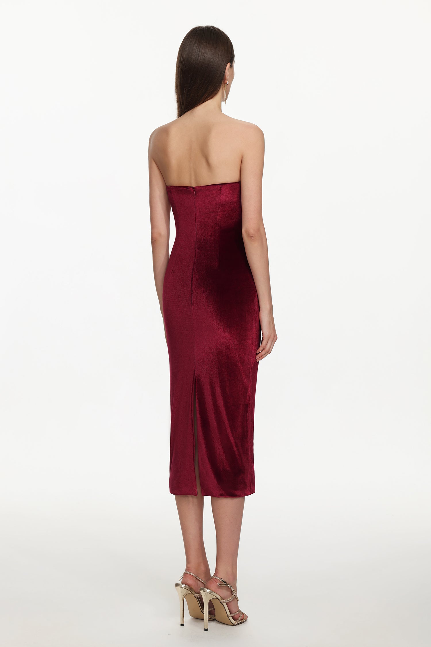 This item is made of velvet fabric, which features a distinct pile direction and a soft touch. Slight creases or compression marks may appear during transportation or wear—this is normal for velvet fabric. To restore its appearance, hang it flat in a well-ventilated area or gently steam-iron the reverse side at a low temperature from a slight distance. Velvet fabric is prone to abrasion; therefore, avoid contact with rough surfaces during wear to preserve its luster.
